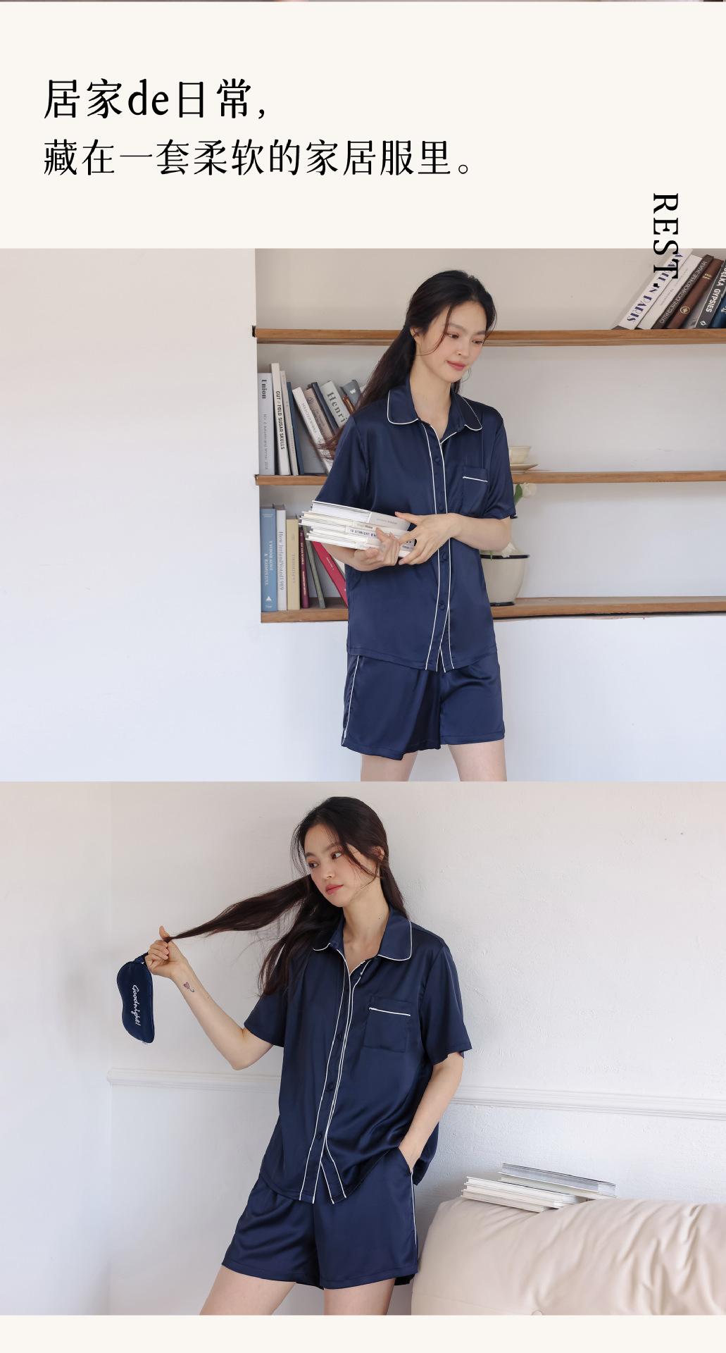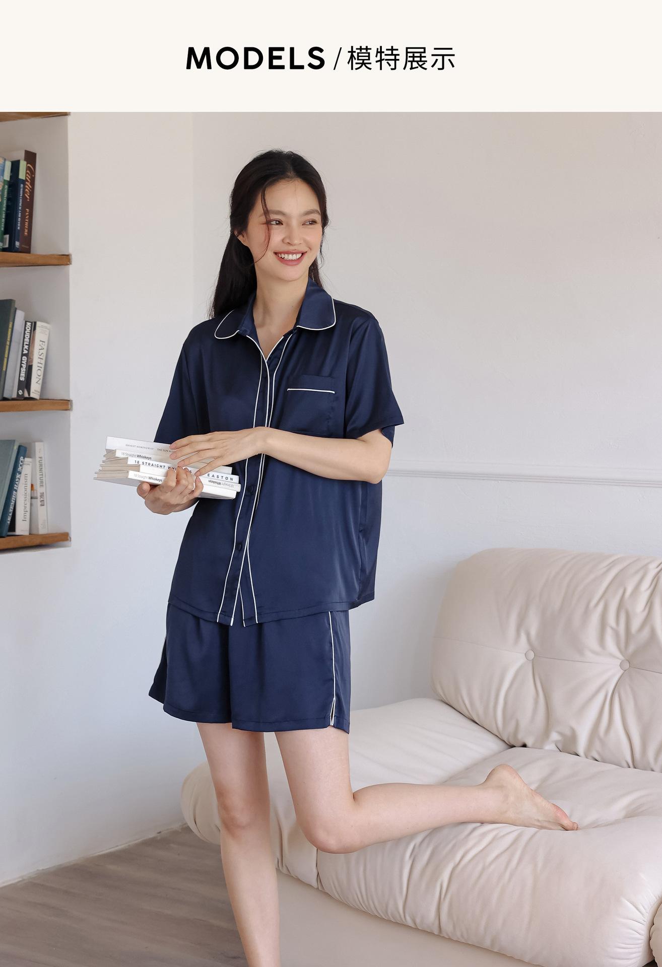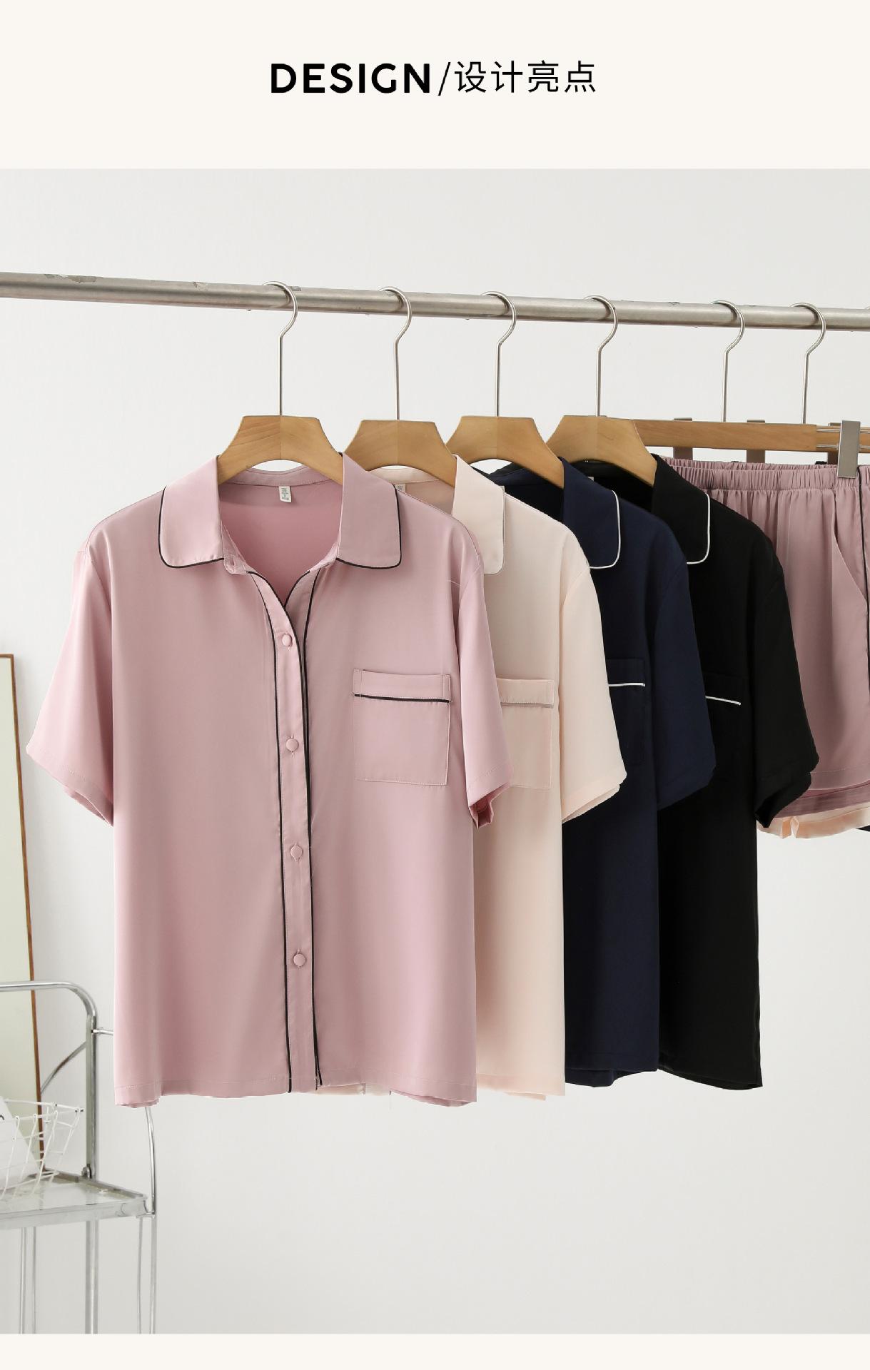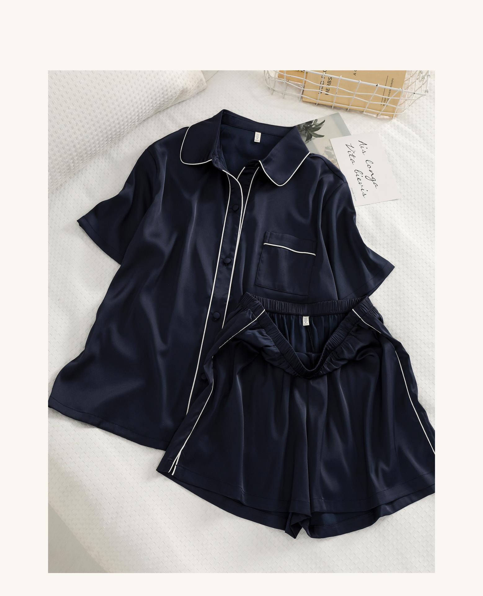 Pijama de Seda de Hielo Nuevo de Verano para Mujer de Manga Corta y Pantalones Cortos, Conjunto de Dos Piezas, Moda de Lujo Ligero de Alta Gama, Ropa de Casa Delgada que se Puede Usar Afuera
