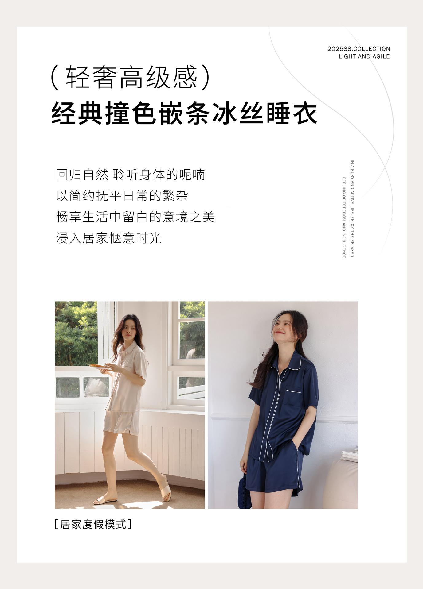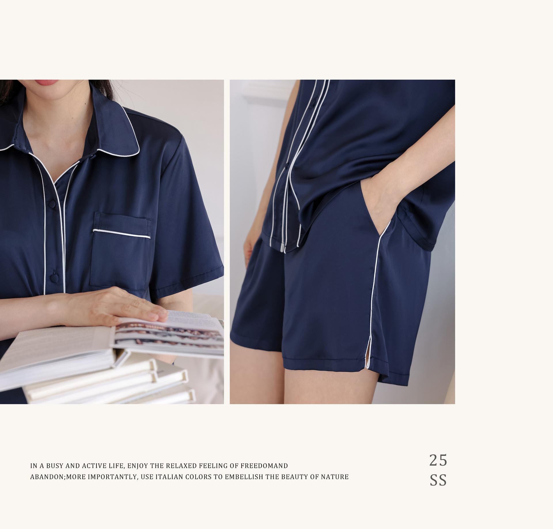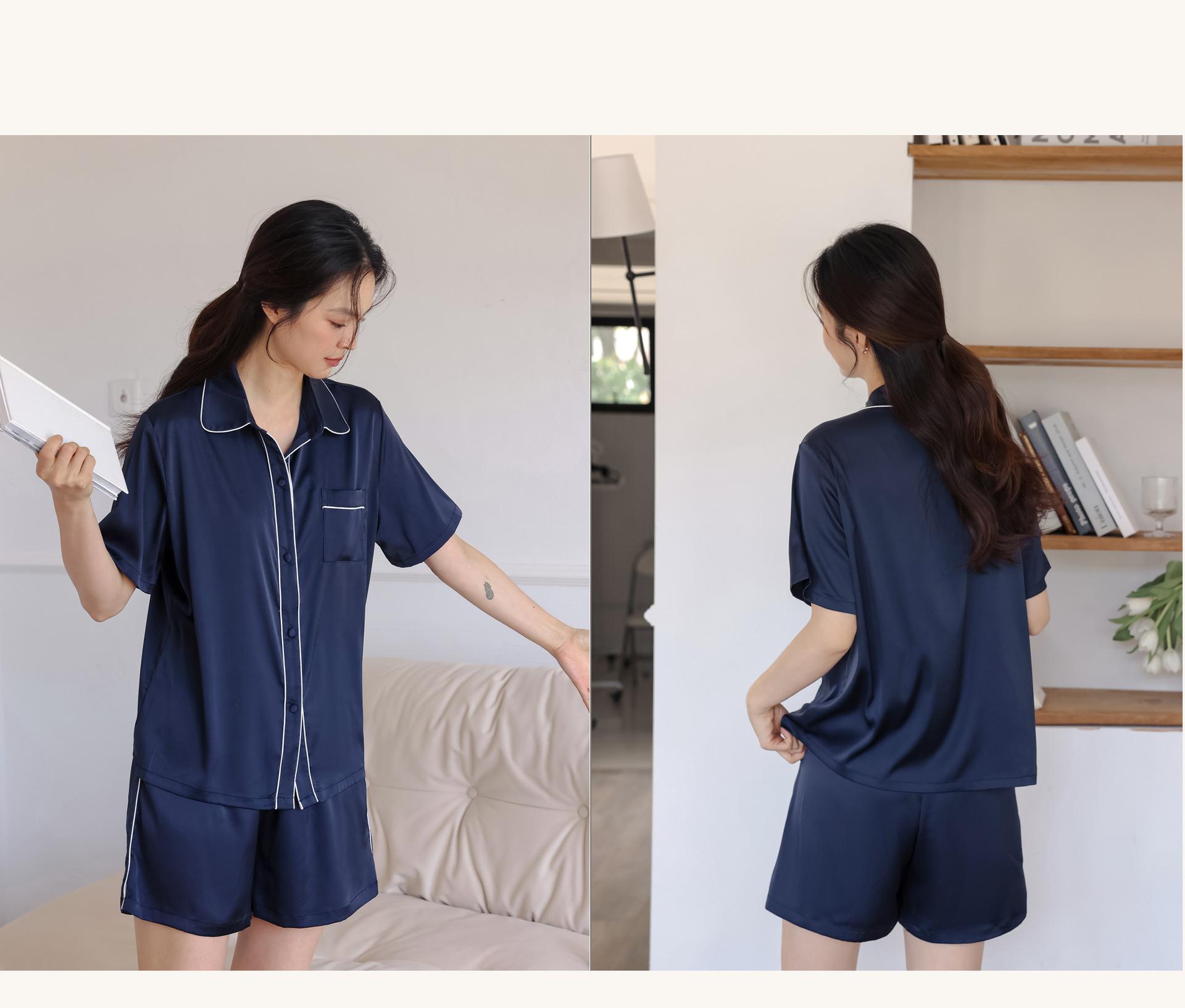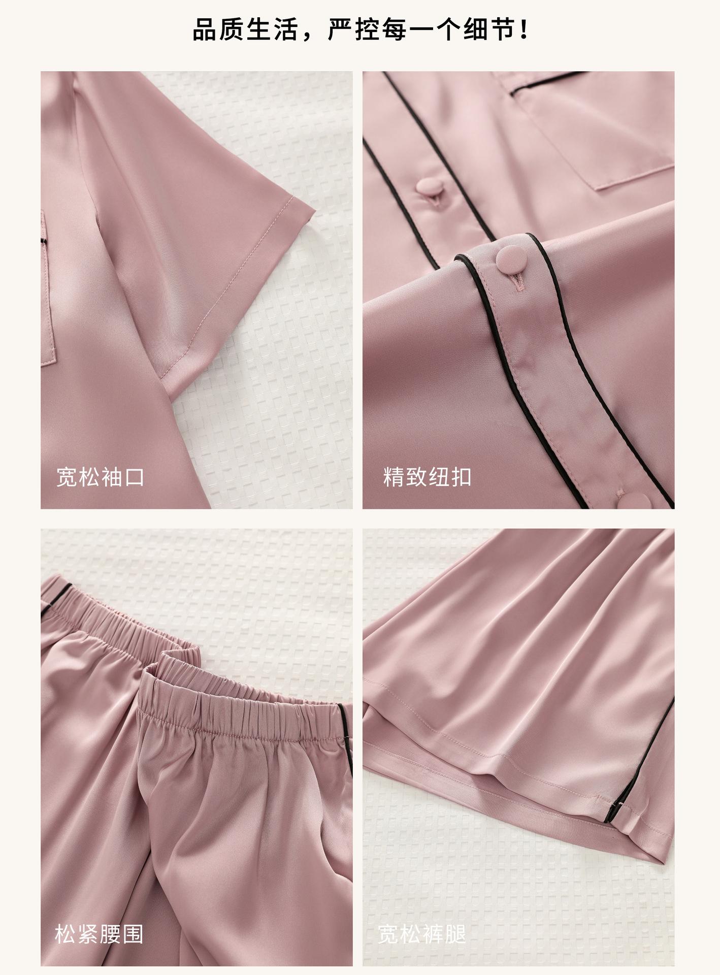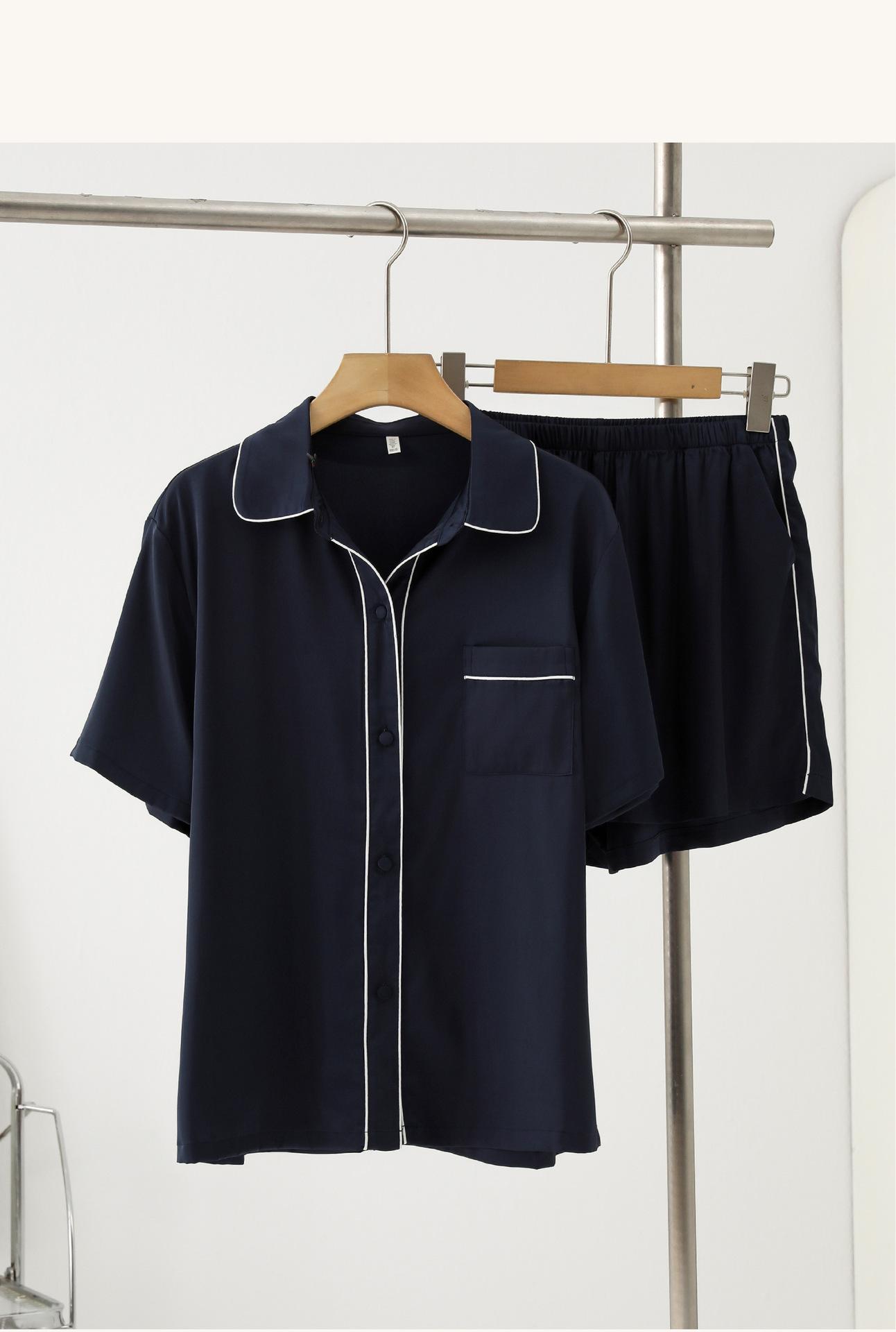 Pijama de Seda de Hielo Nuevo de Verano para Mujer de Manga Corta y Pantalones Cortos, Conjunto de Dos Piezas, Moda de Lujo Ligero de Alta Gama, Ropa de Casa Delgada que se Puede Usar Afuera