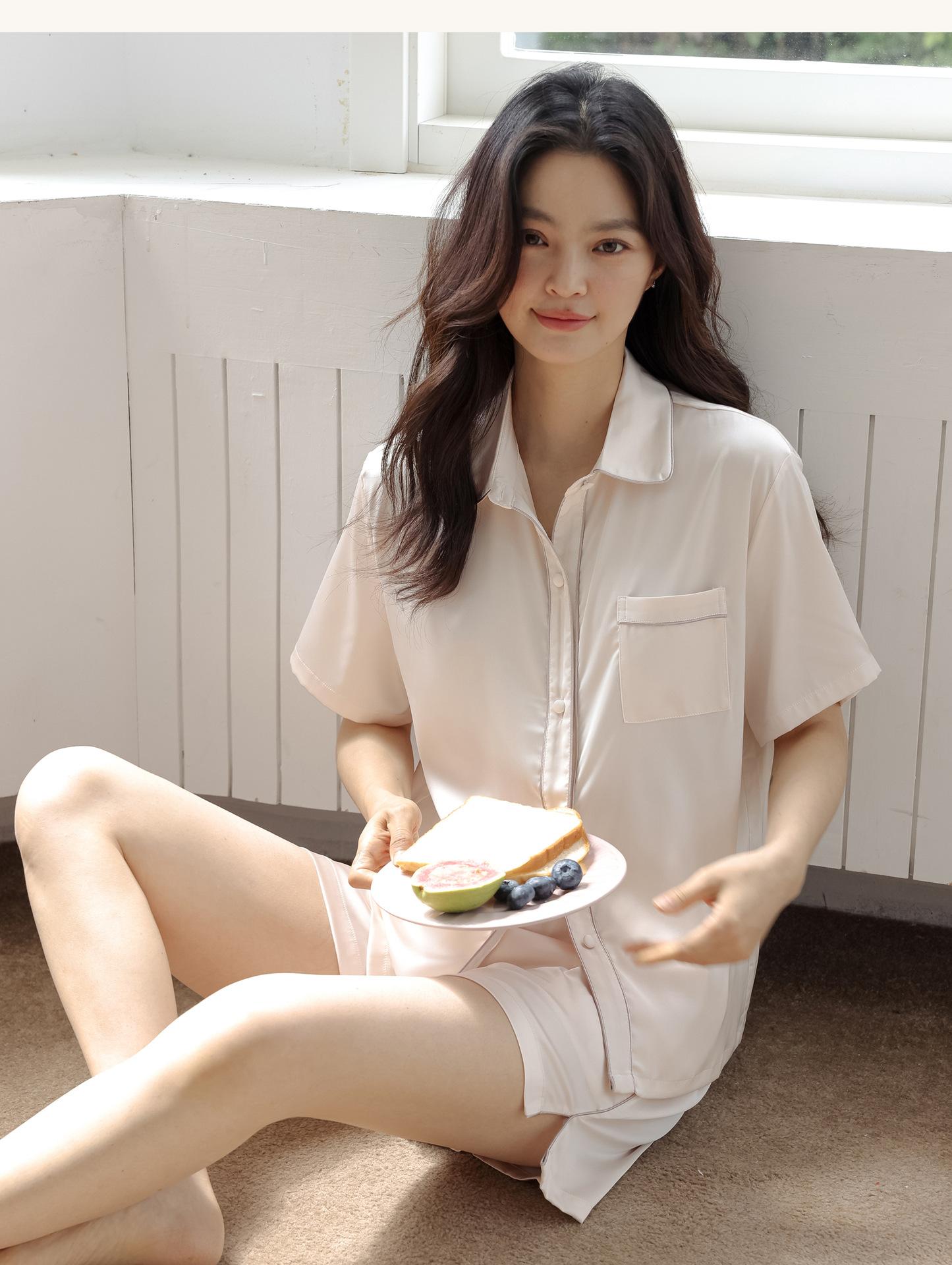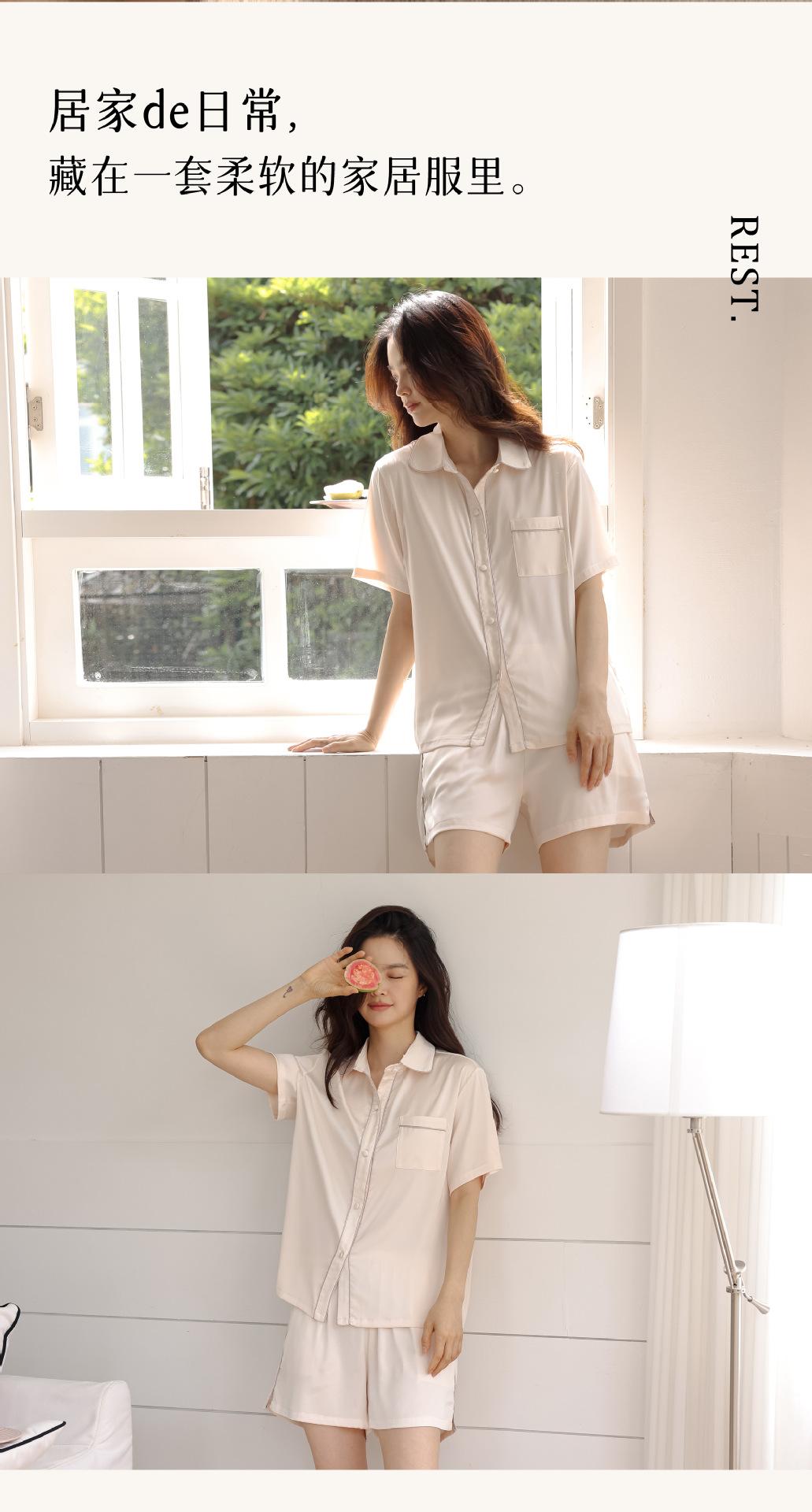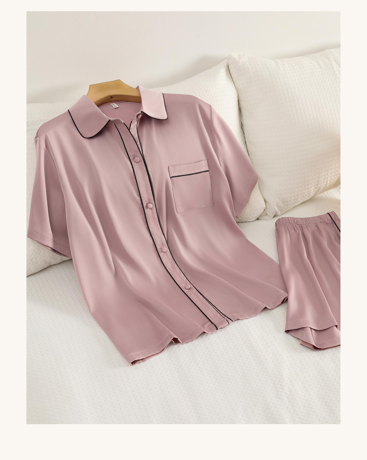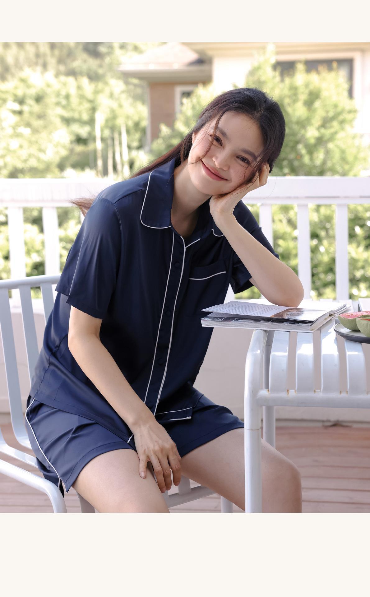 Pijama de Seda de Hielo Nuevo de Verano para Mujer de Manga Corta y Pantalones Cortos, Conjunto de Dos Piezas, Moda de Lujo Ligero de Alta Gama, Ropa de Casa Delgada que se Puede Usar Afuera