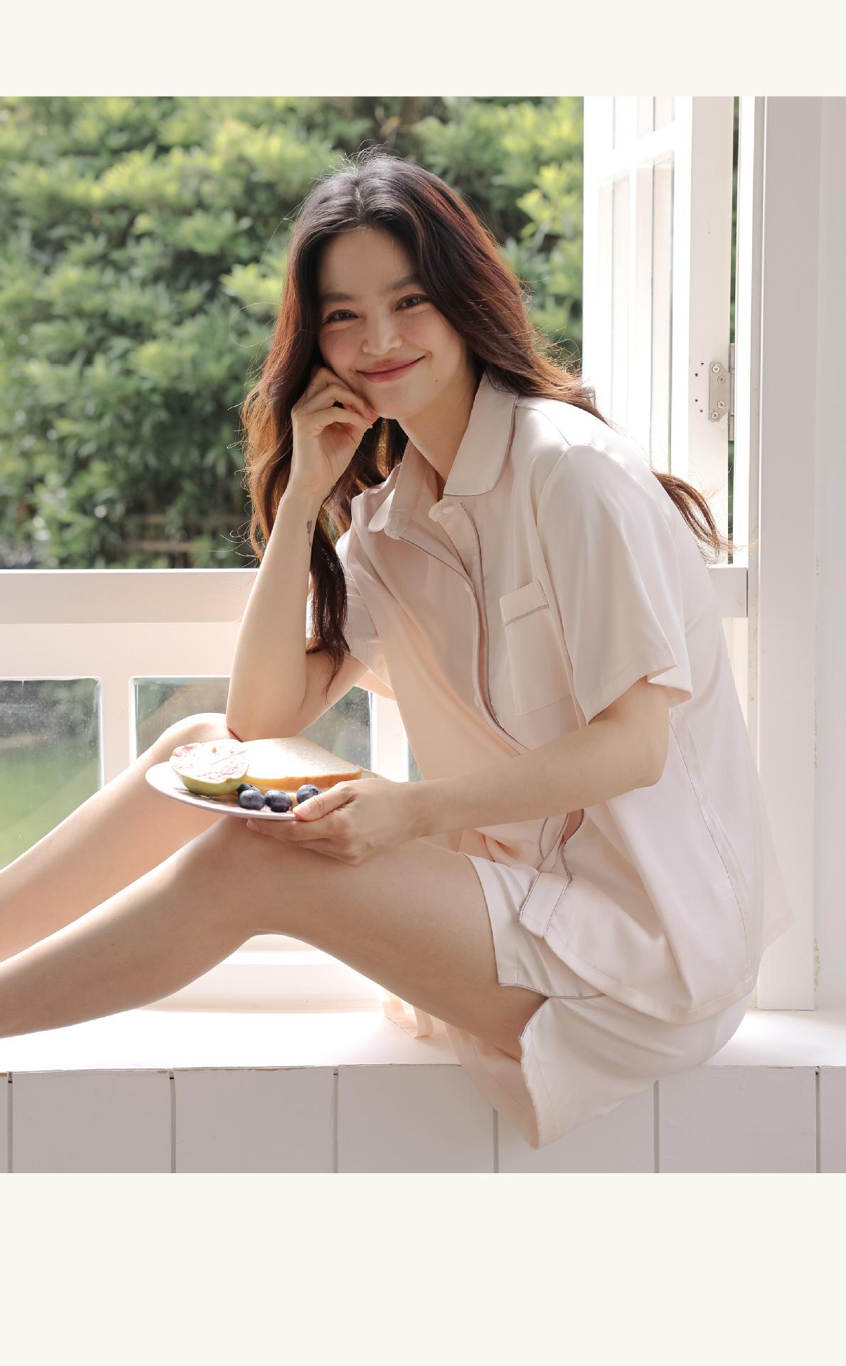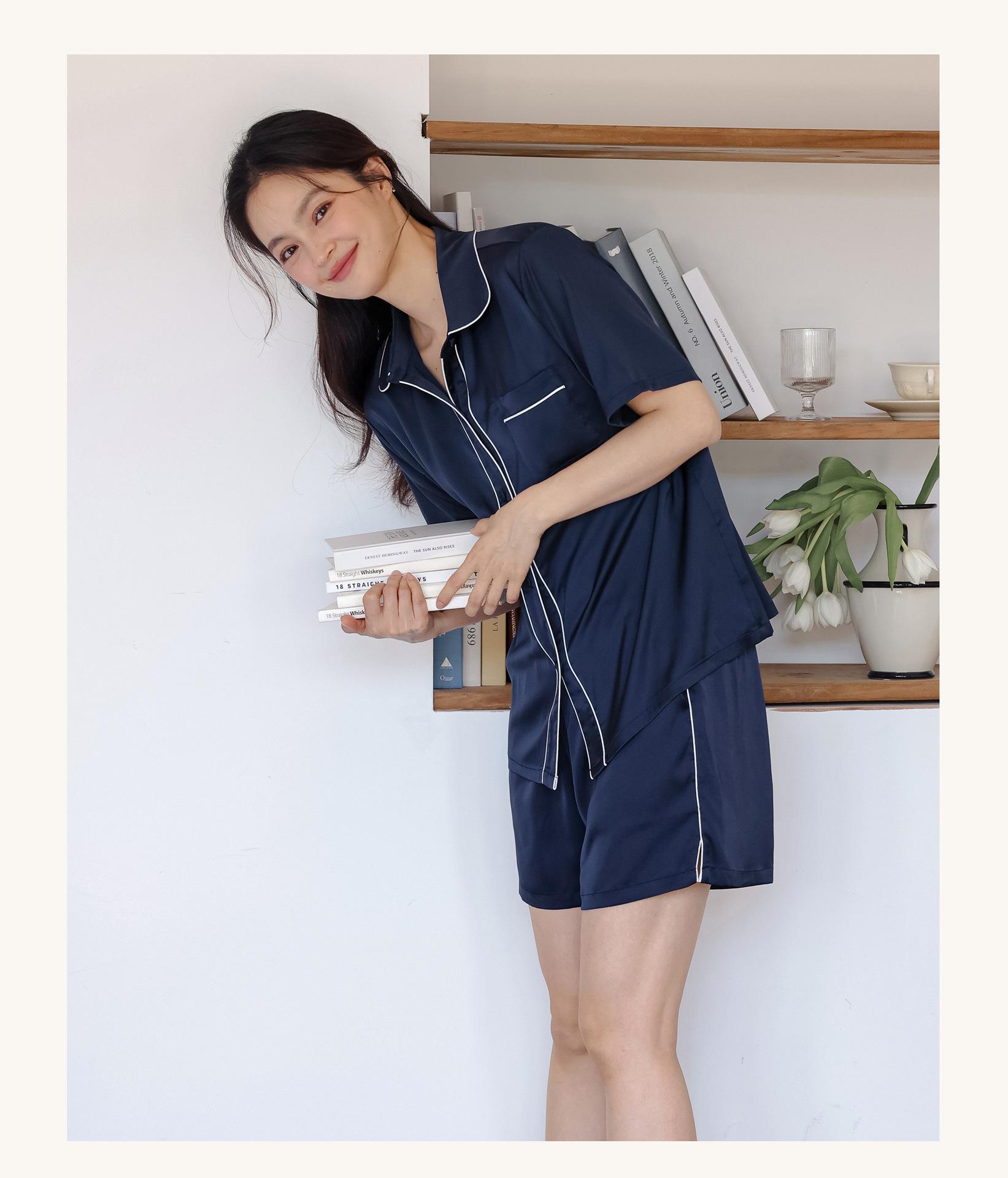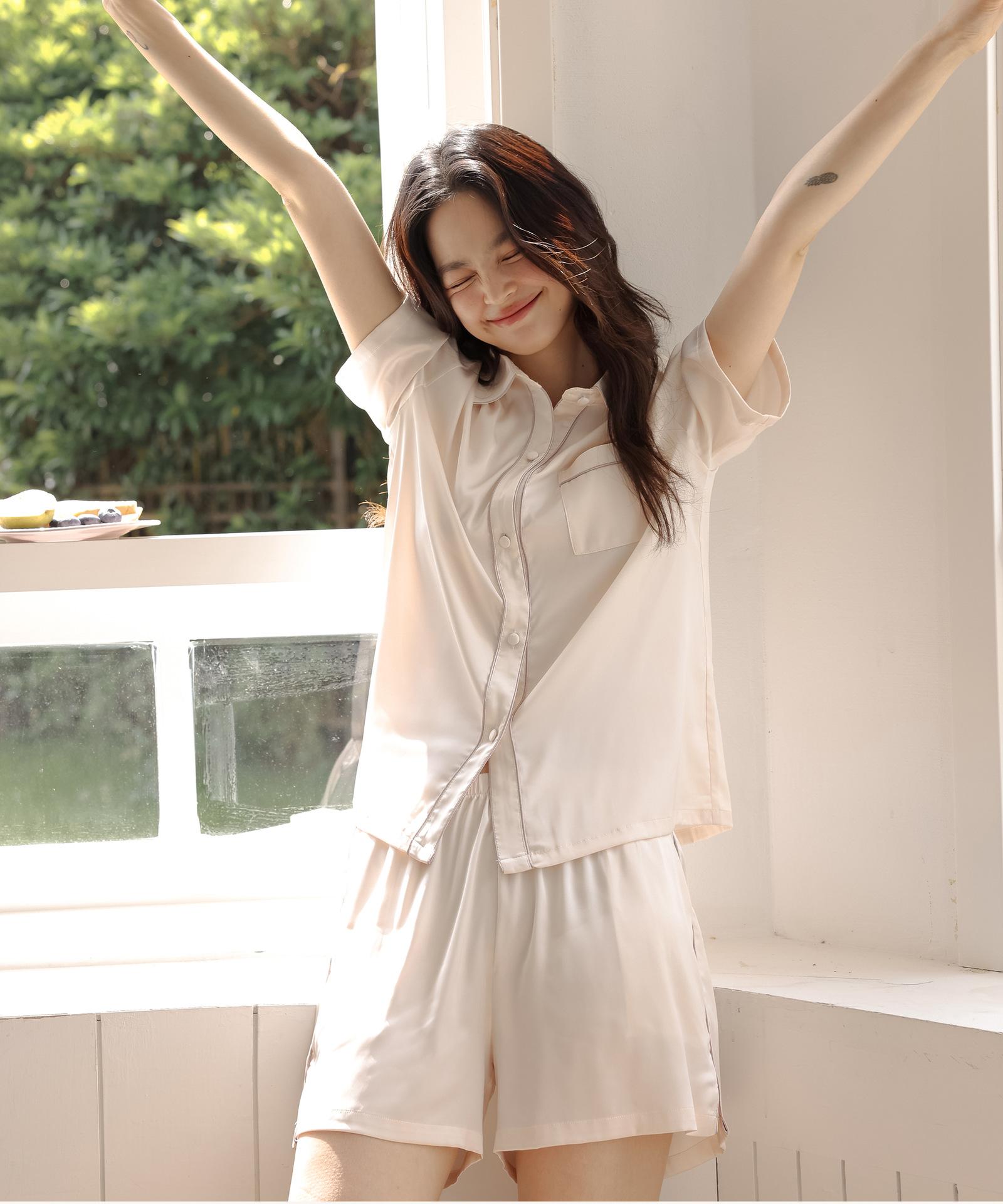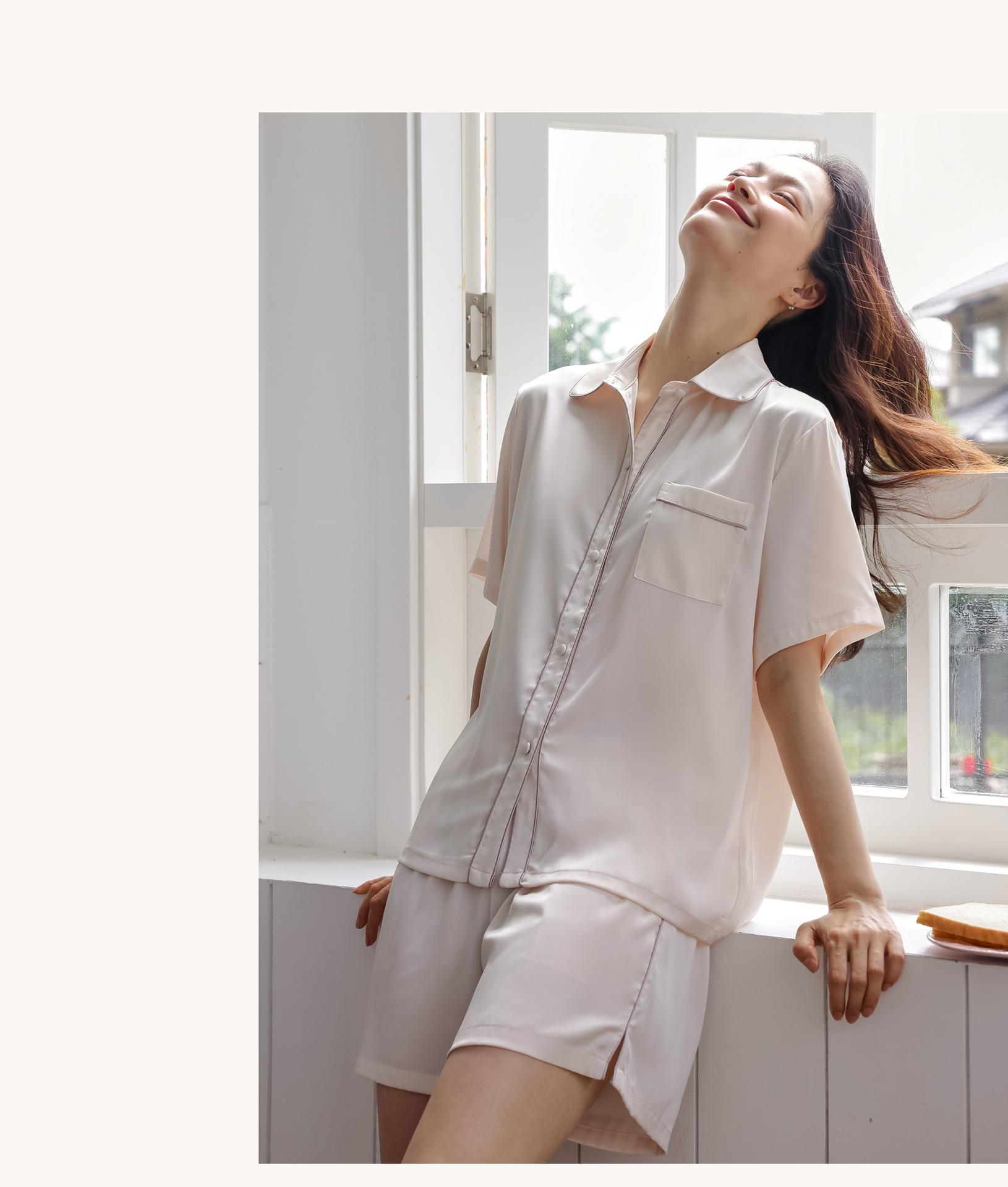 Pijama de Seda de Hielo Nuevo de Verano para Mujer de Manga Corta y Pantalones Cortos, Conjunto de Dos Piezas, Moda de Lujo Ligero de Alta Gama, Ropa de Casa Delgada que se Puede Usar Afuera