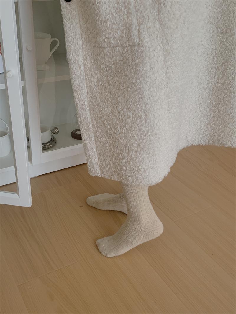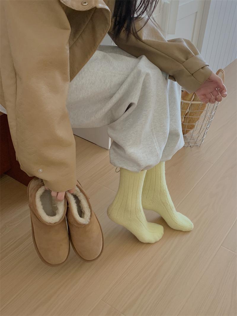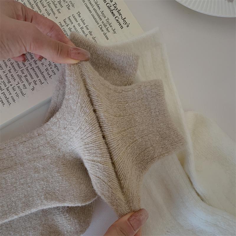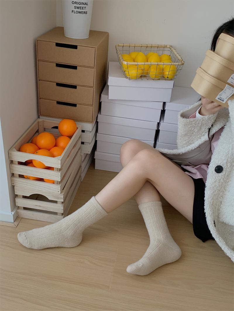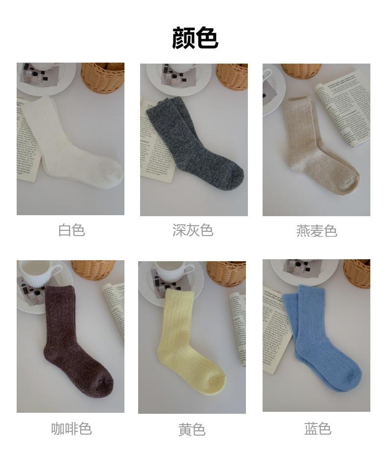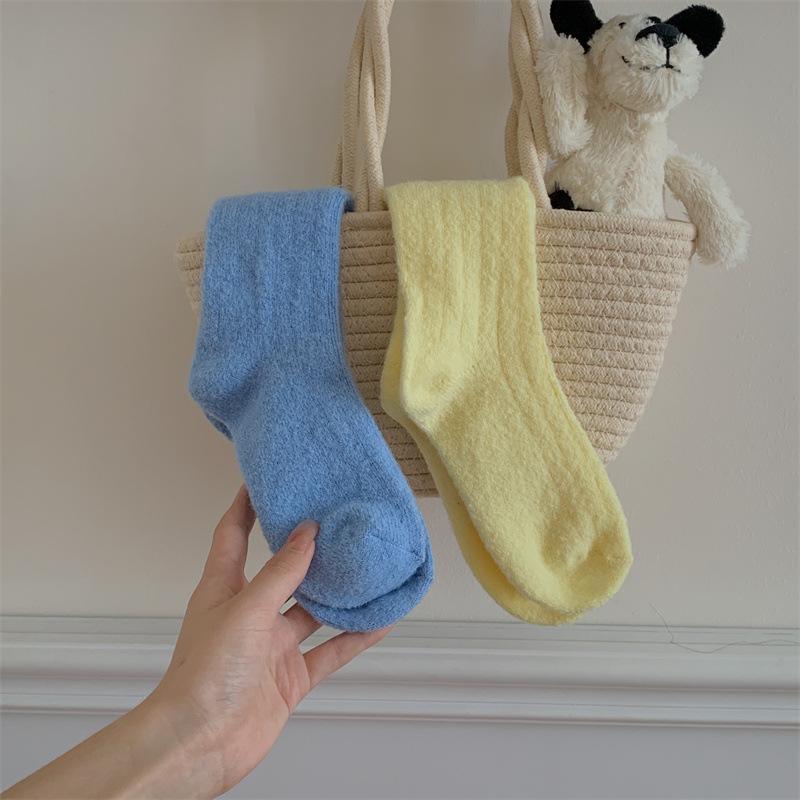 Otoño e Invierno tejido cálido grueso color sólido canalé media pantorrilla mohair calcetines de lana para mujer marrón estilo japonés calcetines de felpa