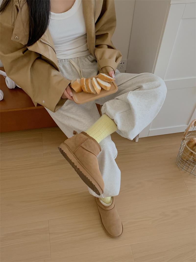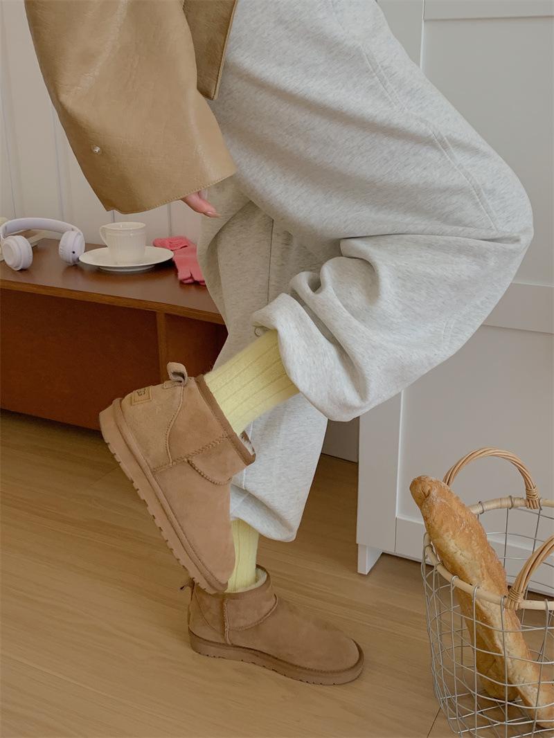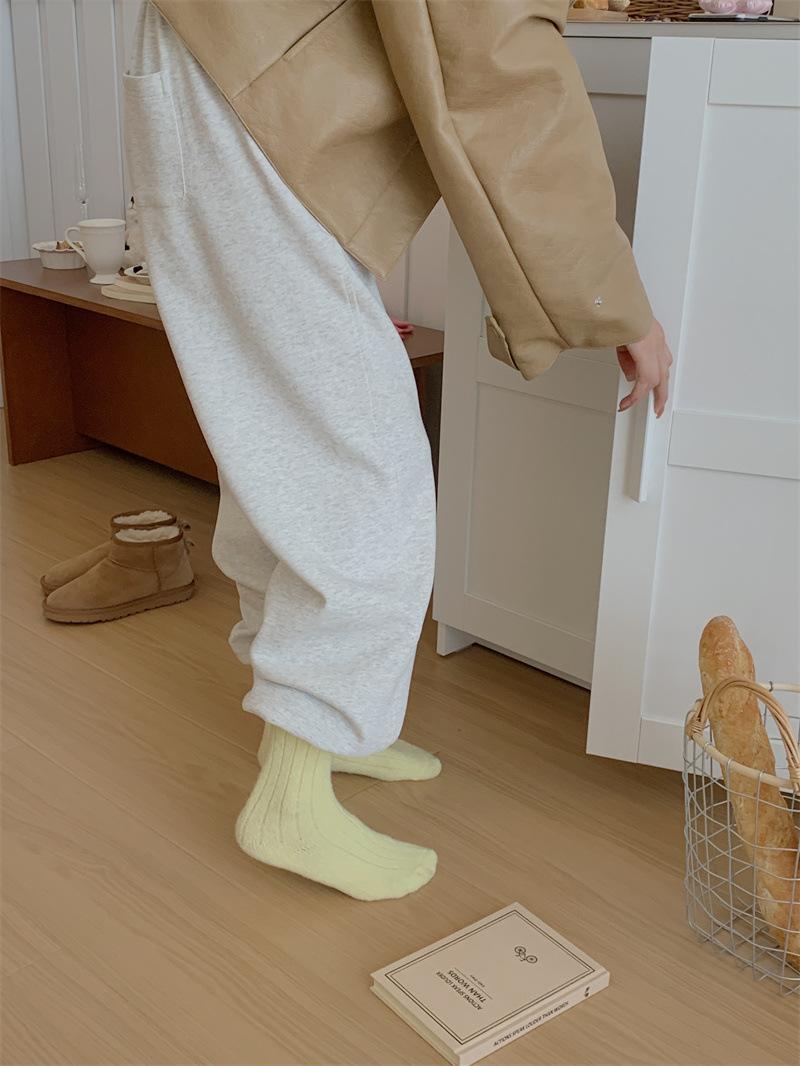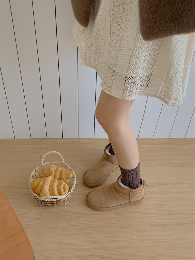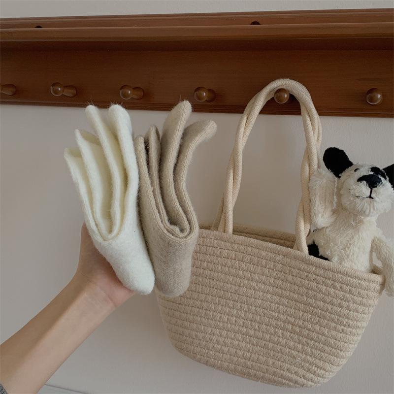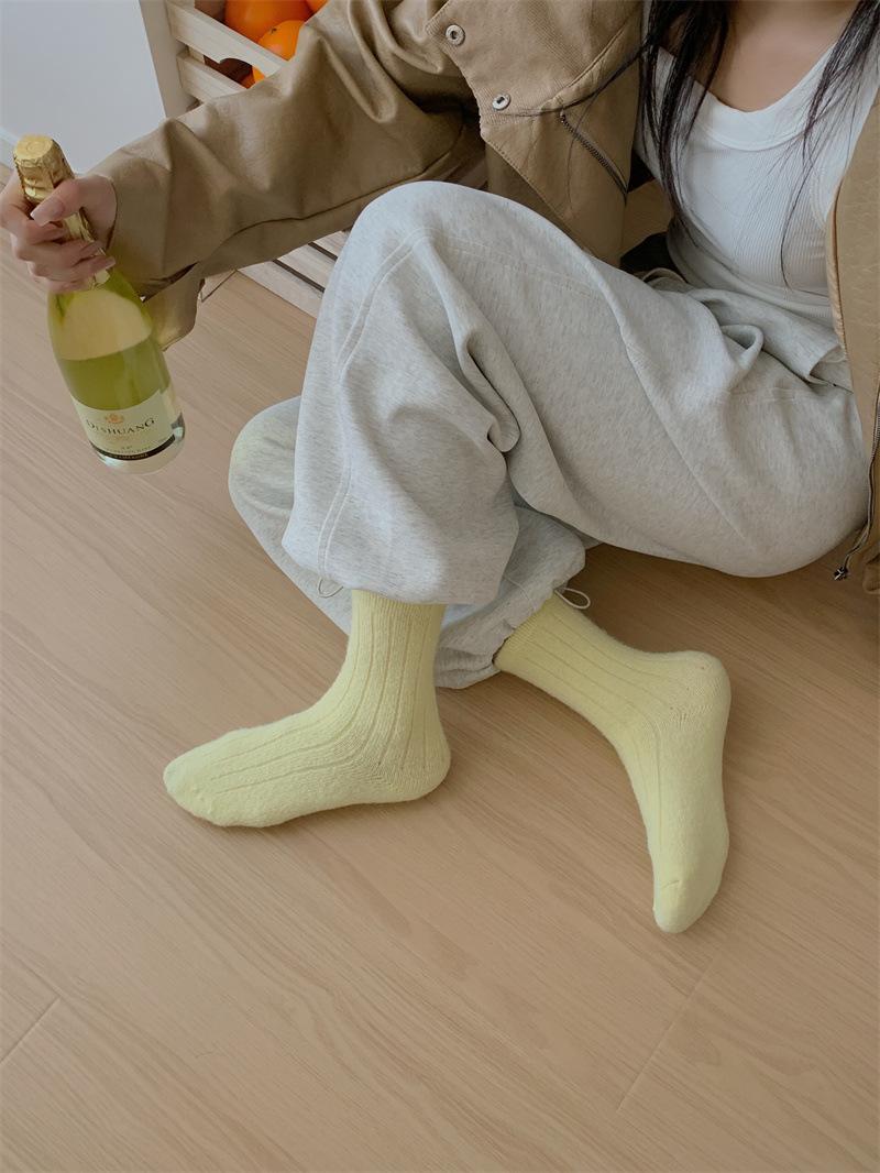 Otoño e Invierno tejido cálido grueso color sólido canalé media pantorrilla mohair calcetines de lana para mujer marrón estilo japonés calcetines de felpa
