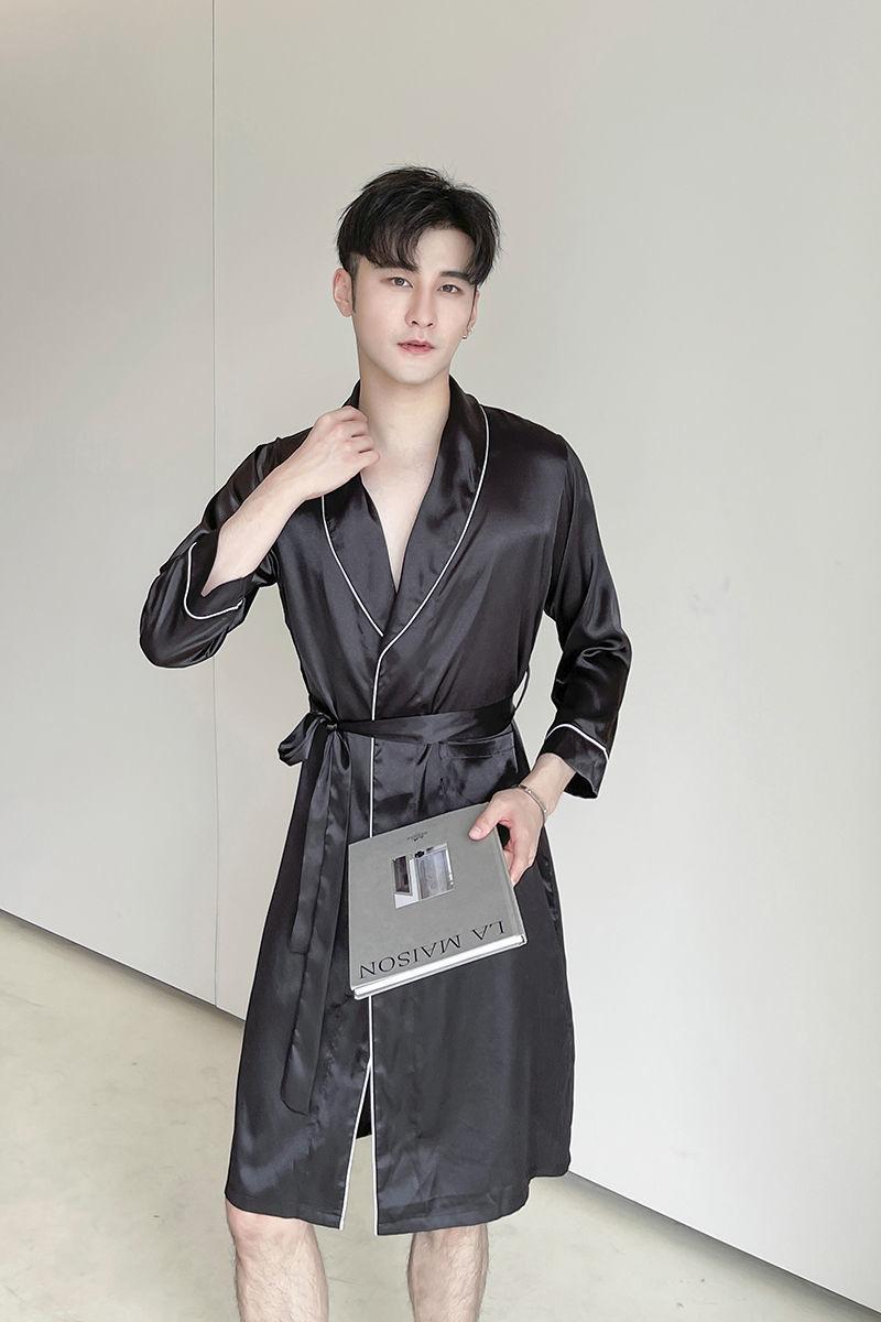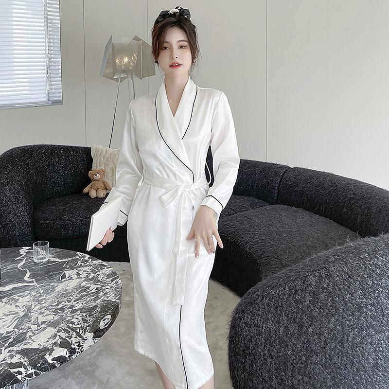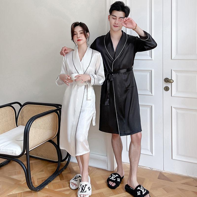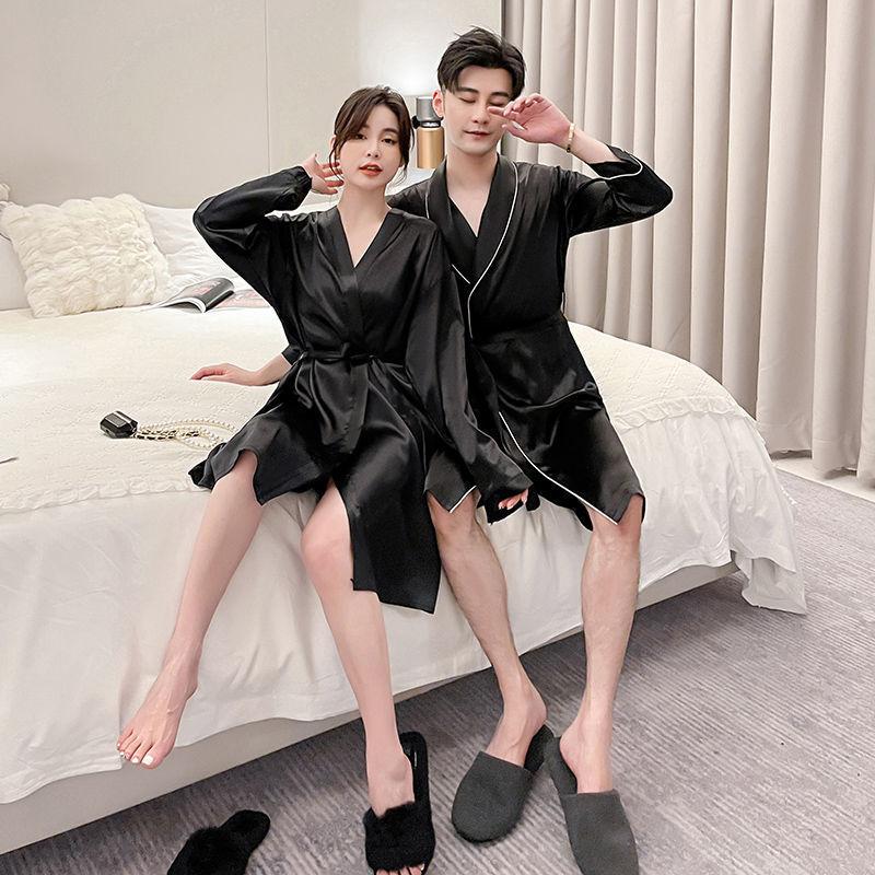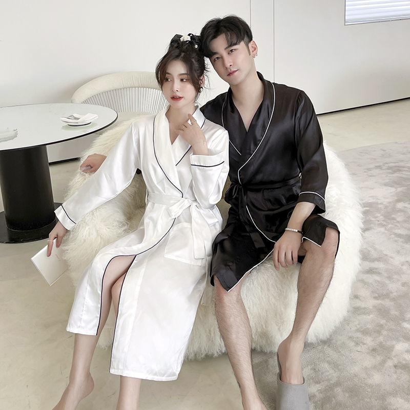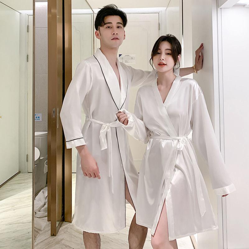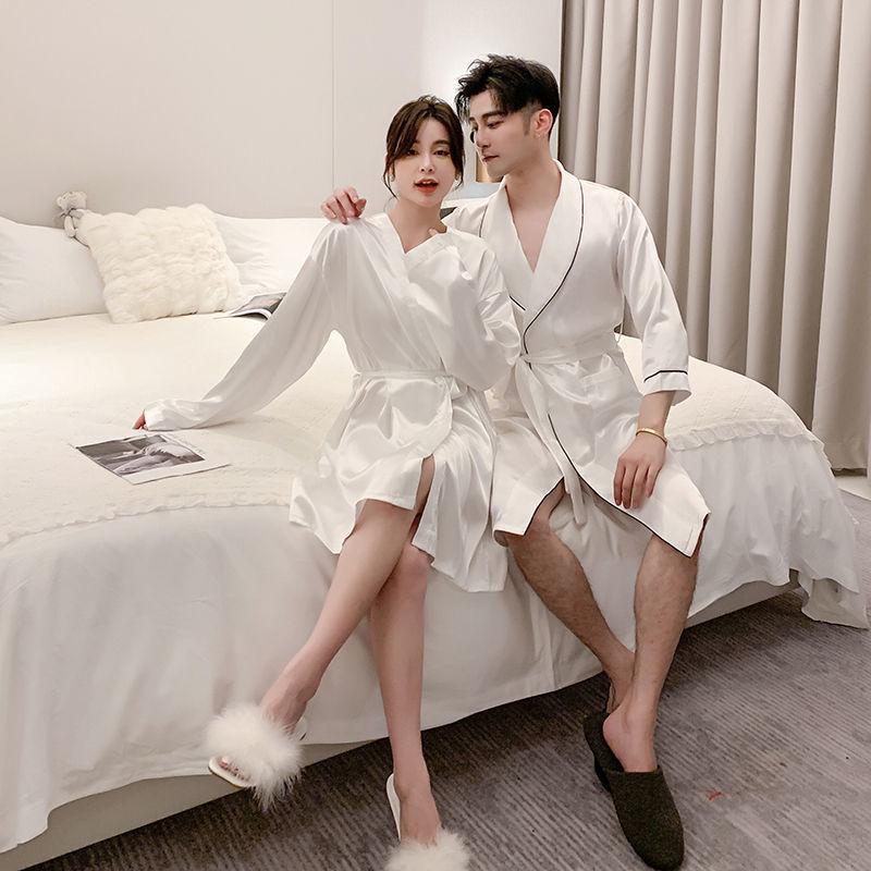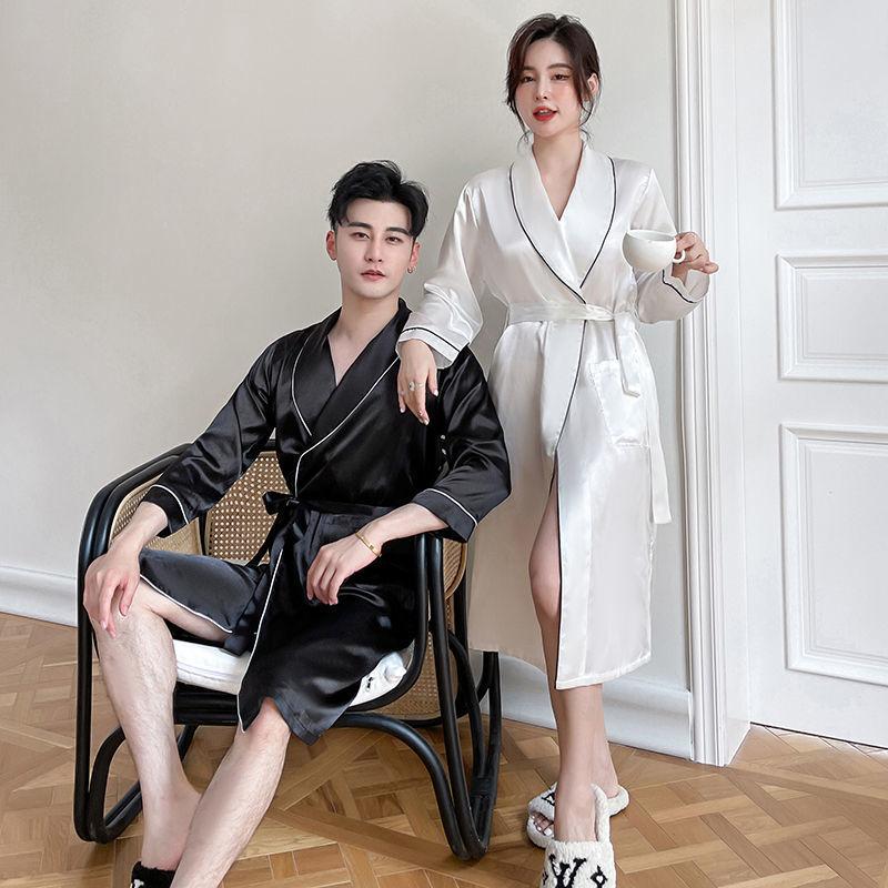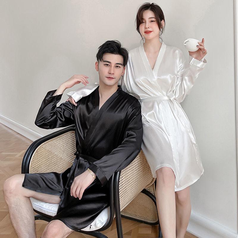 Camisón de Pareja para Mujer Otoño e Invierno Seda Helada Manga Larga Sexy Bata de Hotel Bata para Hombre y Mujer Talla Grande Primavera y Otoño Ropa para el Hogar