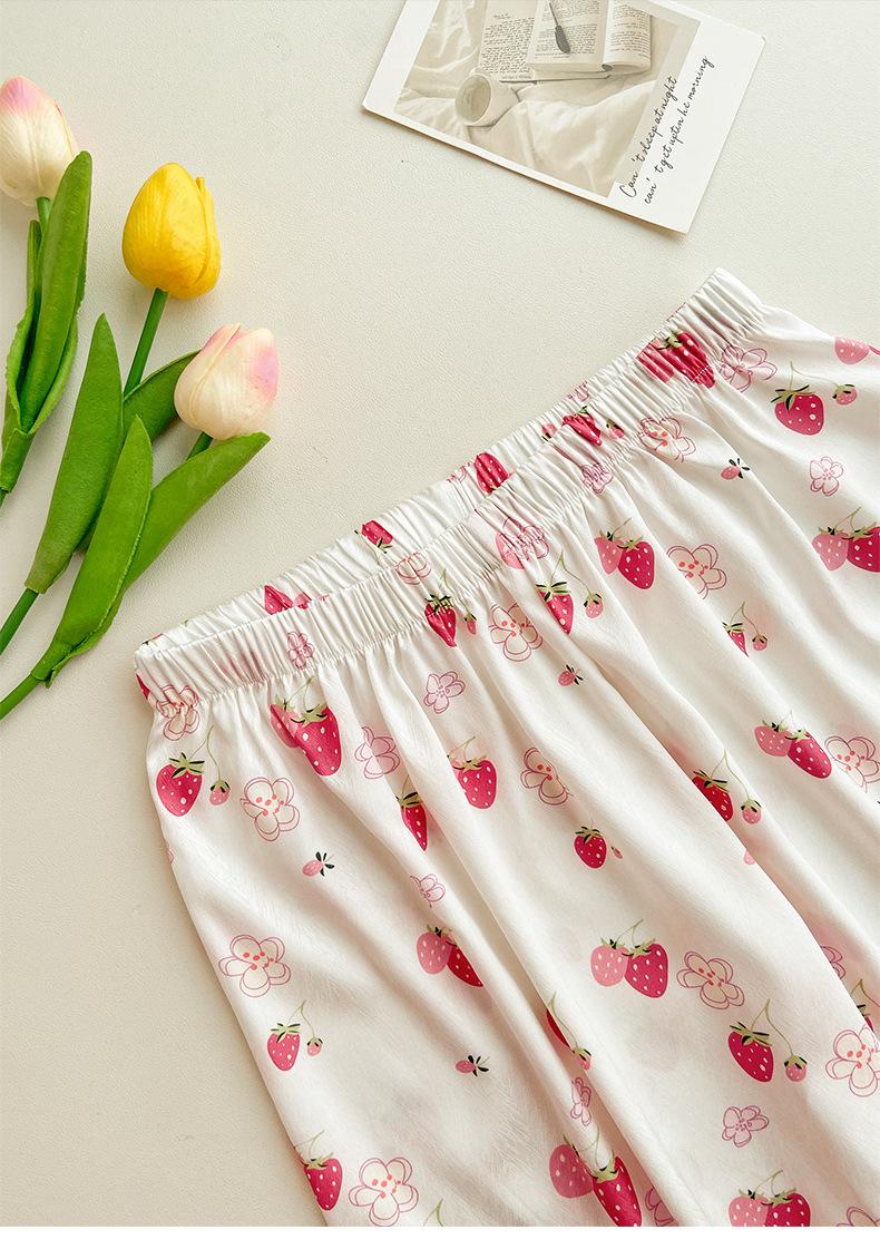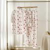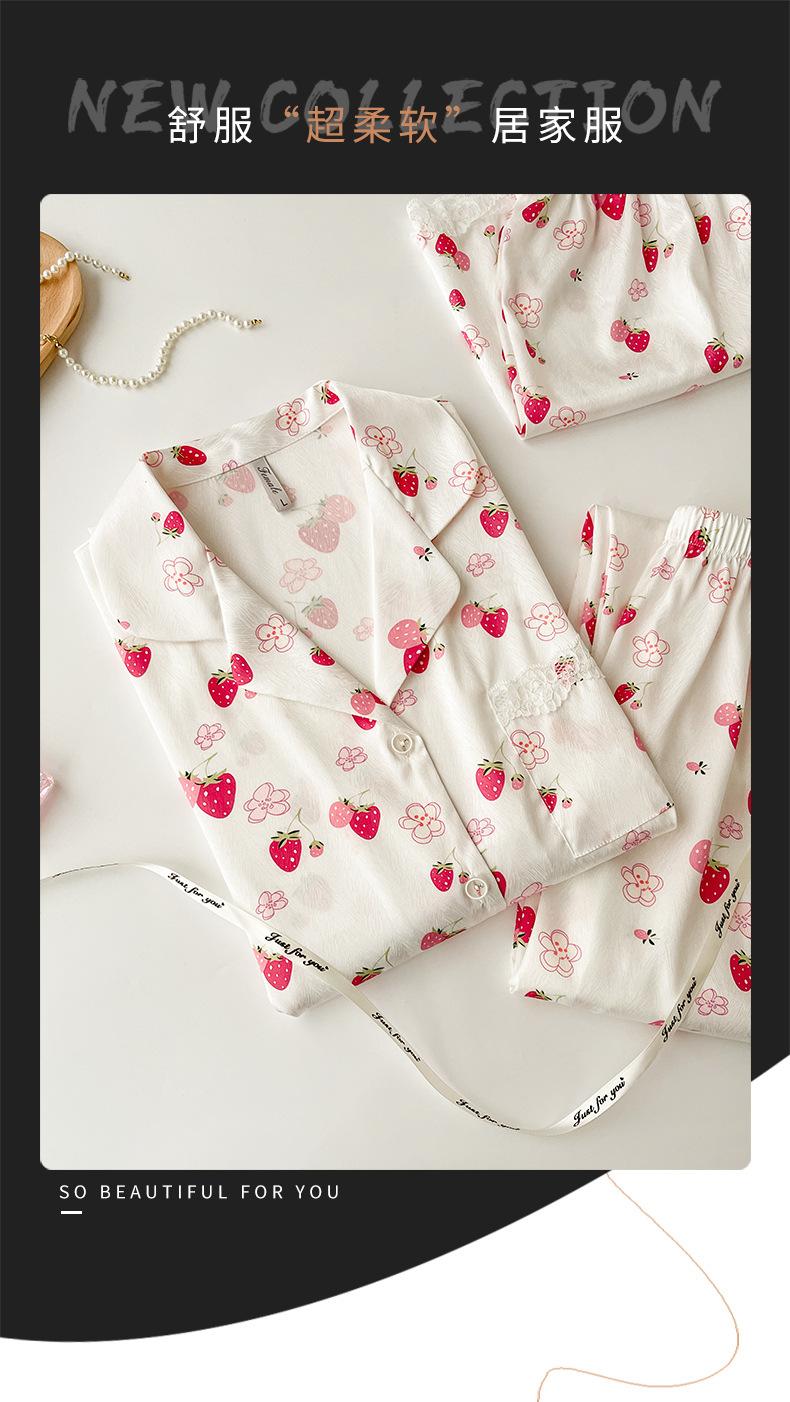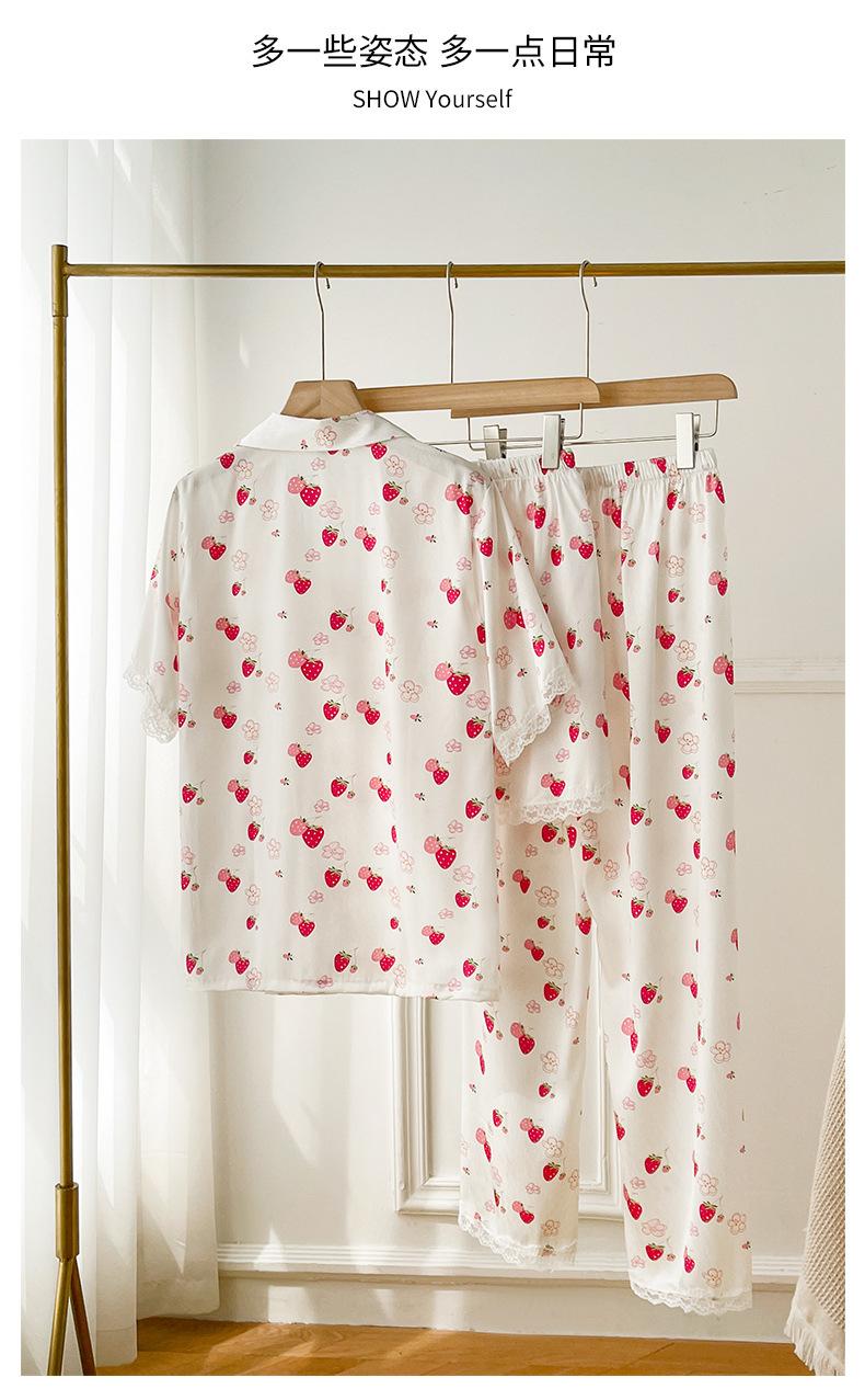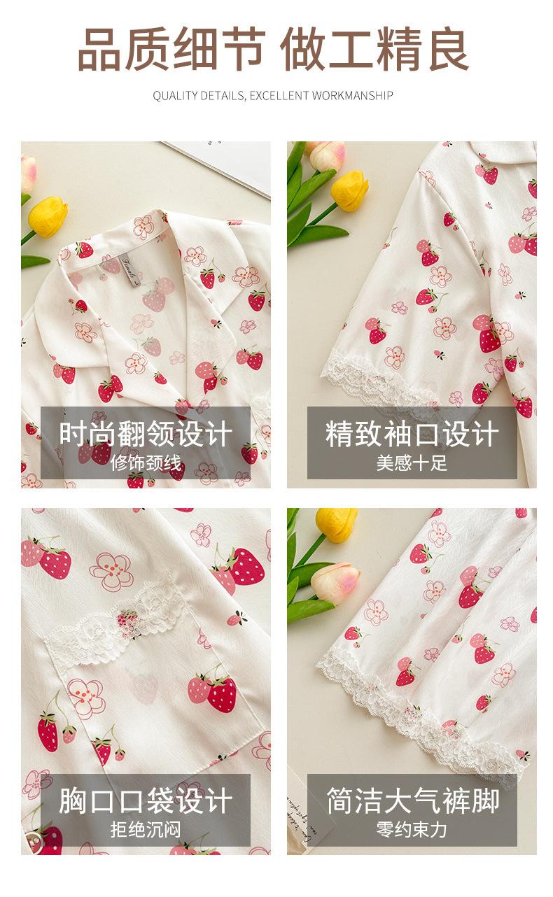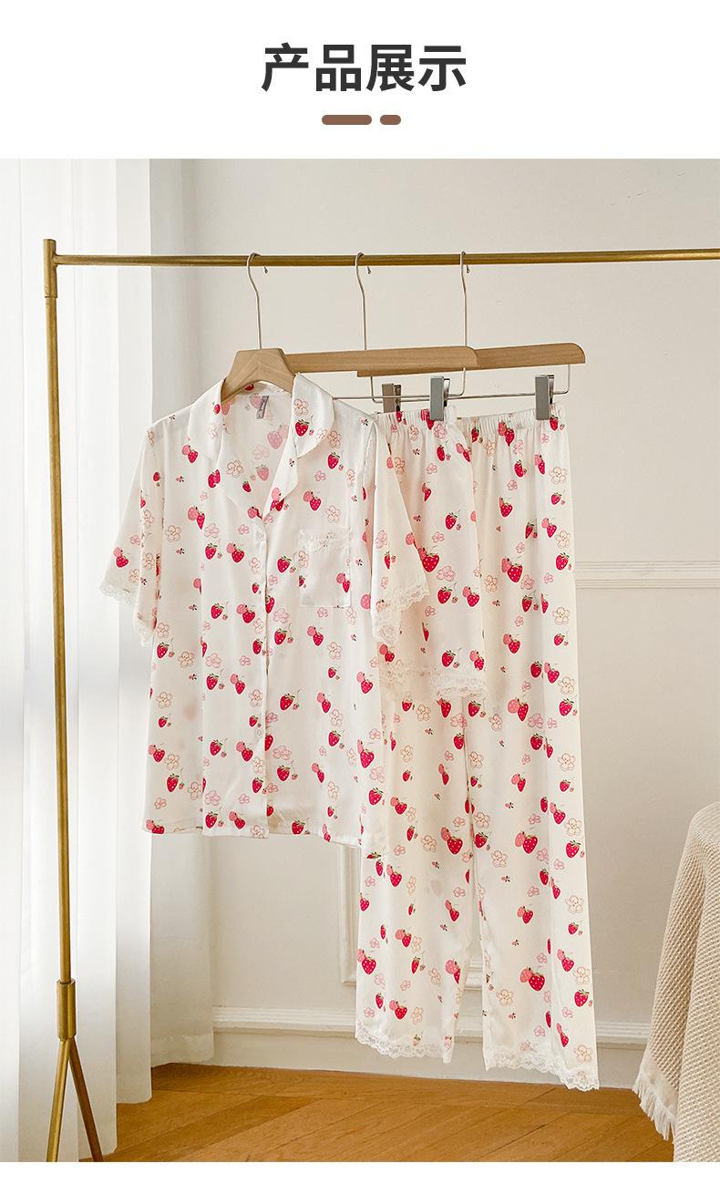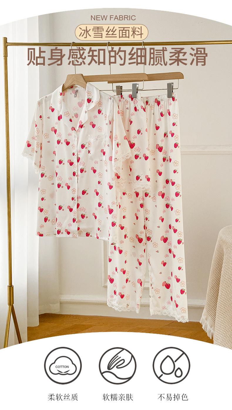 Pijama Nuevo 2024 Verano Señoras Seda Hielo y Nieve Delgada Pequeño Fresco y Lindo Estampado Conjunto de Tres Piezas Ropa para el Hogar