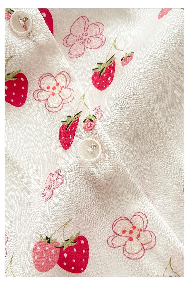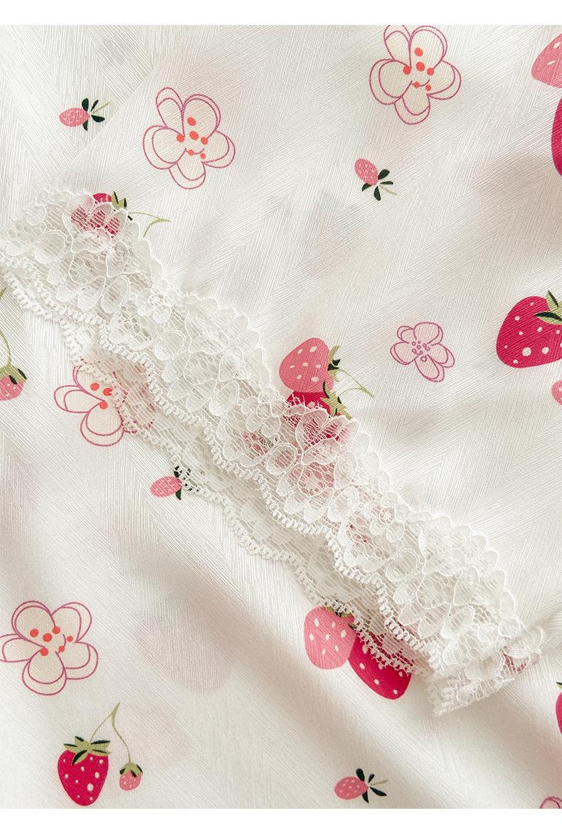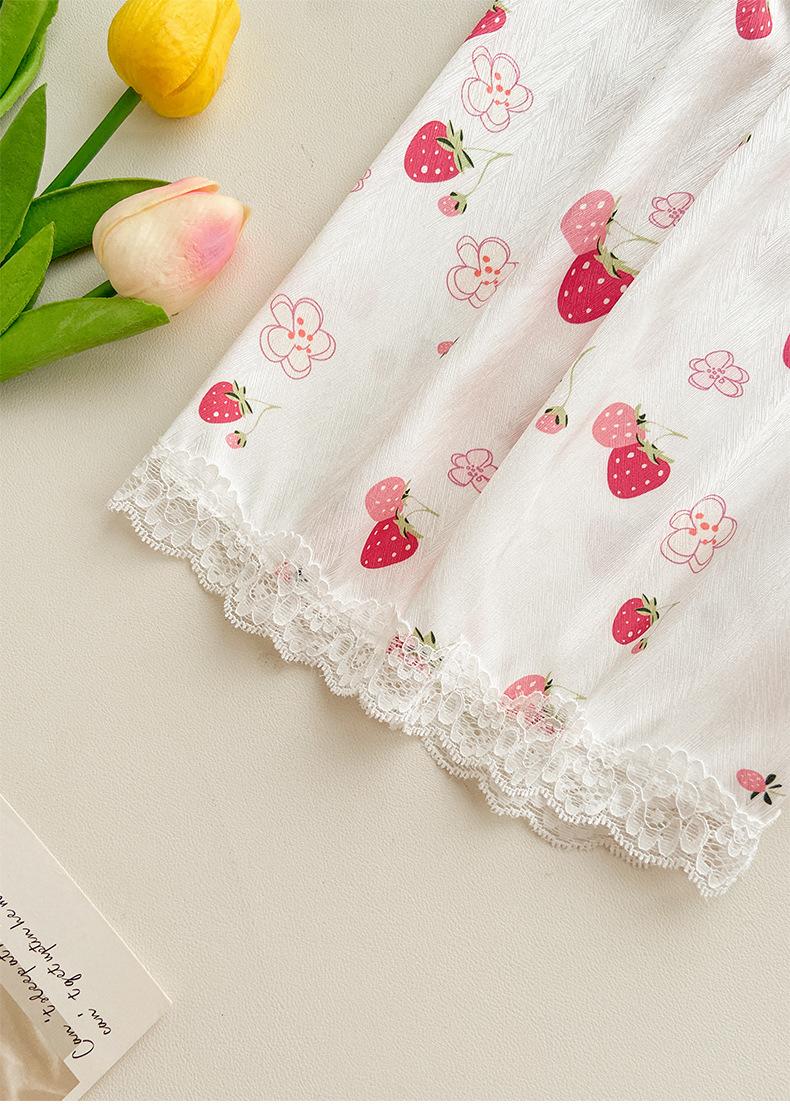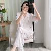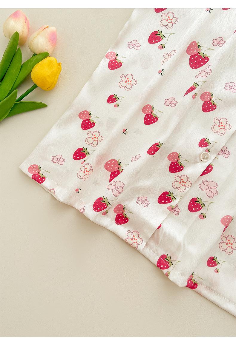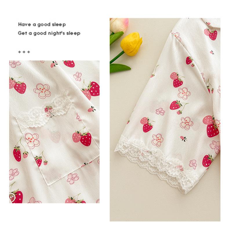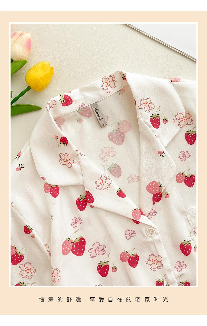Pijama Nuevo 2024 Verano Señoras Seda Hielo y Nieve Delgada Pequeño Fresco y Lindo Estampado Conjunto de Tres Piezas Ropa para el Hogar
