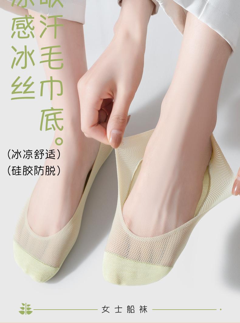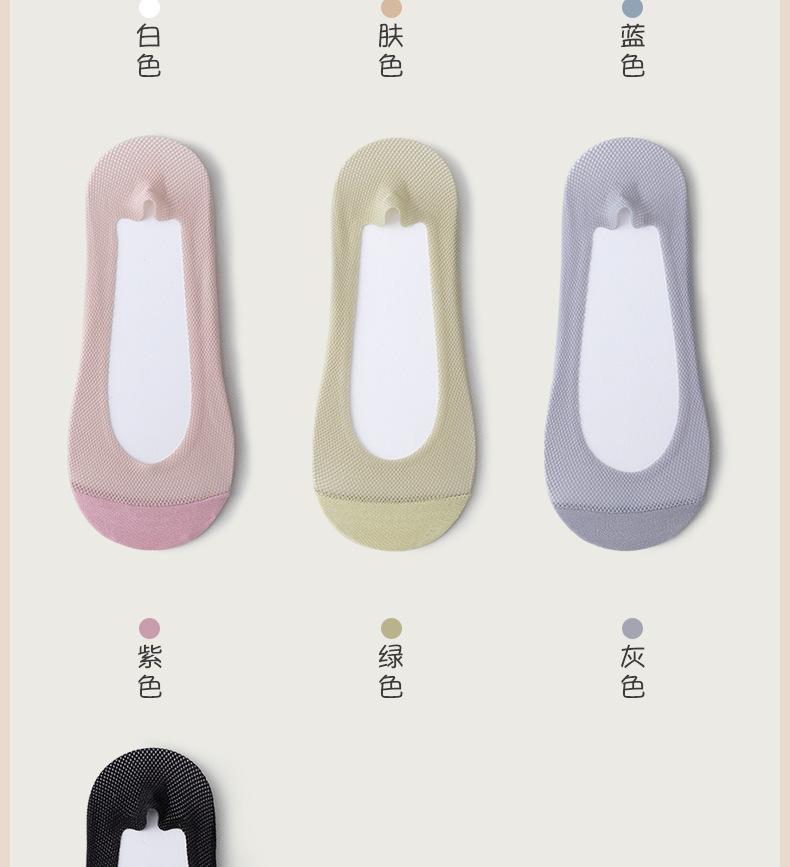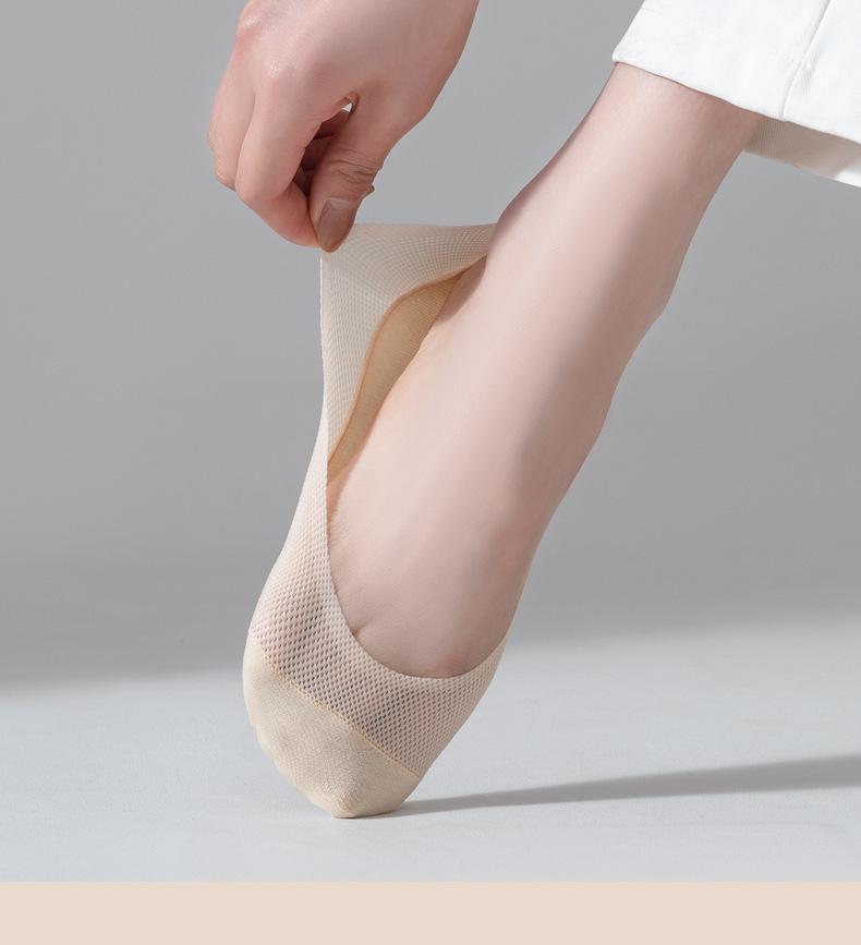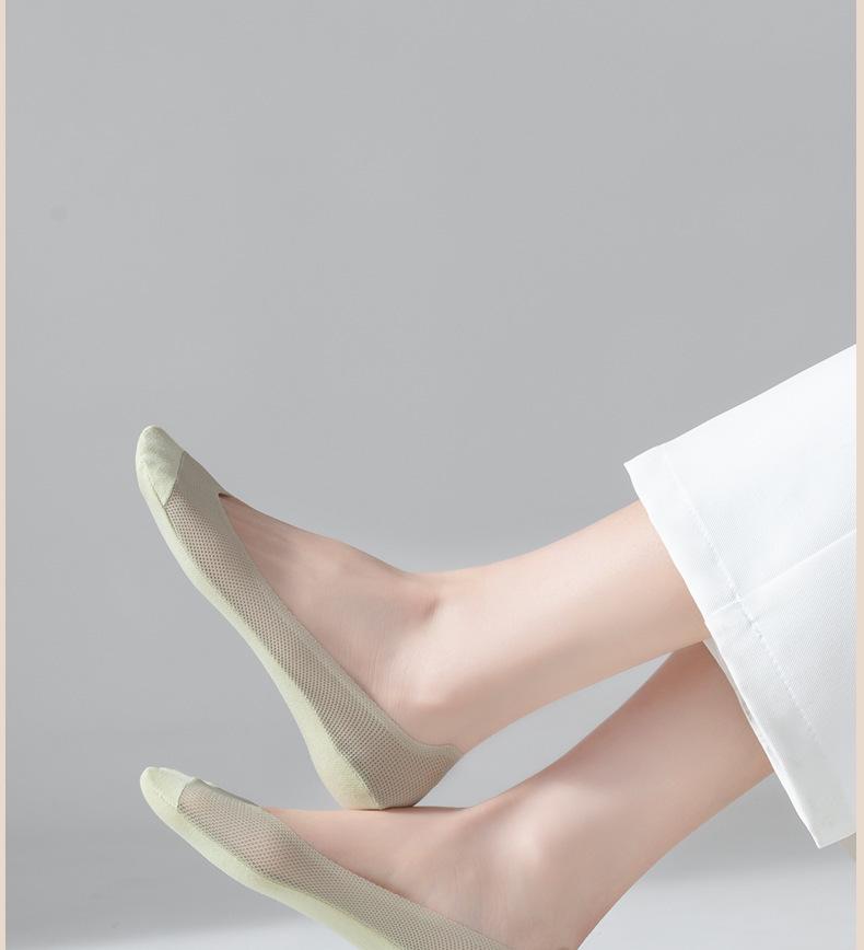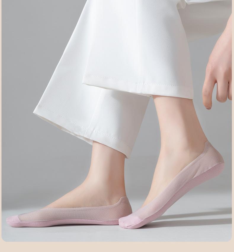 Calcetines Invisibles para Mujer, Calcetines de Barco Antideslizantes de Algodón Puro, Calcetines Cortos Transpirables de Malla Fina de Verano, Calcetines Versátiles para Mujer Antiperforación