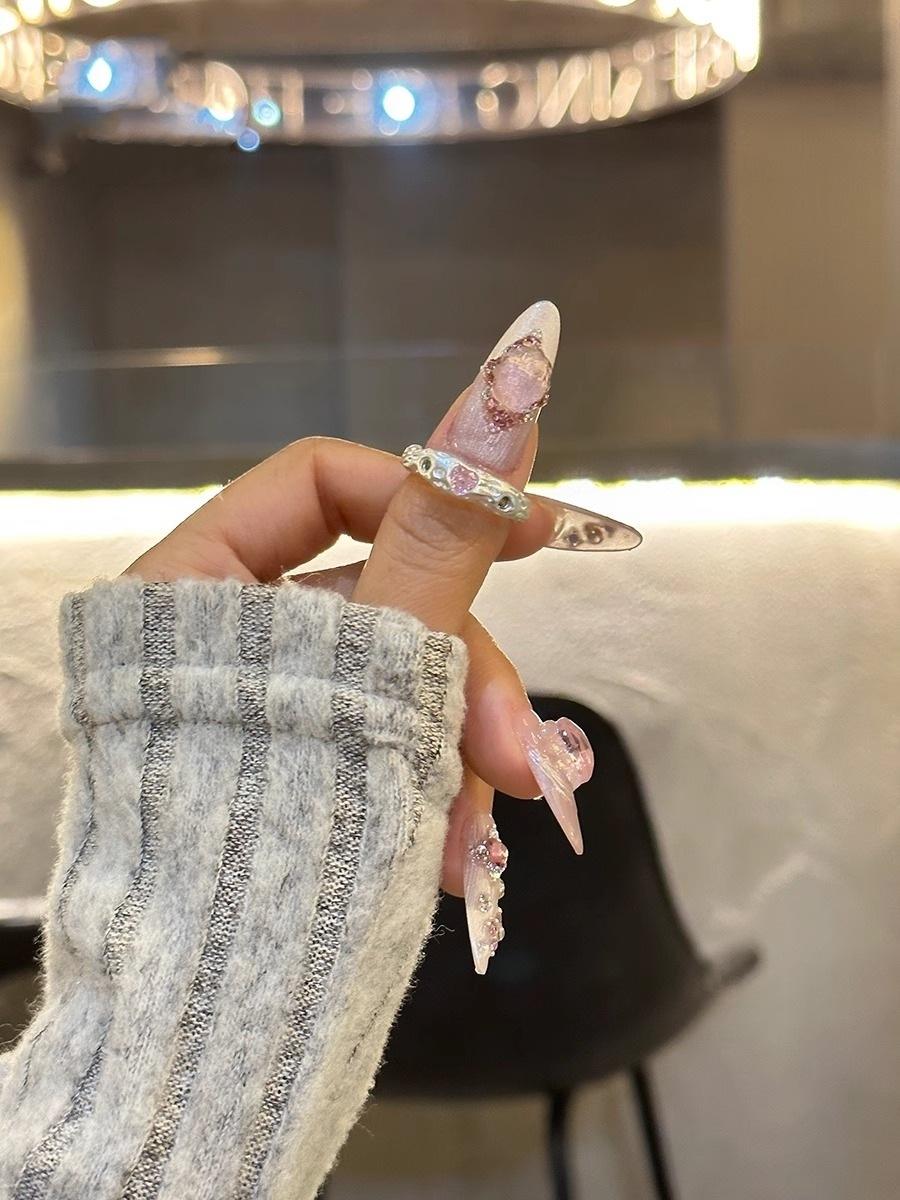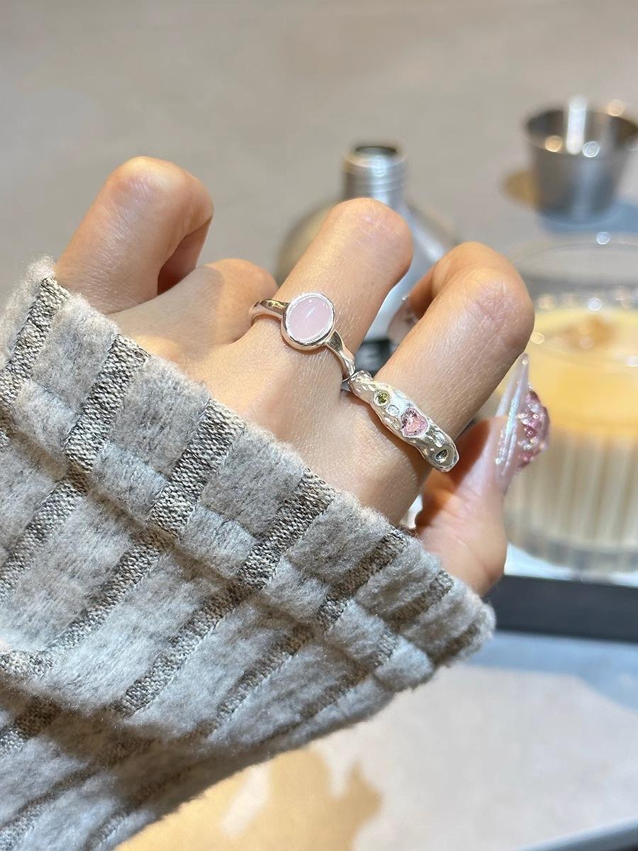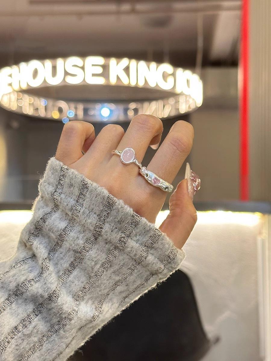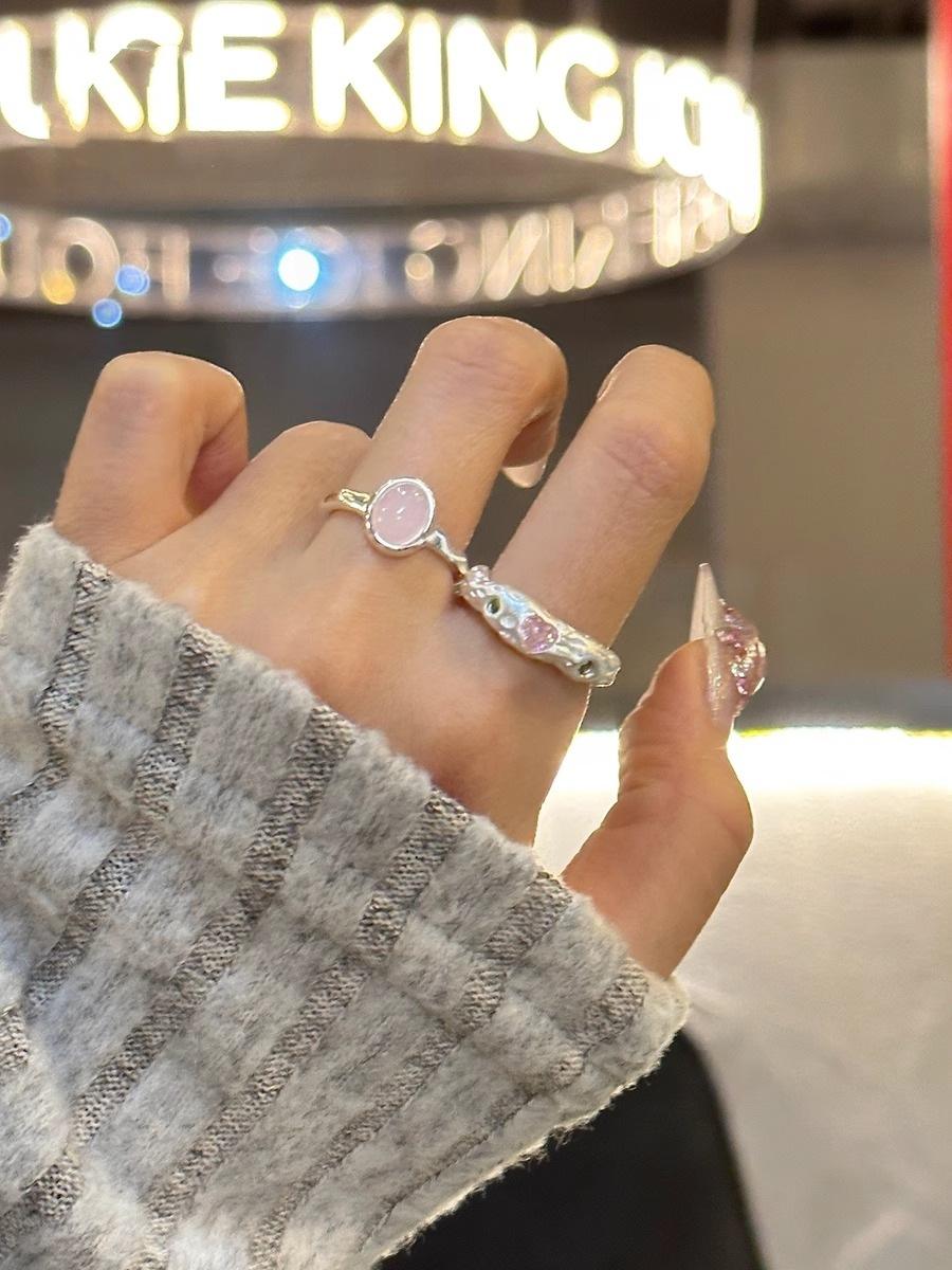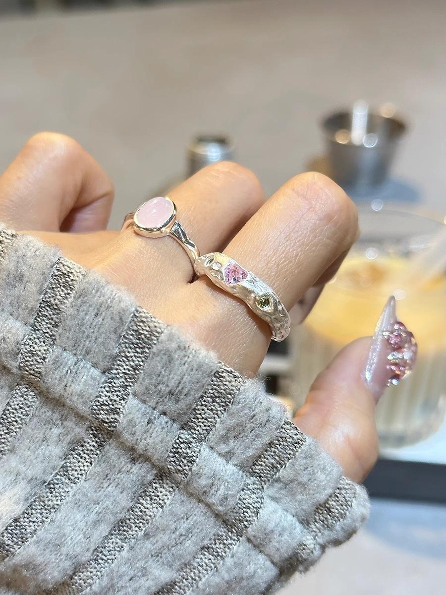 Anillo Rosa de Circonita con Corazón de Amor para Mujer, Textura Irregular, Diseño de Nicho Dulce y Cool Ins, Anillo Abierto Nuevo 2025