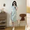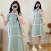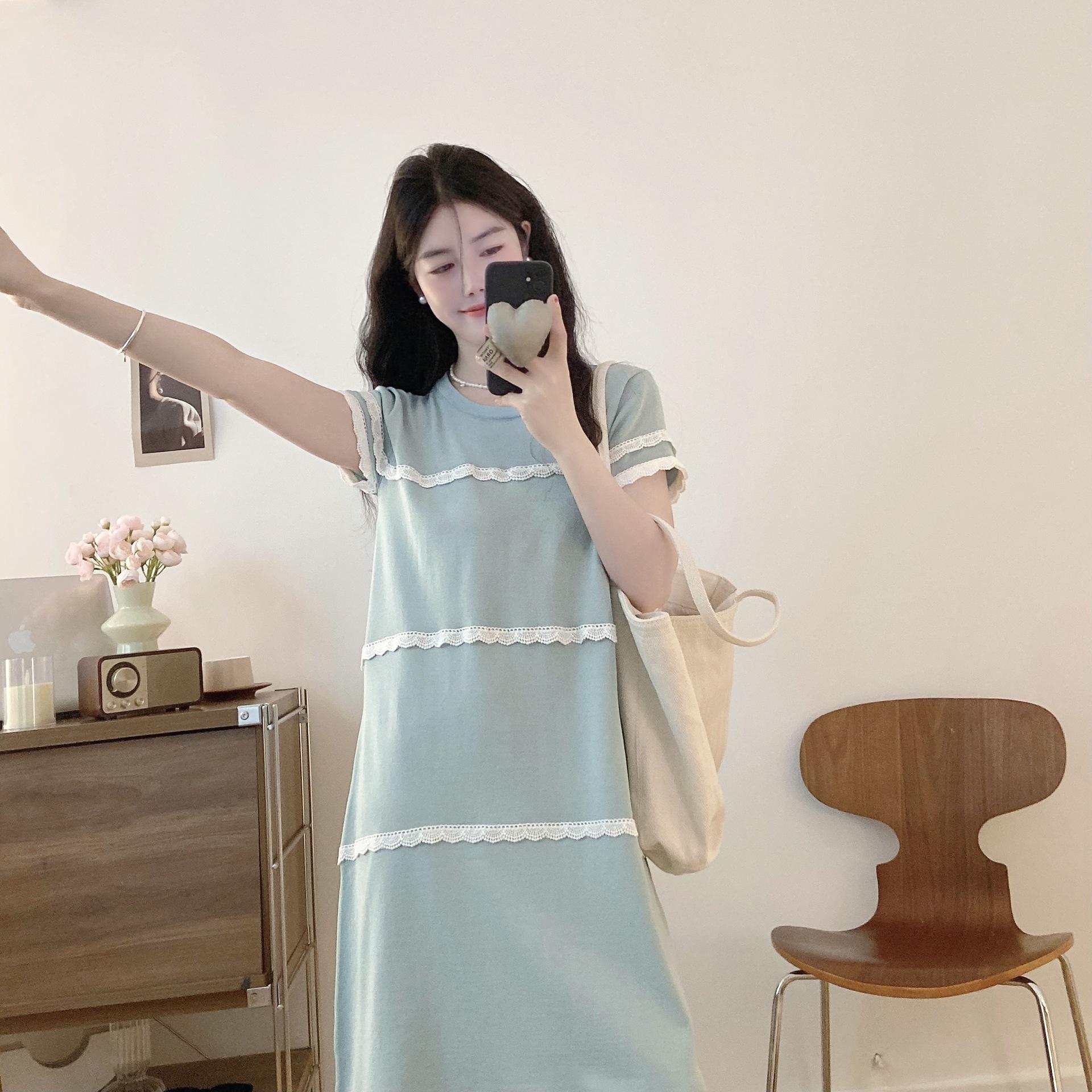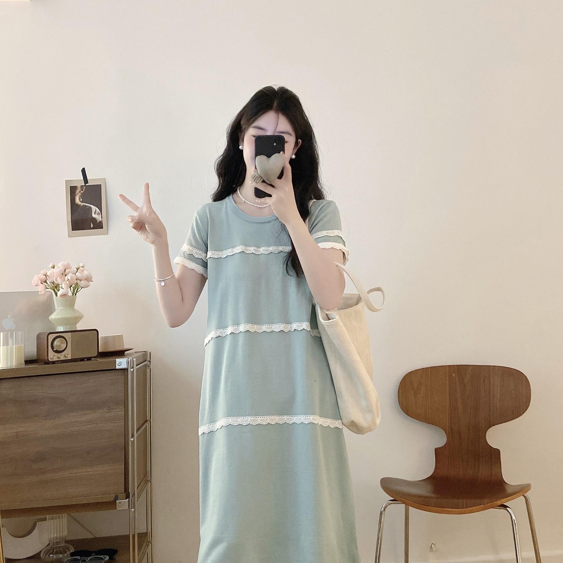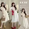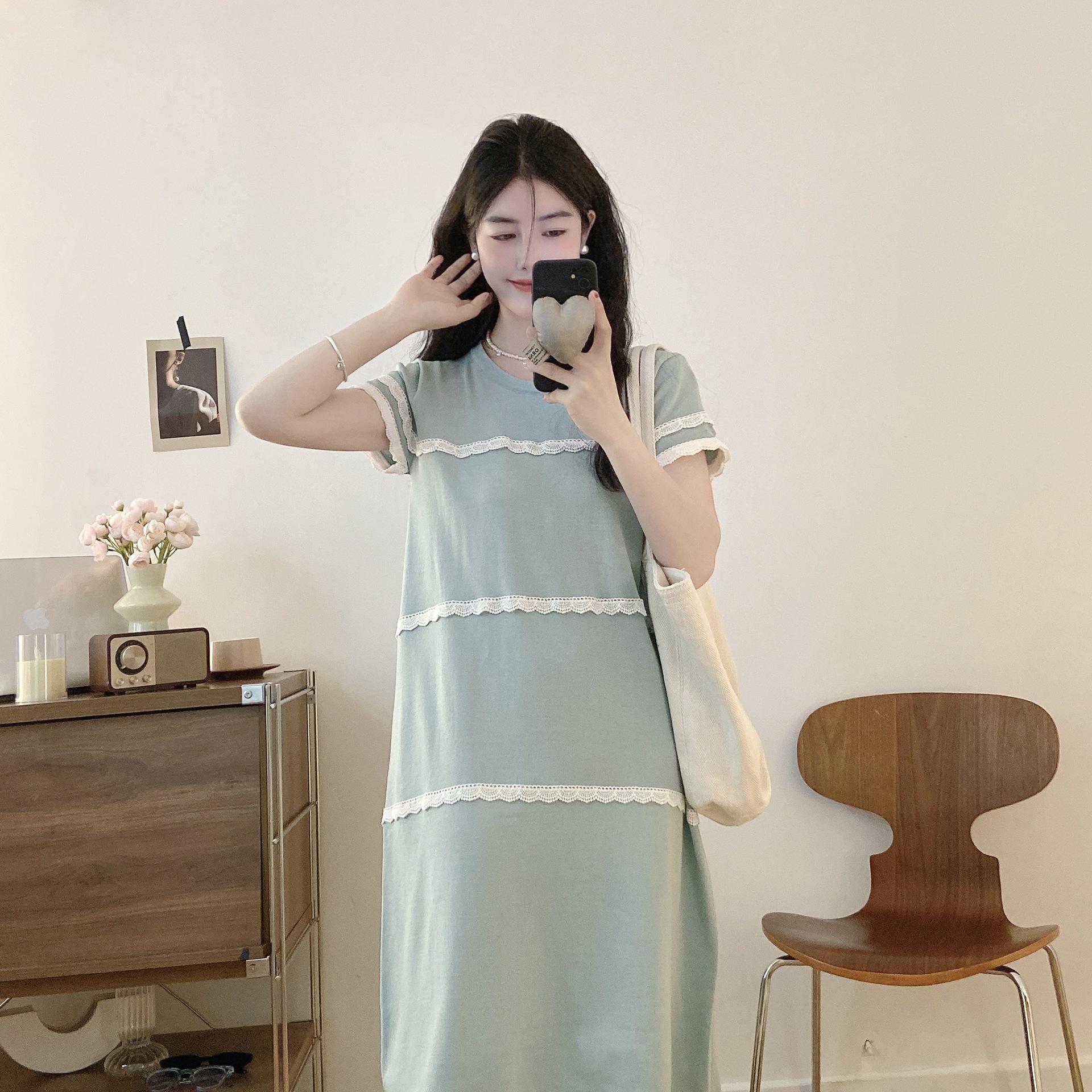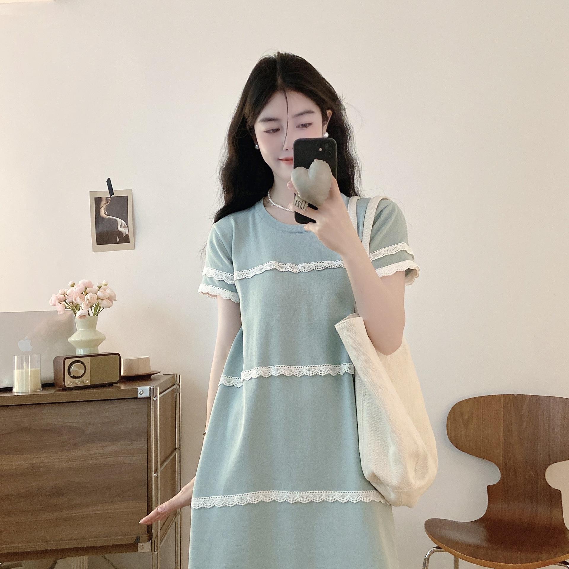 Maternidad 2025 Verano Nuevo Moda Coreana Encaje Costura Talla Grande Tejido Suelto Vestido de Mujeres Embarazadas