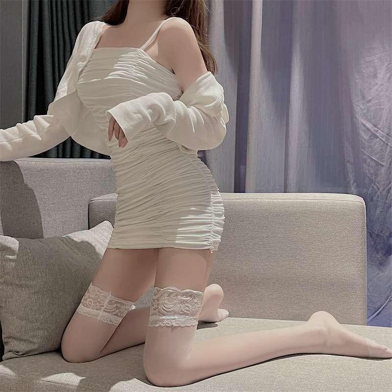 Medias Negras de Encaje Antideslizantes hasta la Rodilla, Medias Negras Femeninas, Medias Largas hasta el Muslo, Medias Blancas de Media Caña