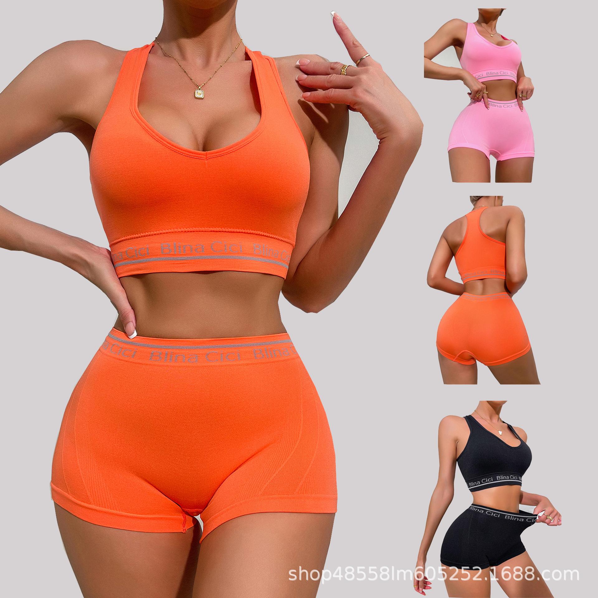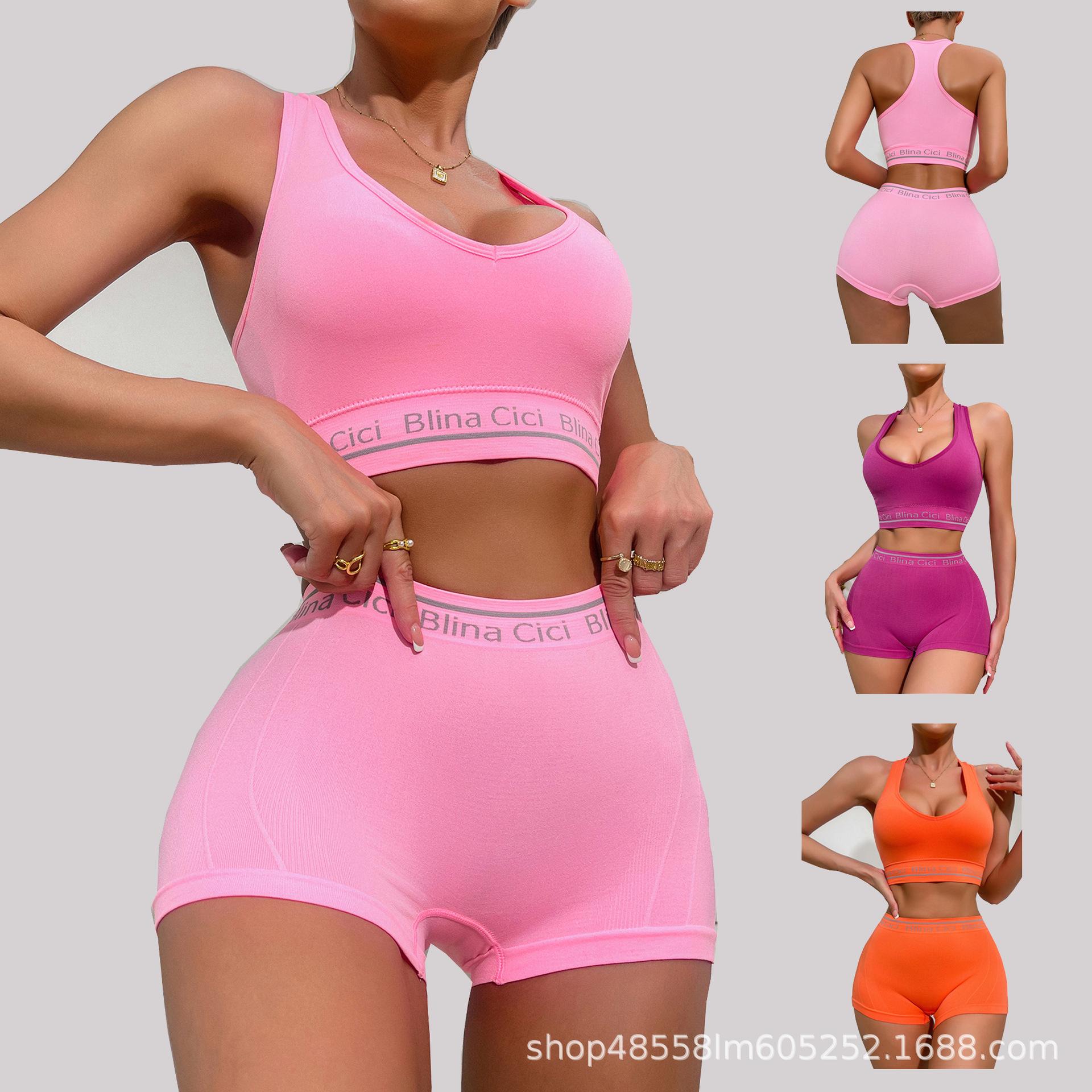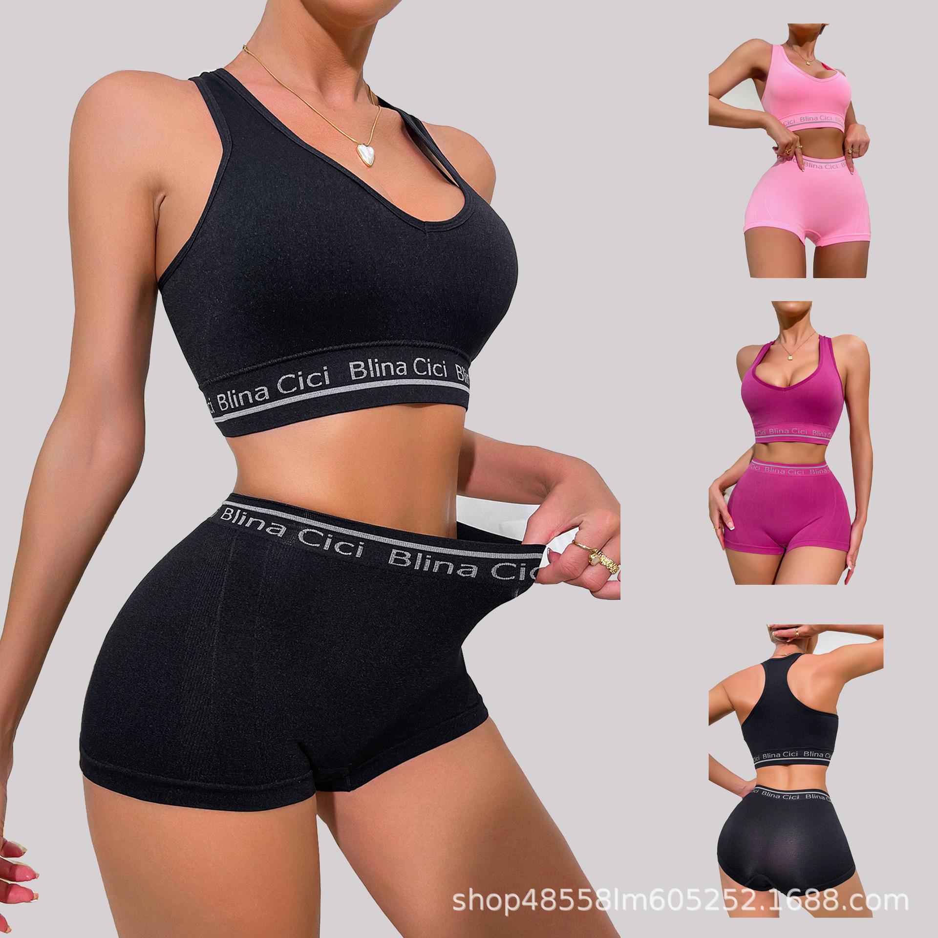 Conjunto de Sujetador Sexy Europeo y Americano Personalizado Amazon Chaleco Racer Sujetador Deportivo Pantalones Planos para Mujer Temu