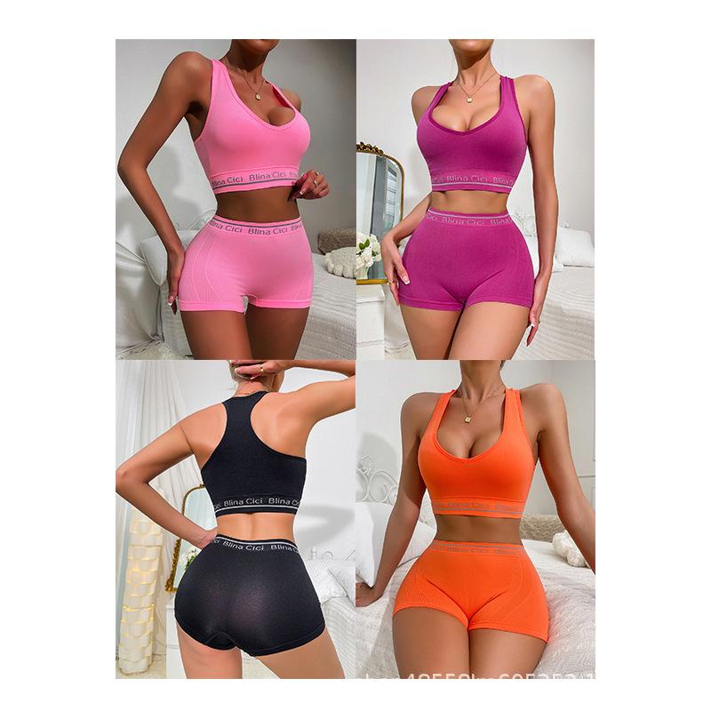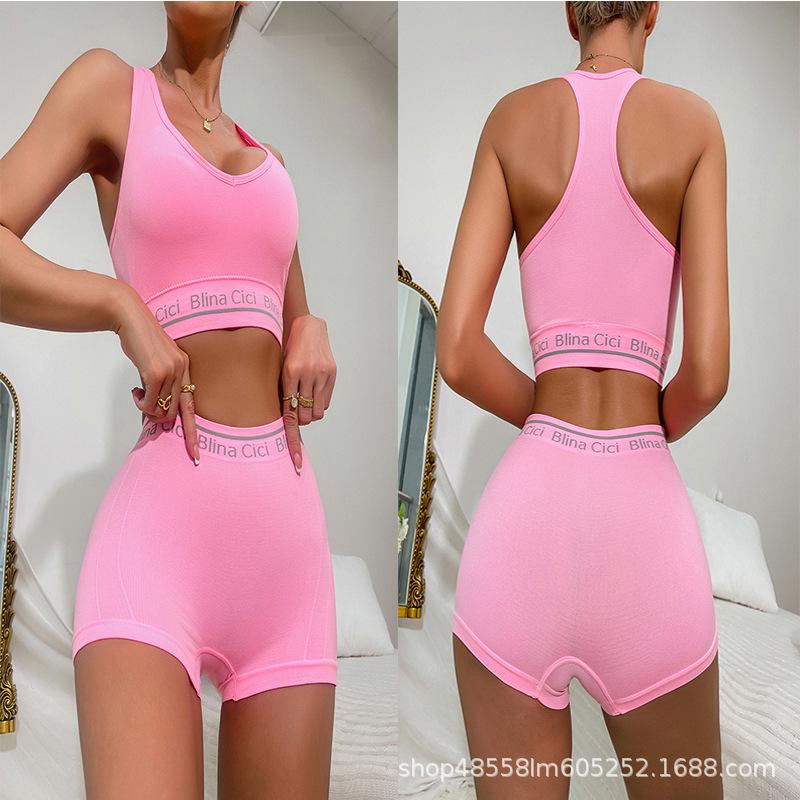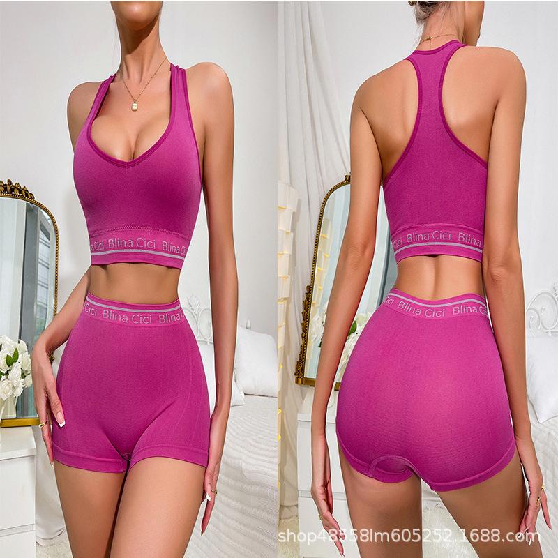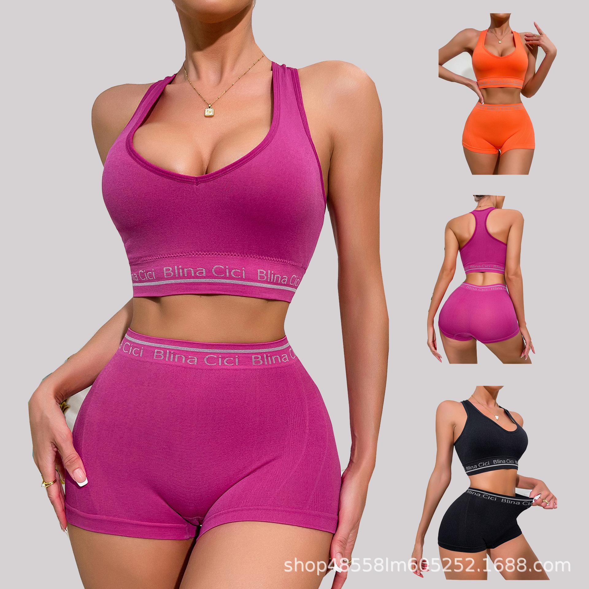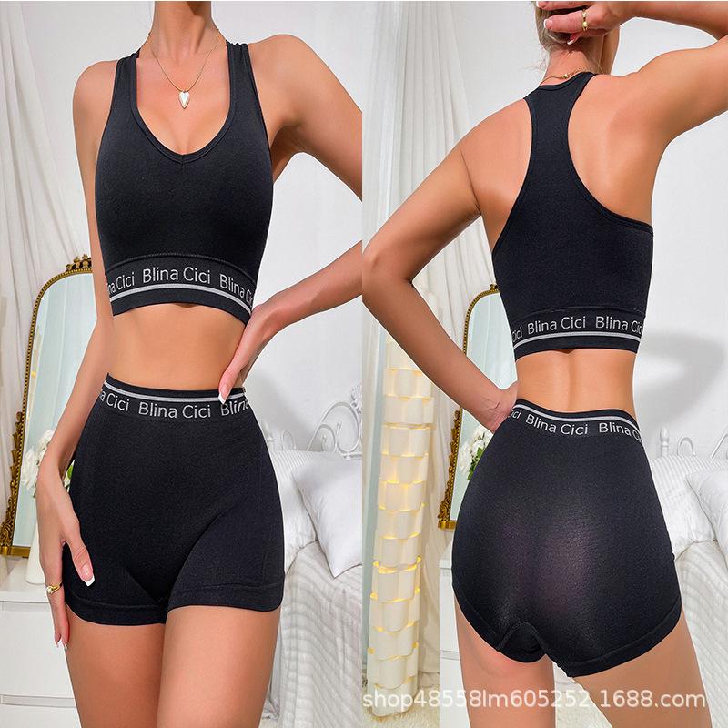 Conjunto de Sujetador Sexy Europeo y Americano Personalizado Amazon Chaleco Racer Sujetador Deportivo Pantalones Planos para Mujer Temu