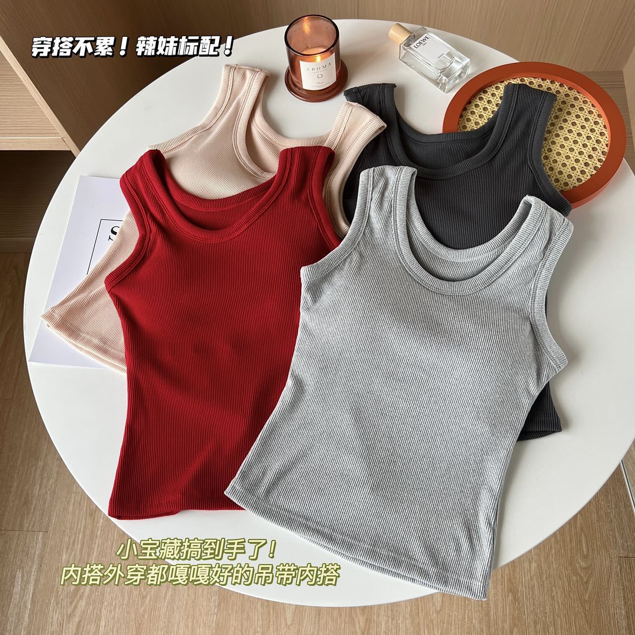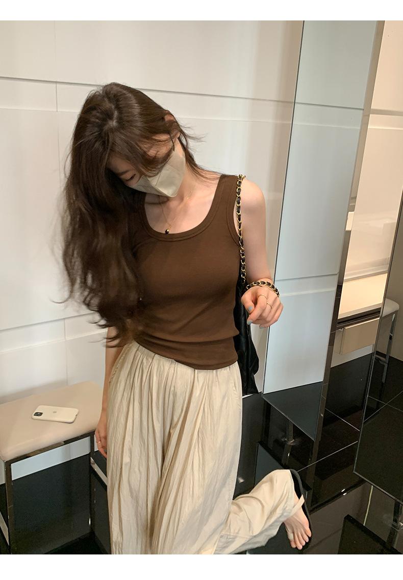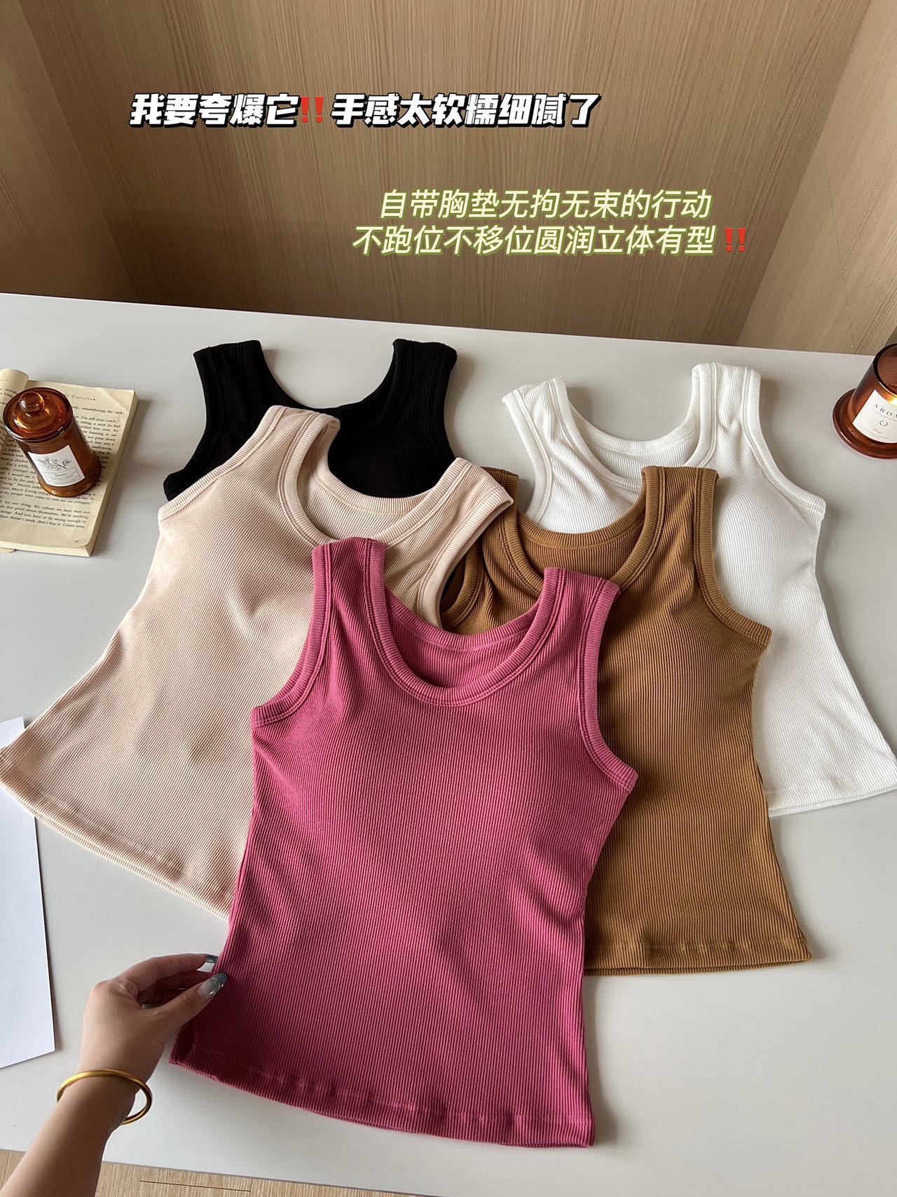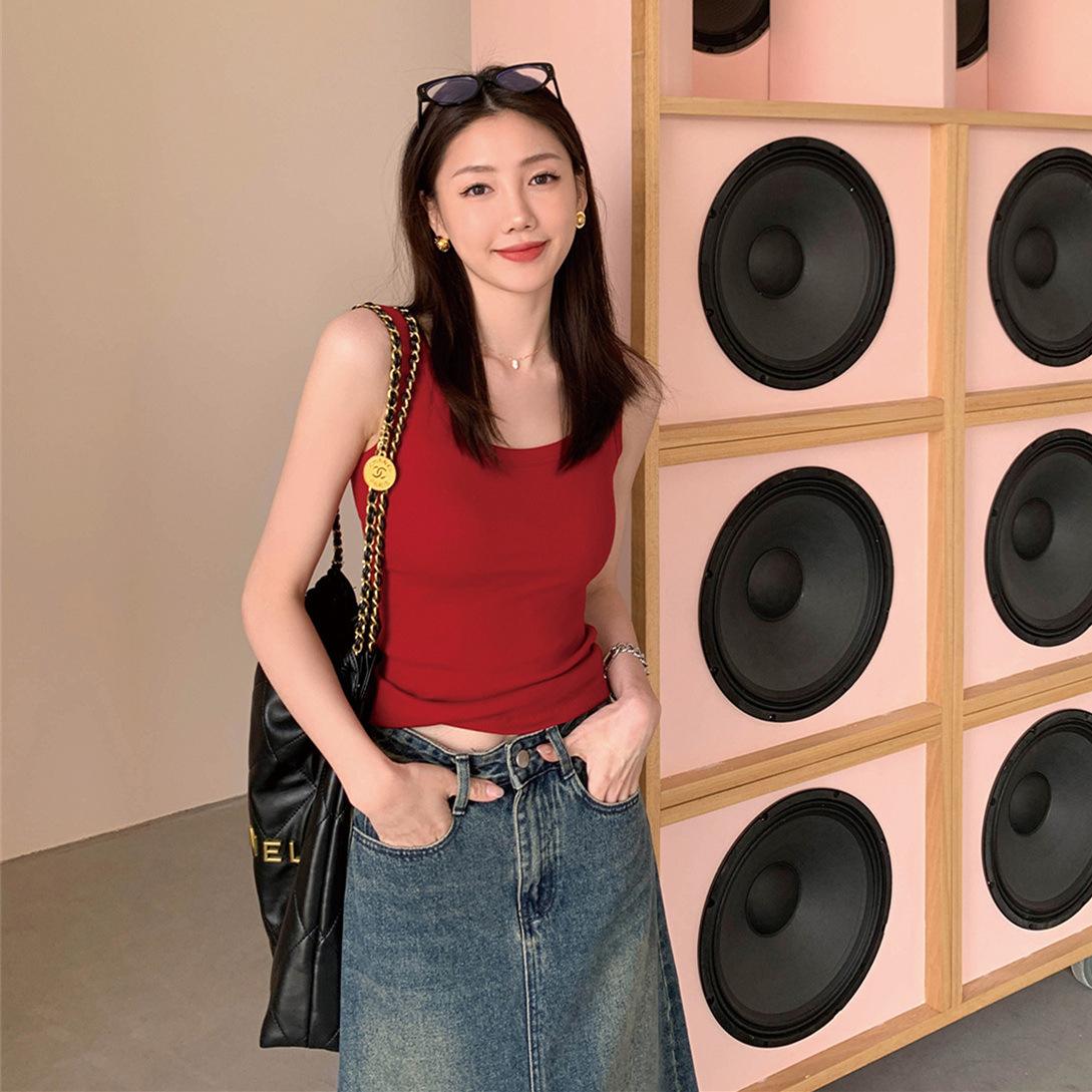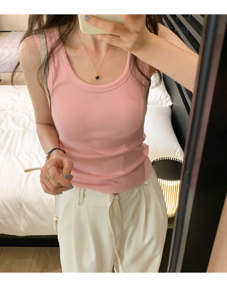 Otoño Nueva Camisola de Tirantes para Mujer Suave Combinable de Tirantes Anchos Sin Mangas Ajustada con Almohadilla en el Pecho