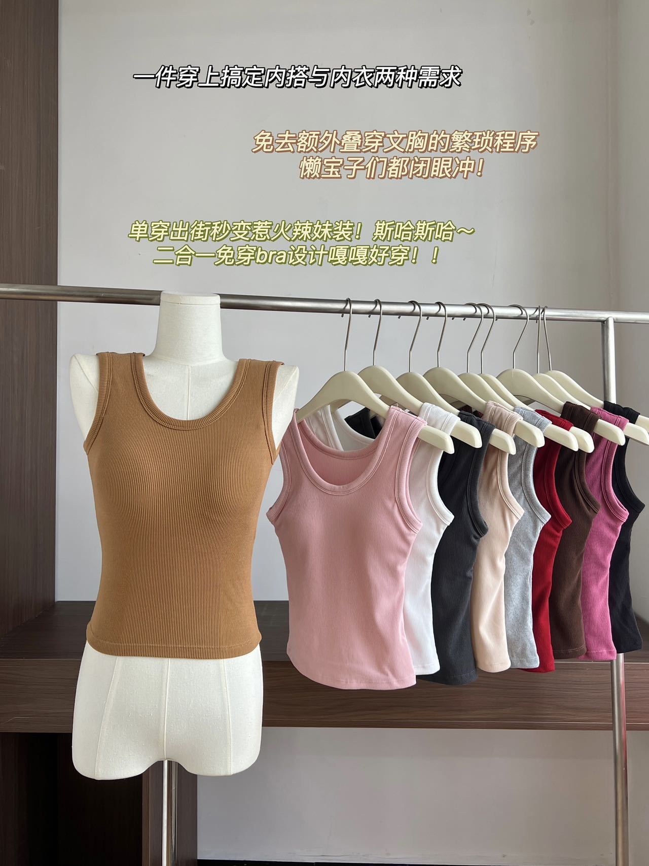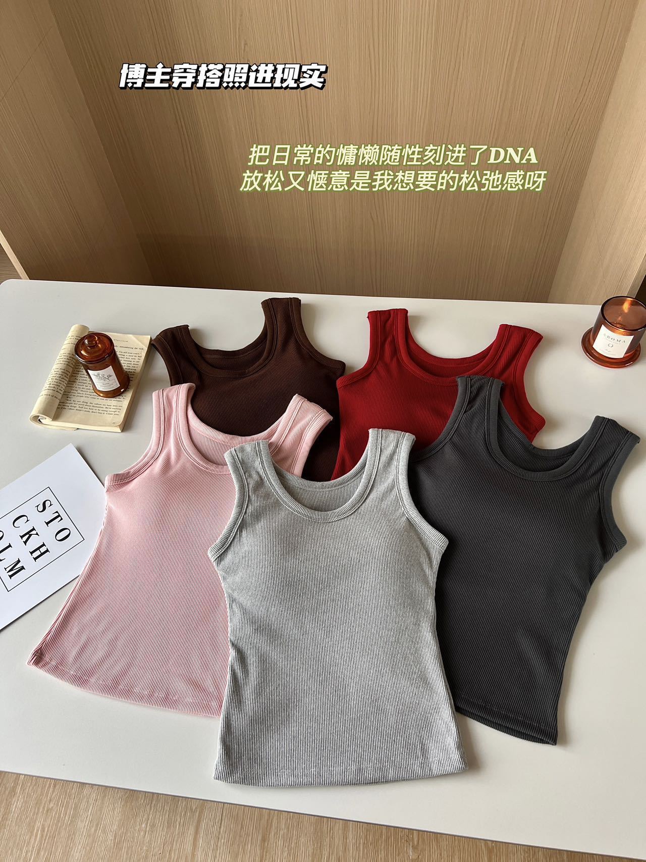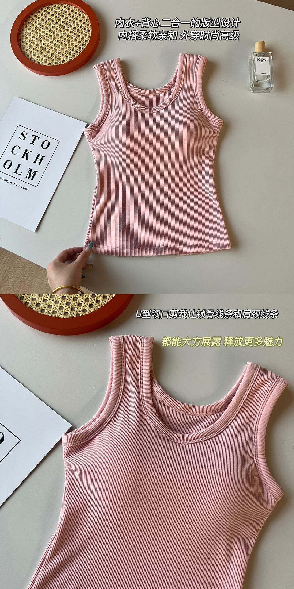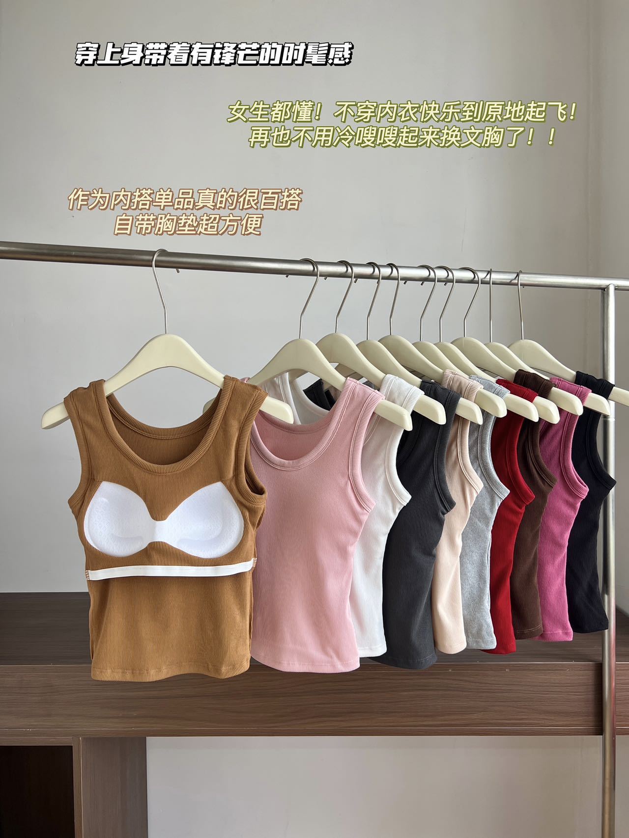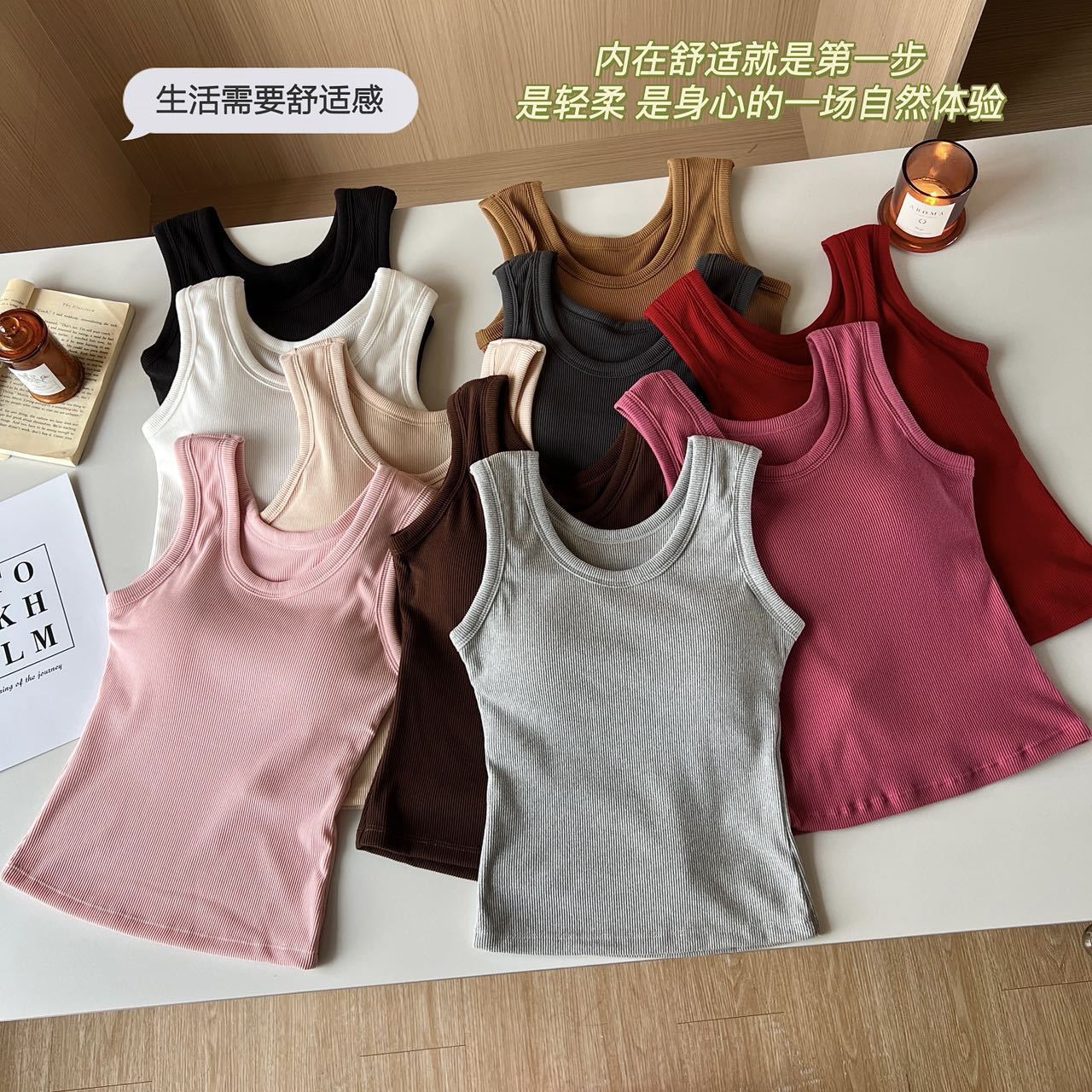 Otoño Nueva Camisola de Tirantes para Mujer Suave Combinable de Tirantes Anchos Sin Mangas Ajustada con Almohadilla en el Pecho