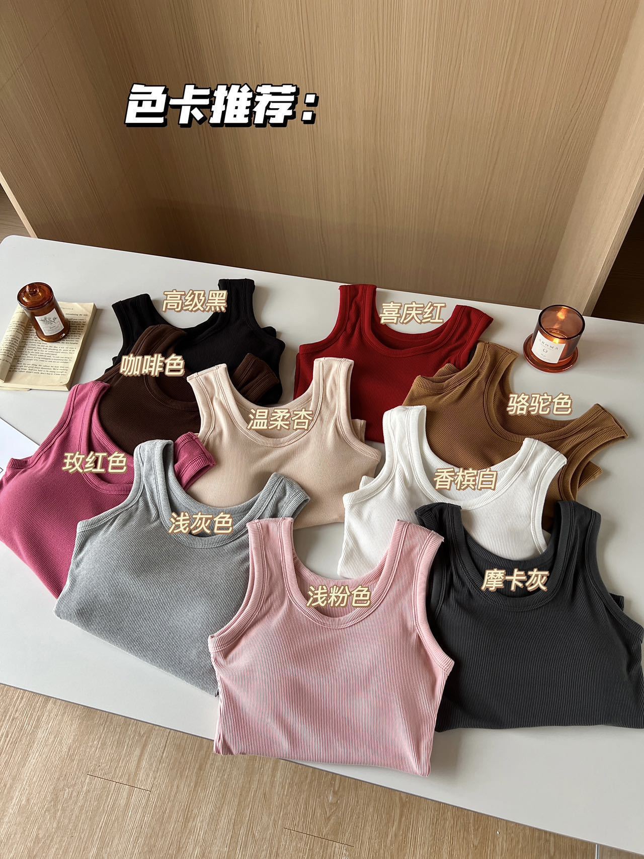 Pink, White, Rose red, Apricot, Light gray, Dark gray, Black, Red, Brown, Camel