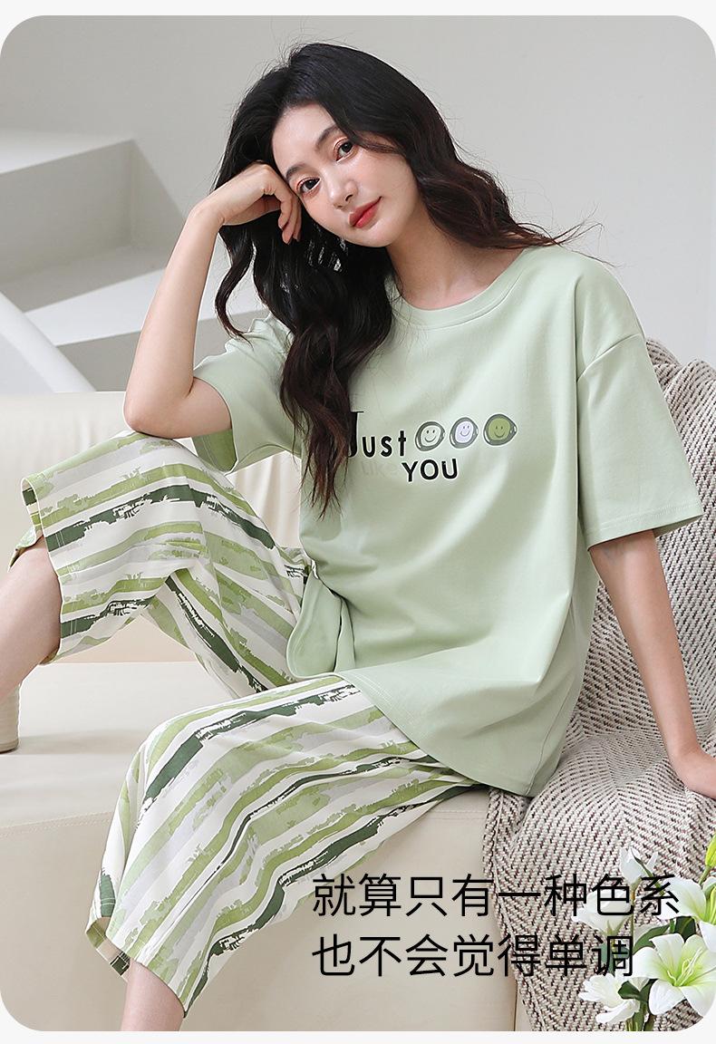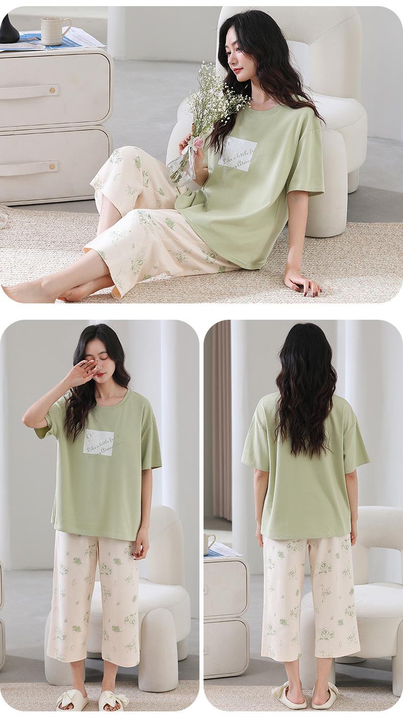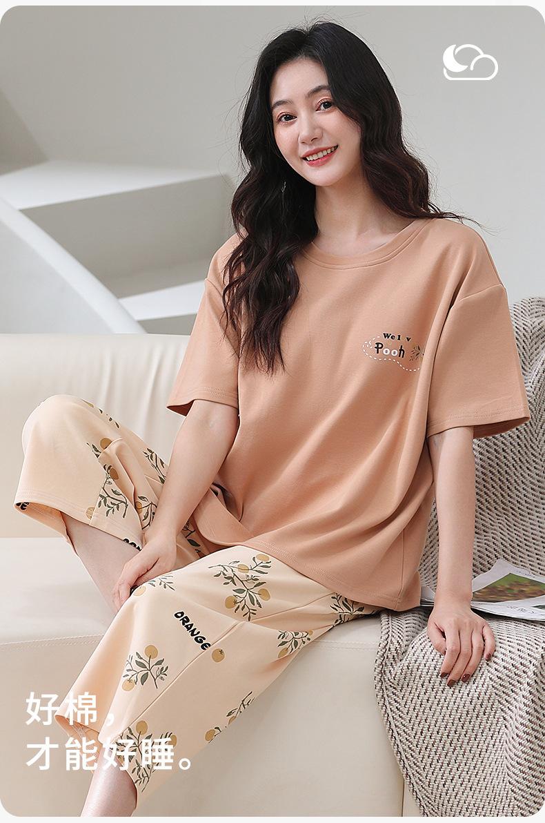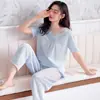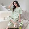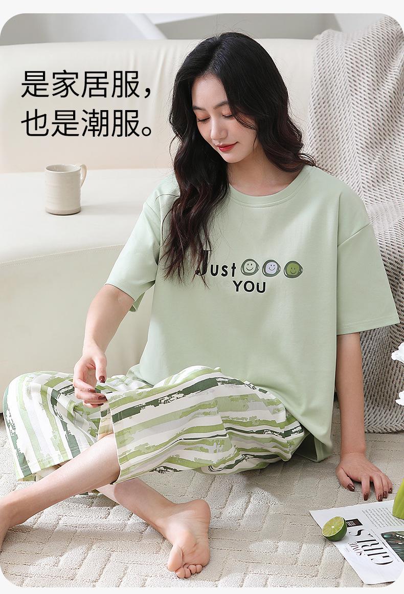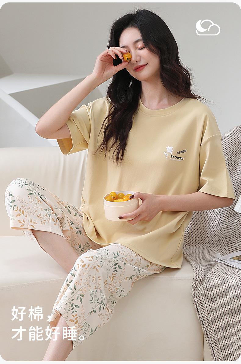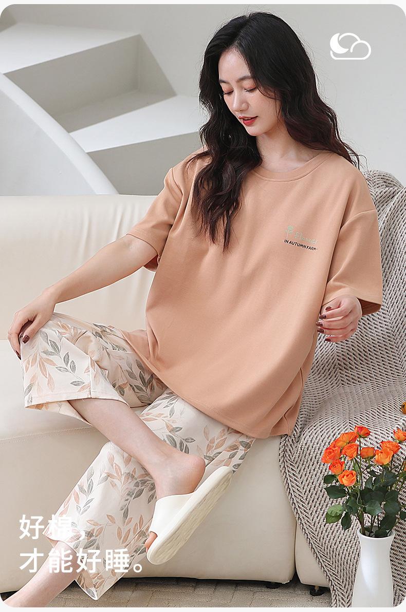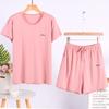 Pijama Nuevo para Mujer de Verano de Manga Corta Algodón Modal Seda para Usar al Aire Libre Sencillo Deportivo para el Hogar Pantalones Cortos Delgados