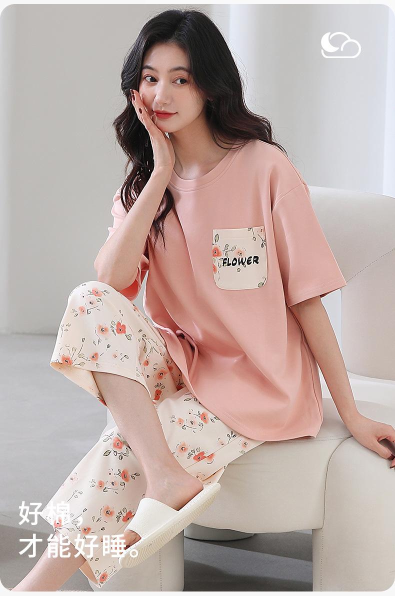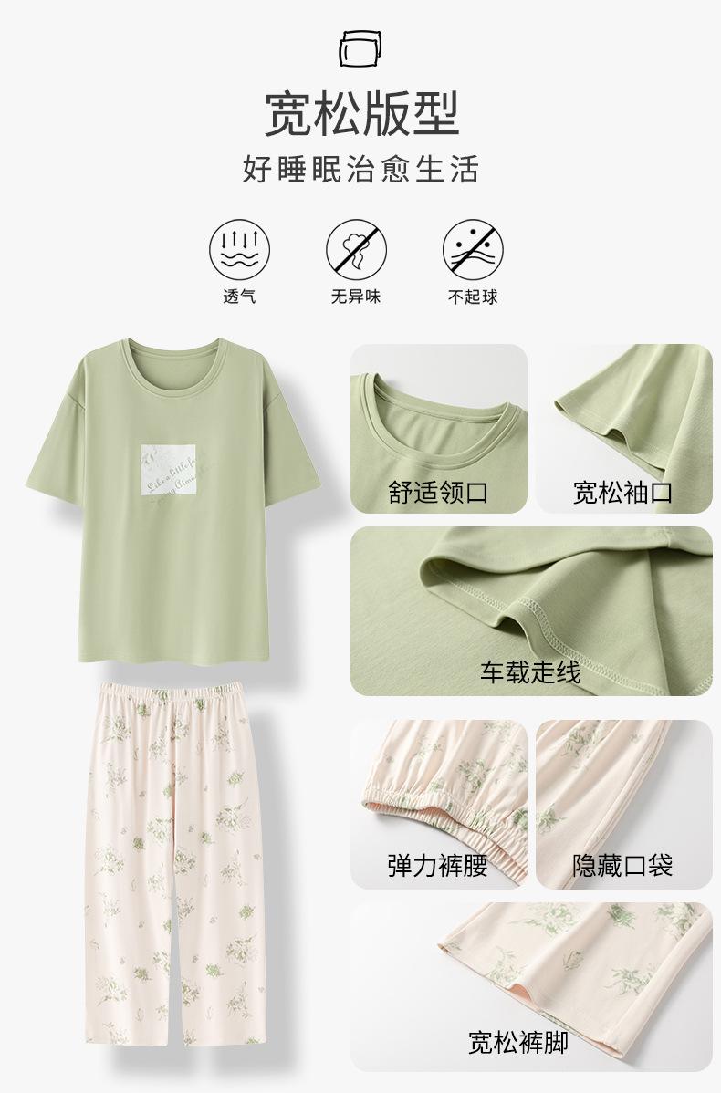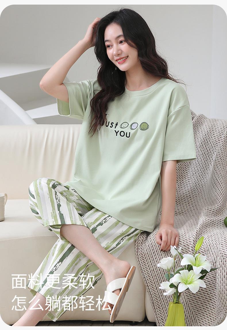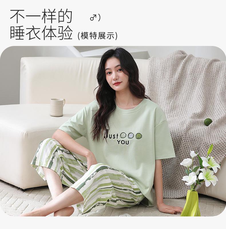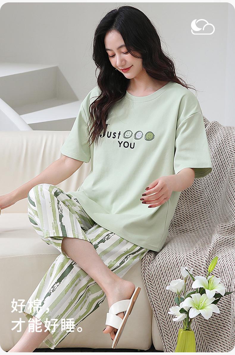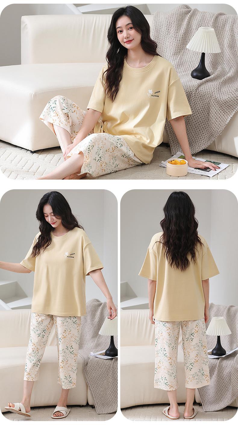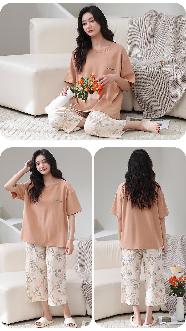 Pijama Nuevo para Mujer de Verano de Manga Corta Algodón Modal Seda para Usar al Aire Libre Sencillo Deportivo para el Hogar Pantalones Cortos Delgados