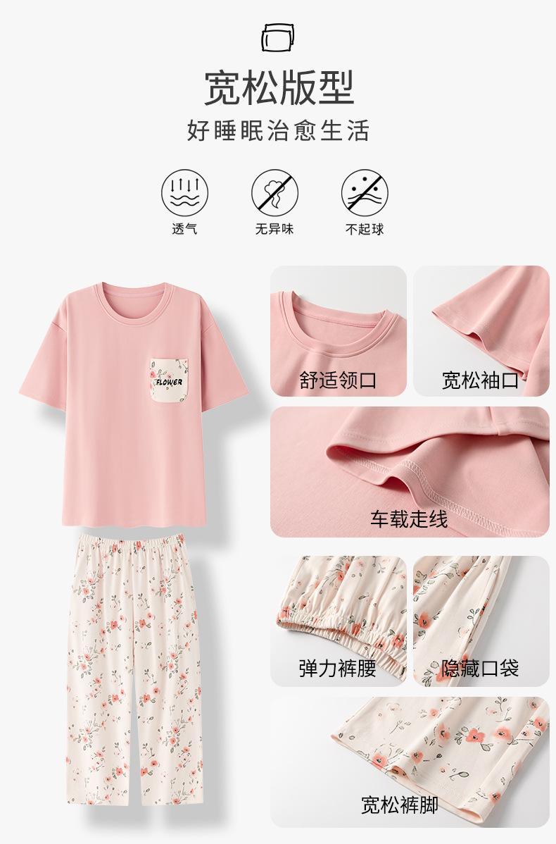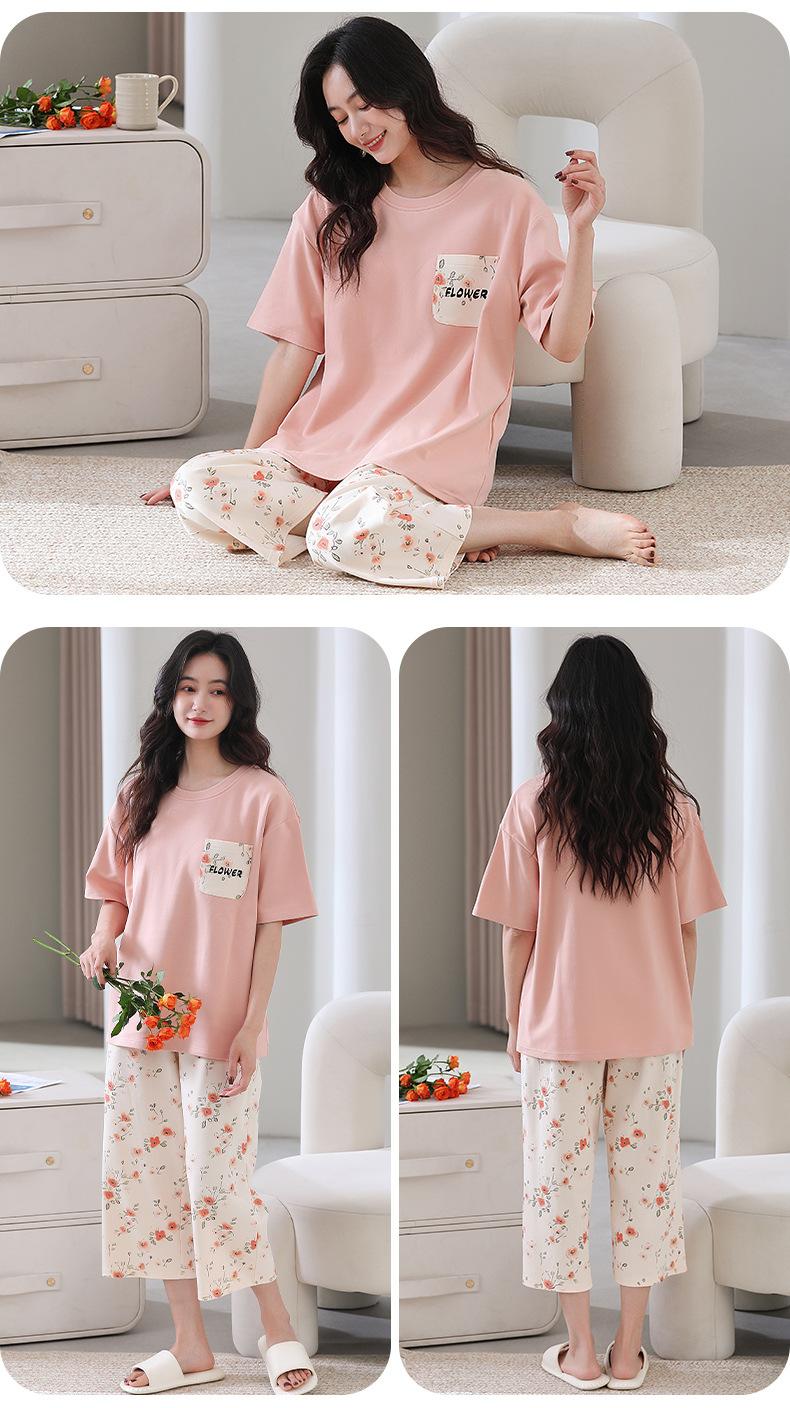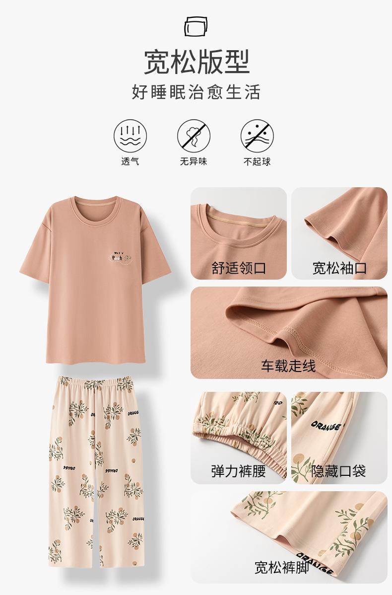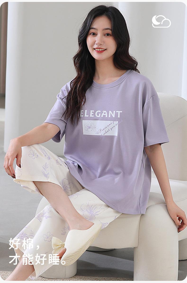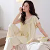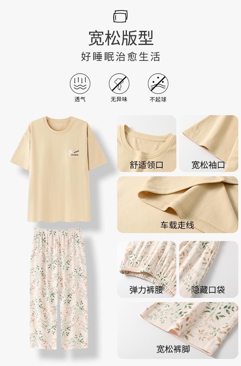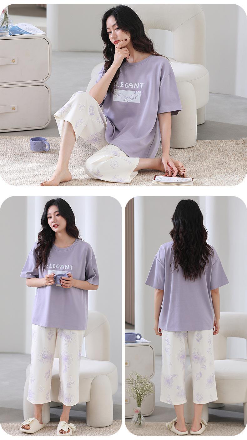 Pijama Nuevo para Mujer de Verano de Manga Corta Algodón Modal Seda para Usar al Aire Libre Sencillo Deportivo para el Hogar Pantalones Cortos Delgados