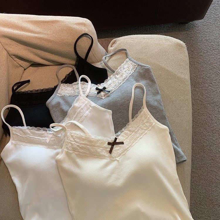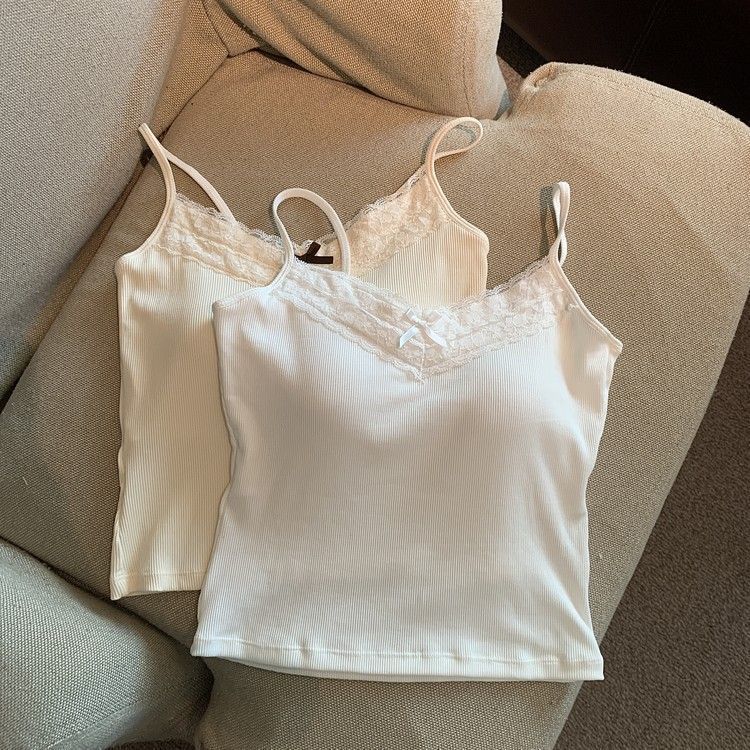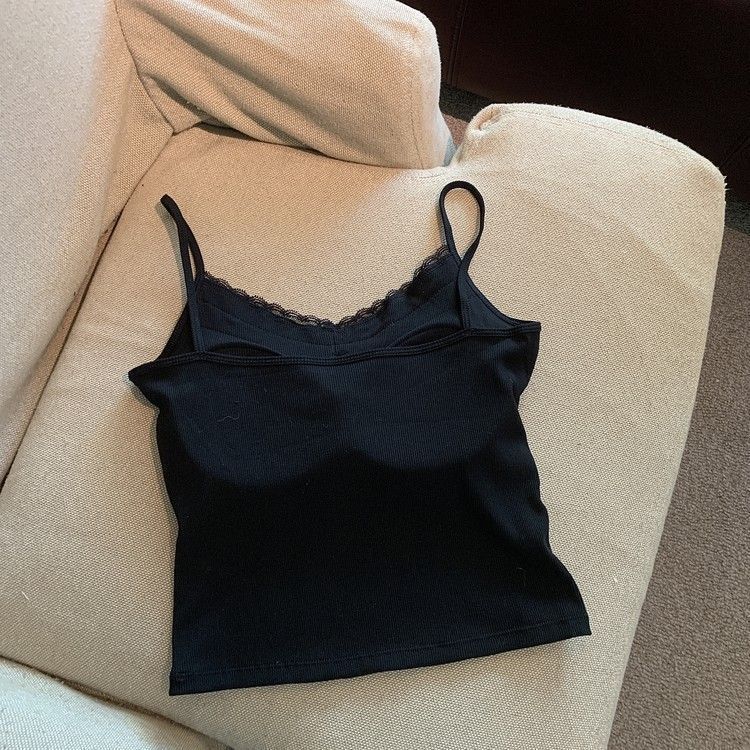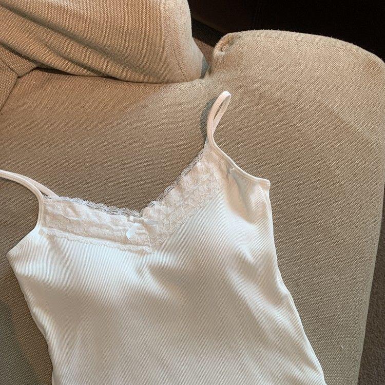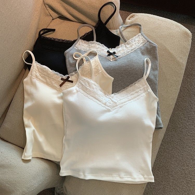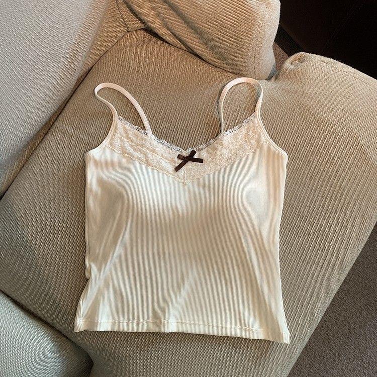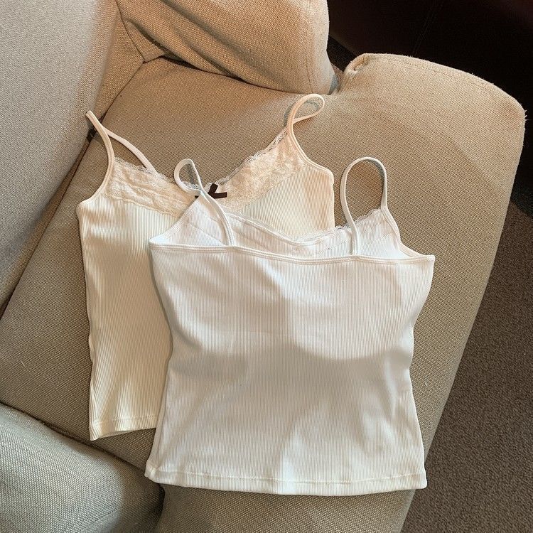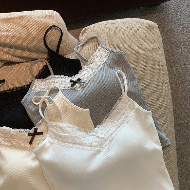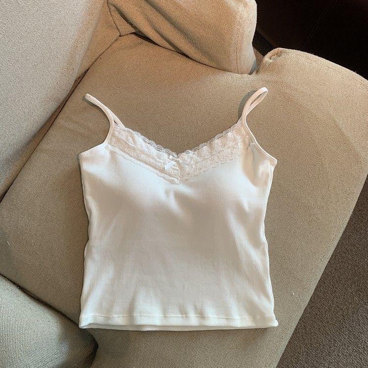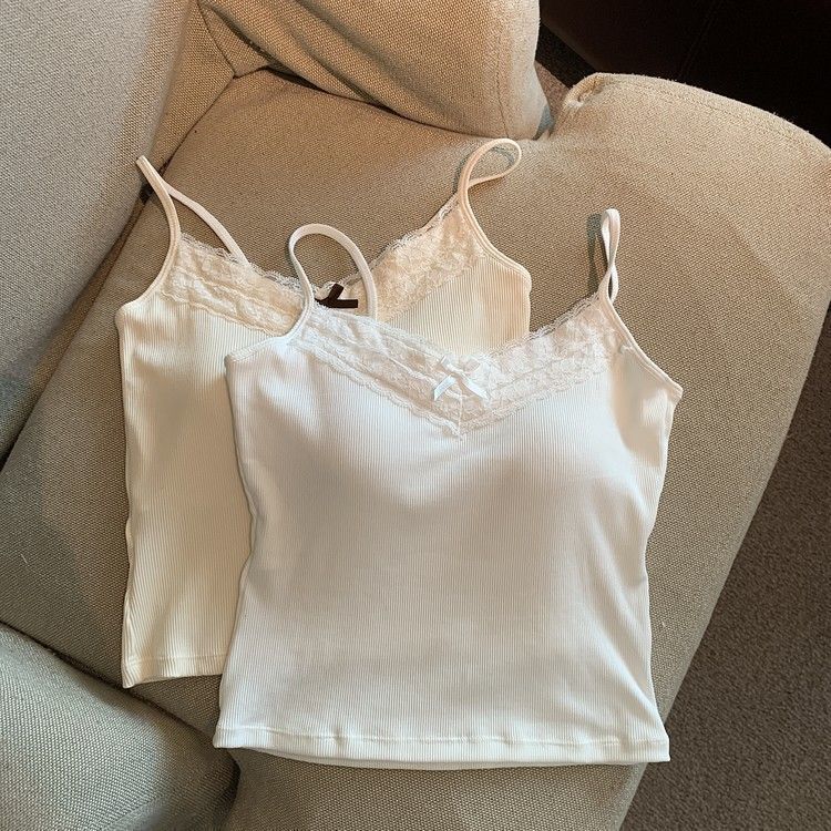 Deseo Puro Chica Caliente Espalda Hermosa con Almohadillas en el Busto Camisola Ropa Exterior de Primavera y Verano para Mujer Encaje Camiseta Básica con Top