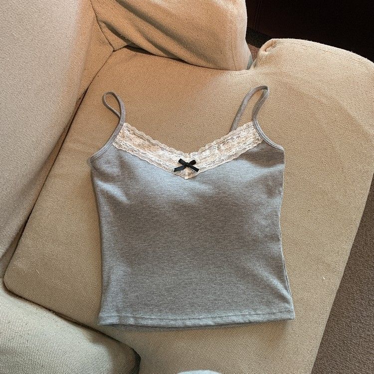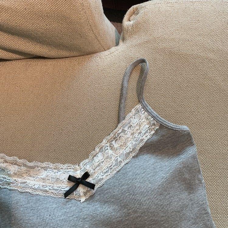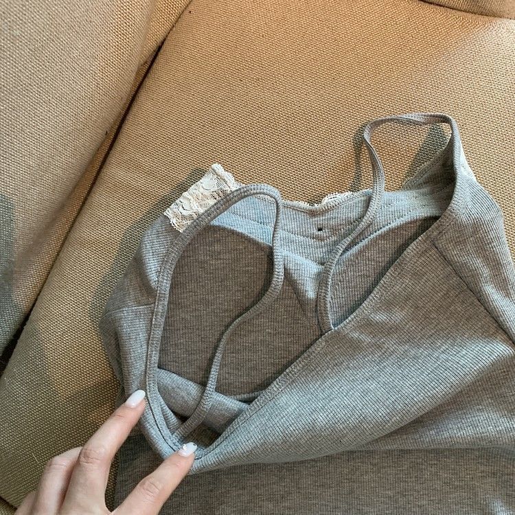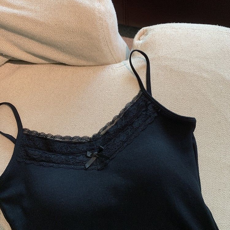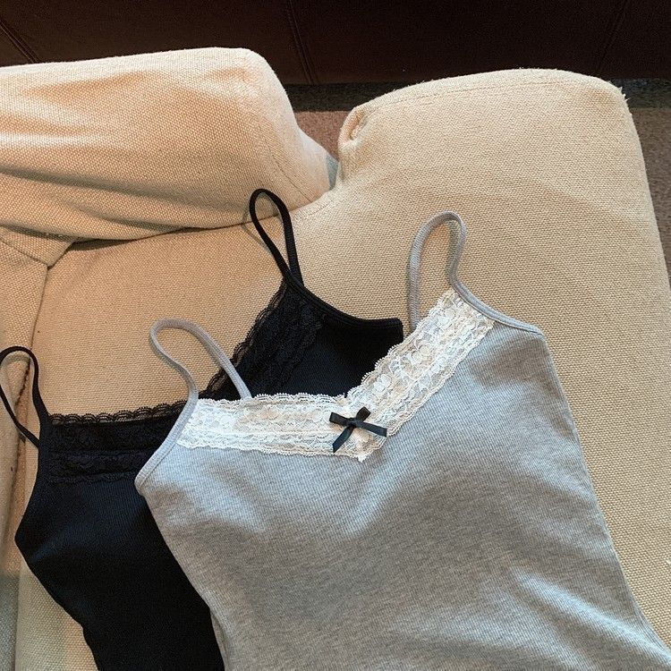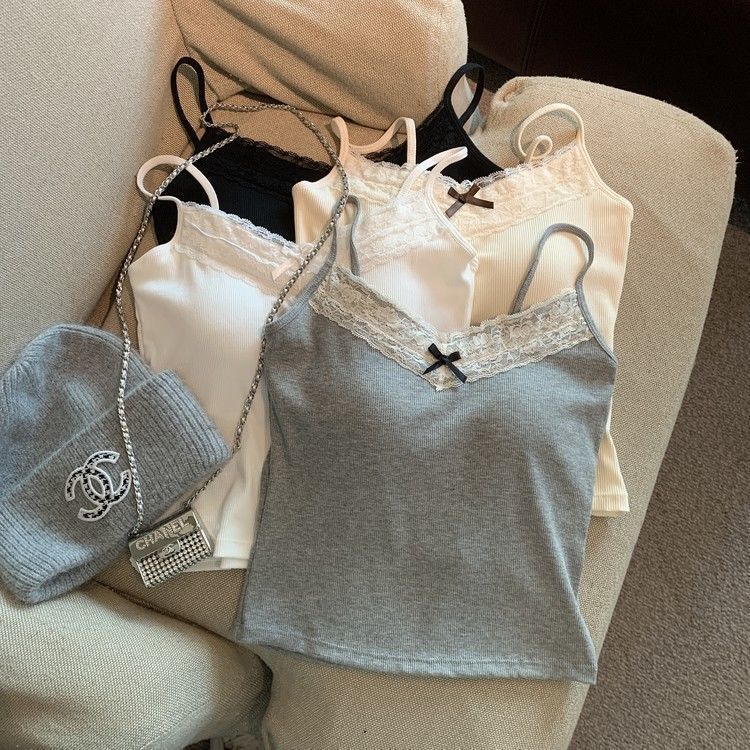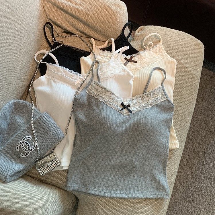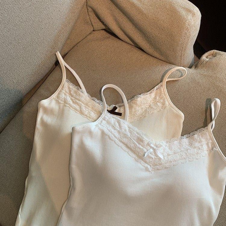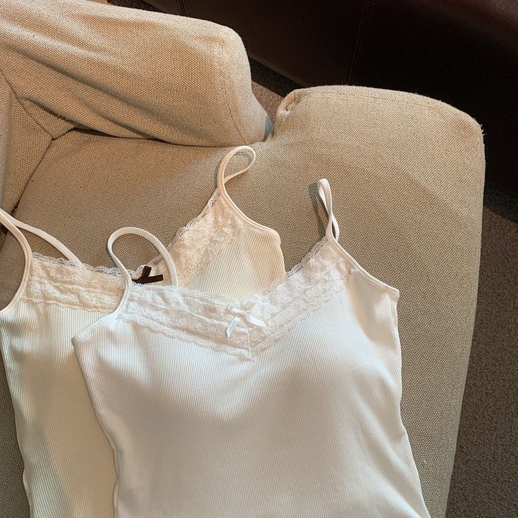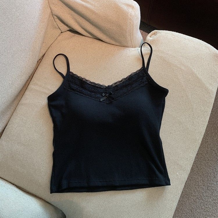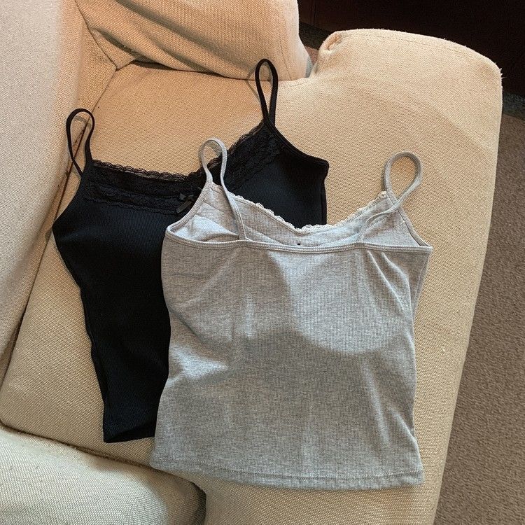 Deseo Puro Chica Caliente Espalda Hermosa con Almohadillas en el Busto Camisola Ropa Exterior de Primavera y Verano para Mujer Encaje Camiseta Básica con Top