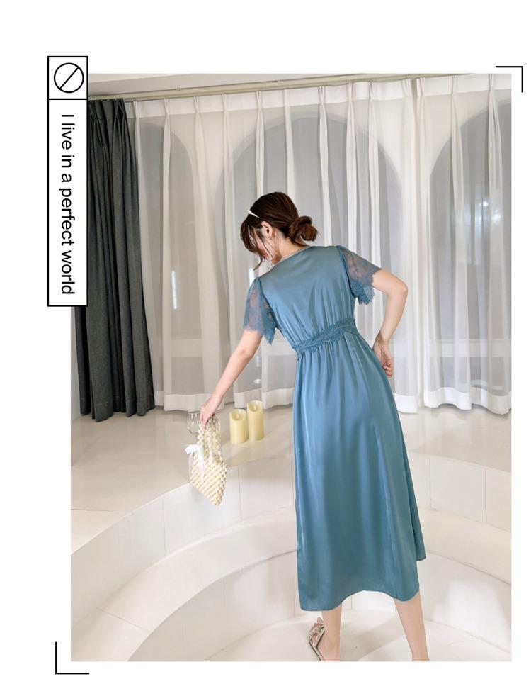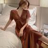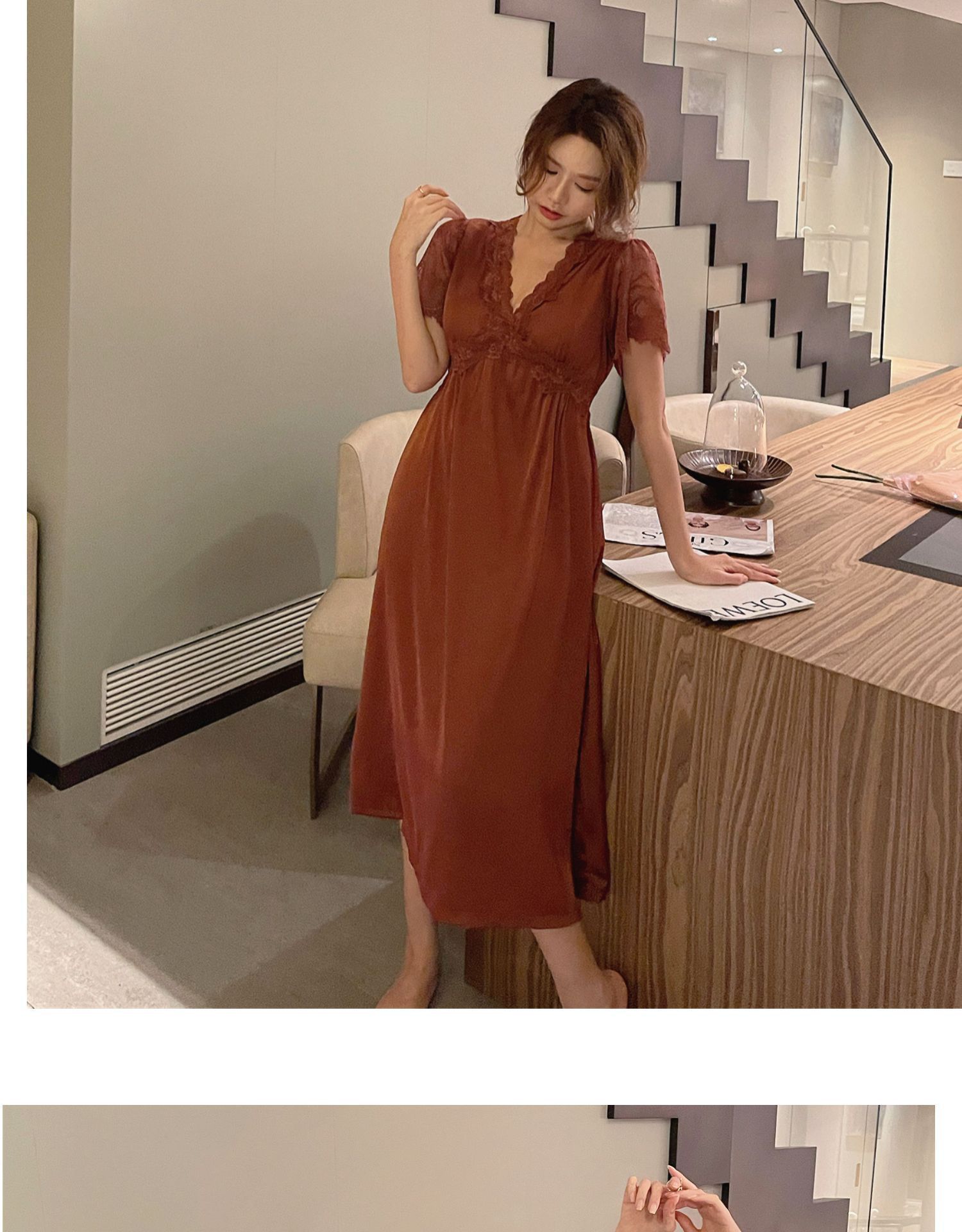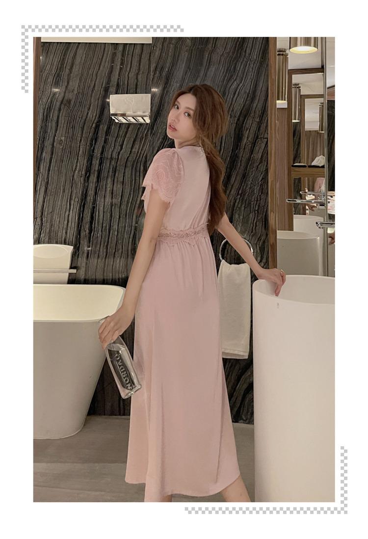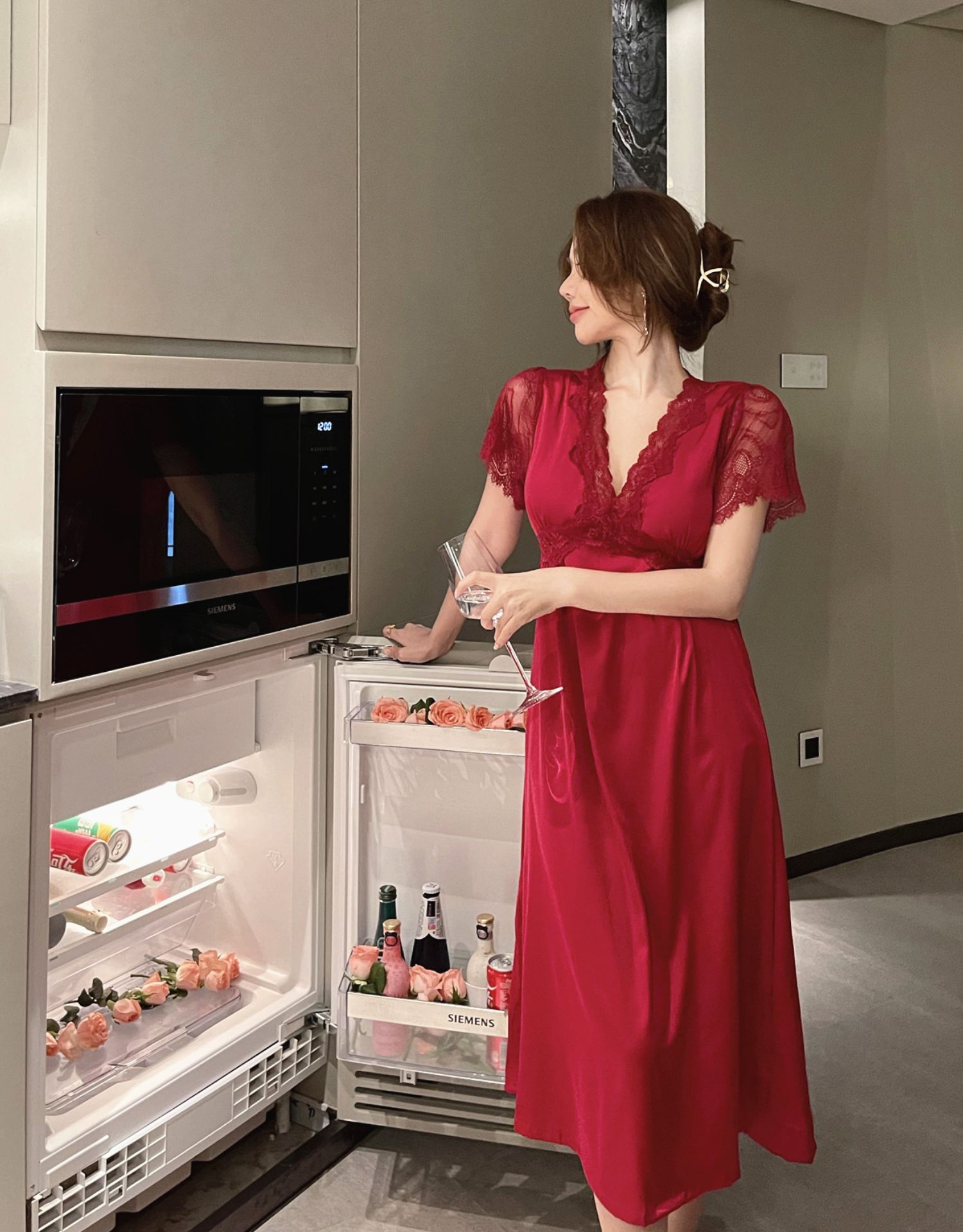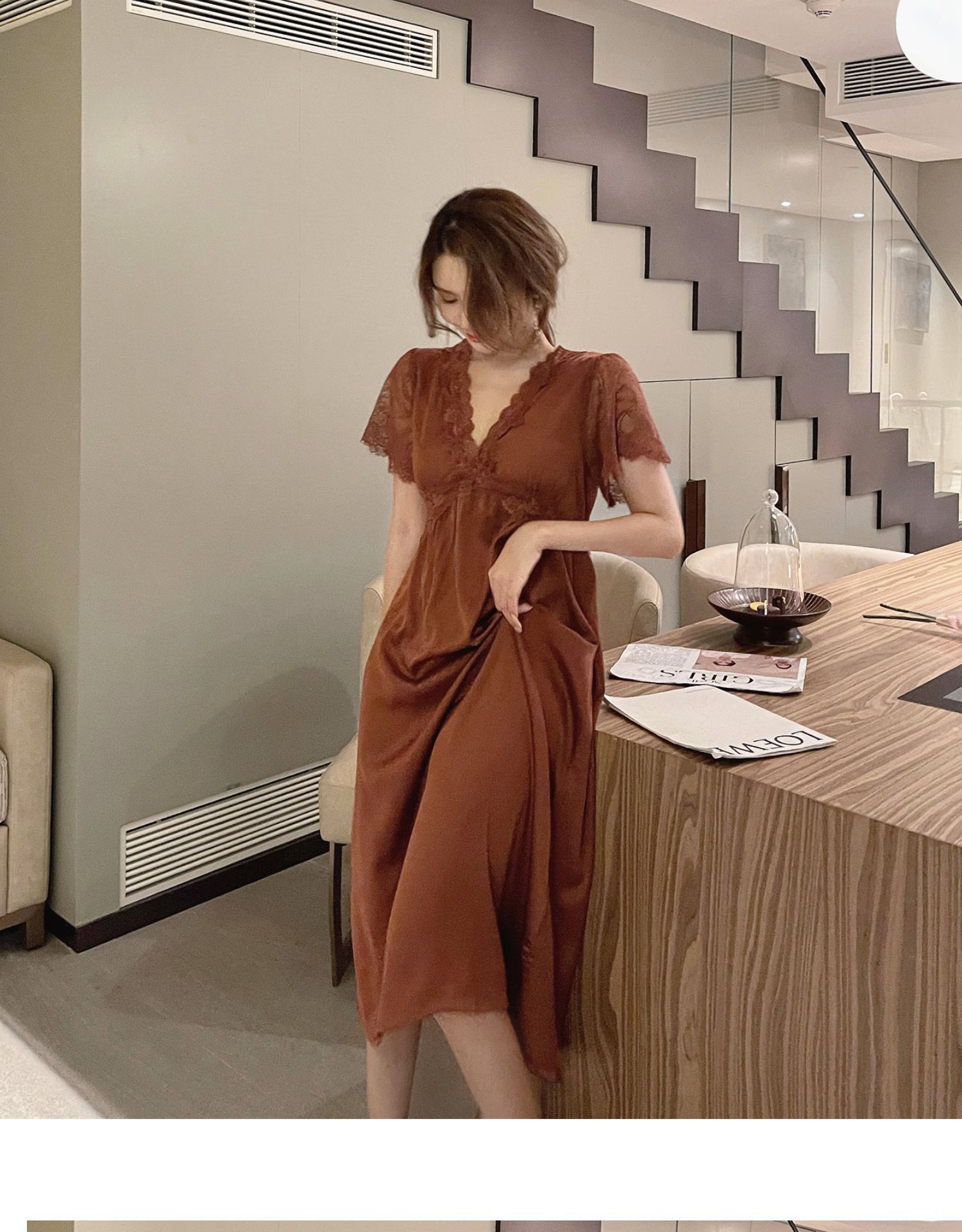 Camisón de Verano para Mujer, Pijama de Seda Hielo y Nieve, Encaje de Tentación Sexy, Estilo Lujuria Pura Falda Larga de Seda Hielo, Transmisión en Vivo con Almohadillas para el Busto