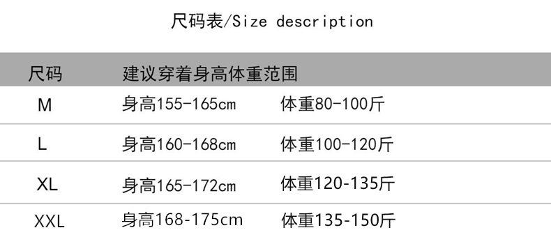 M (80— 50kg ), L (100— 60kg ), Xl (120— 67.5kg )