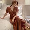 Satin ice silk long skirt—black, Satin ice silk long skirt—pink, Satin ice silk dress—caramel color, Satin ice...