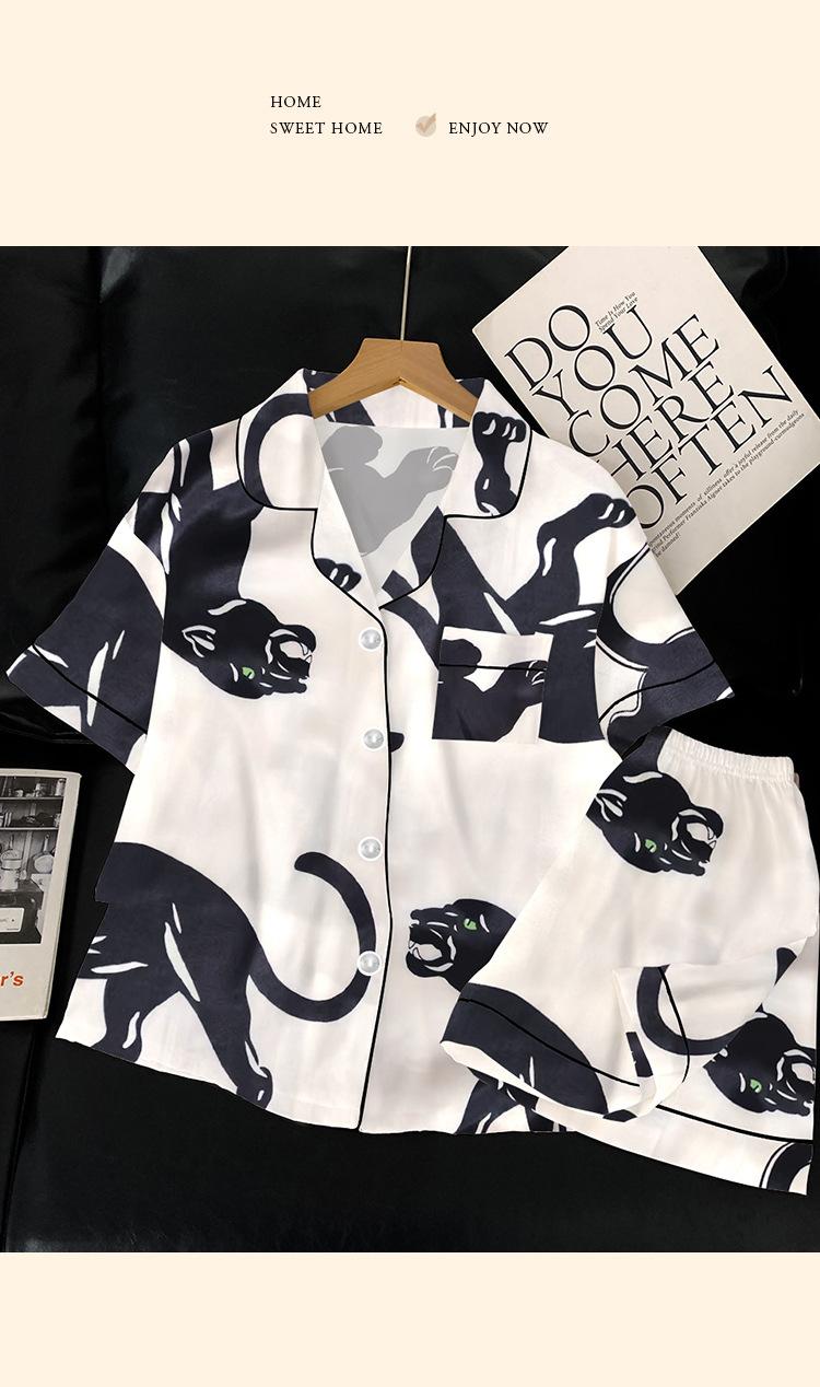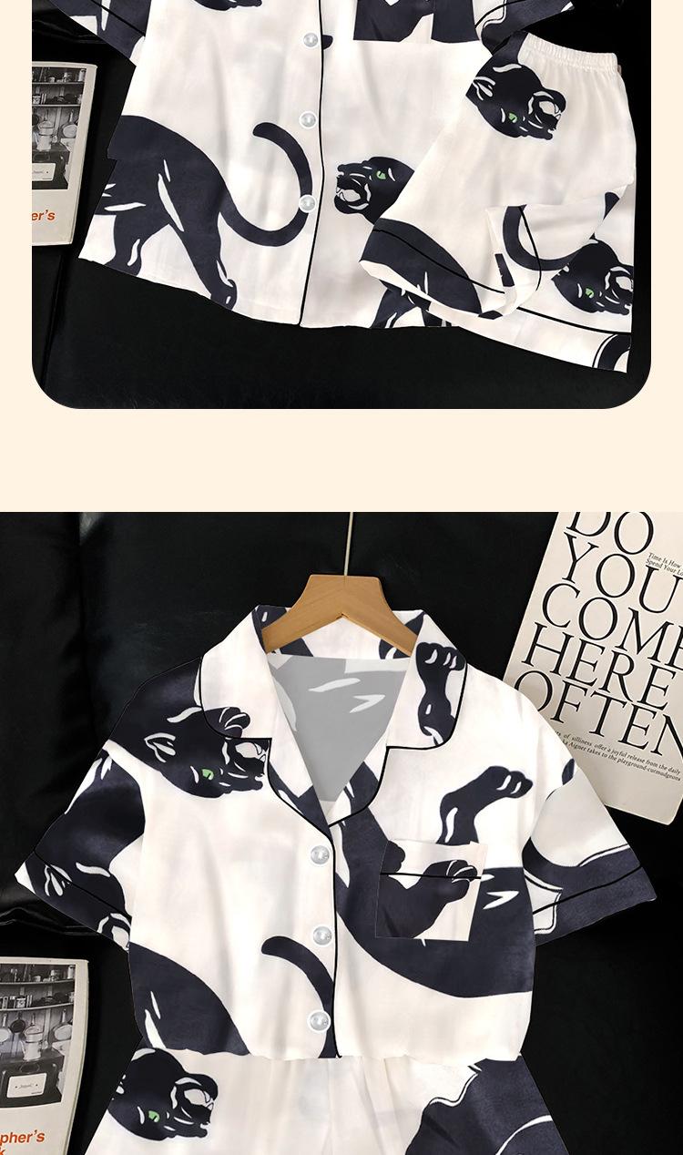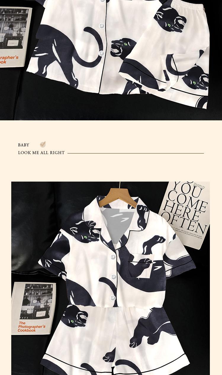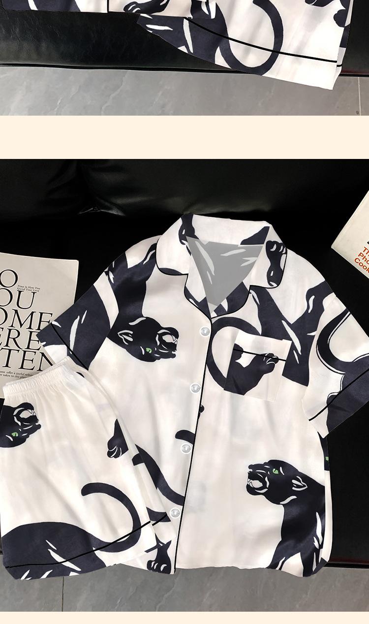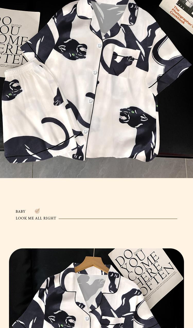 Pijamas de Moda Nuevos para Mujer Verano Manga Corta Shorts Panterita Negra de Alta Gama Casual Traje para Estar en Casa Foto Real Venta al Mayoreo