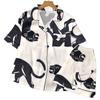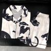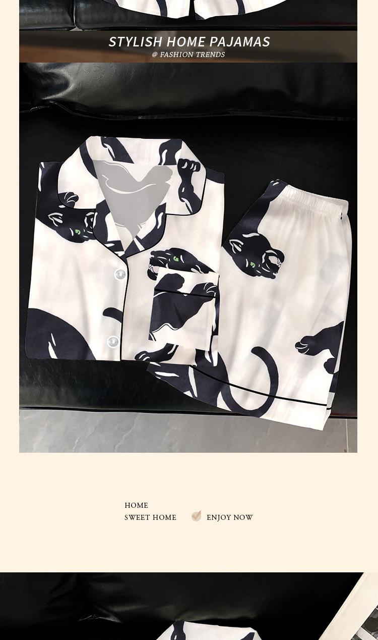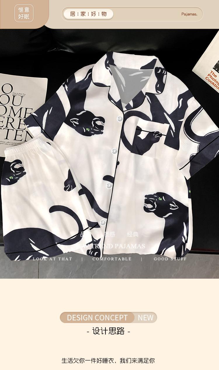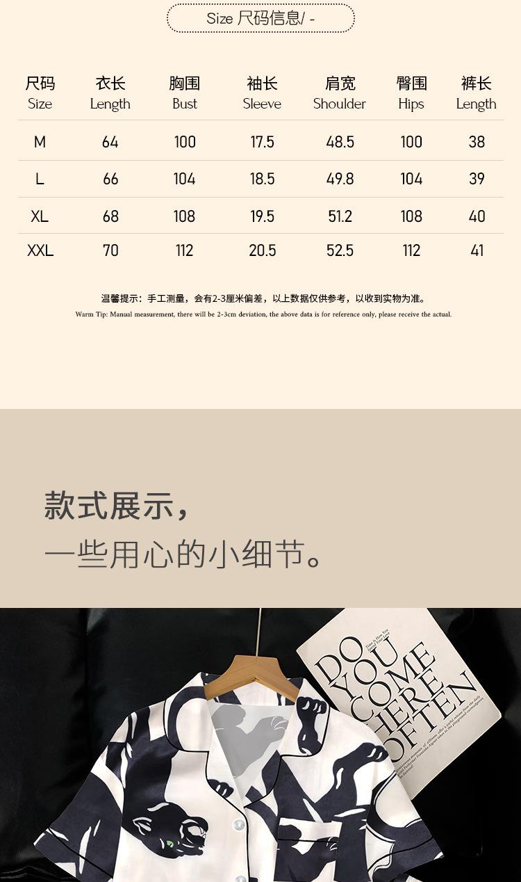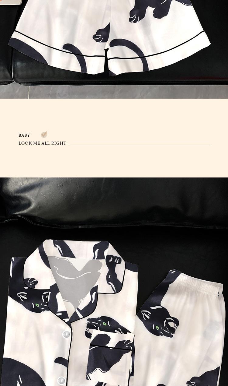 Pijamas de Moda Nuevos para Mujer Verano Manga Corta Shorts Panterita Negra de Alta Gama Casual Traje para Estar en Casa Foto Real Venta al Mayoreo