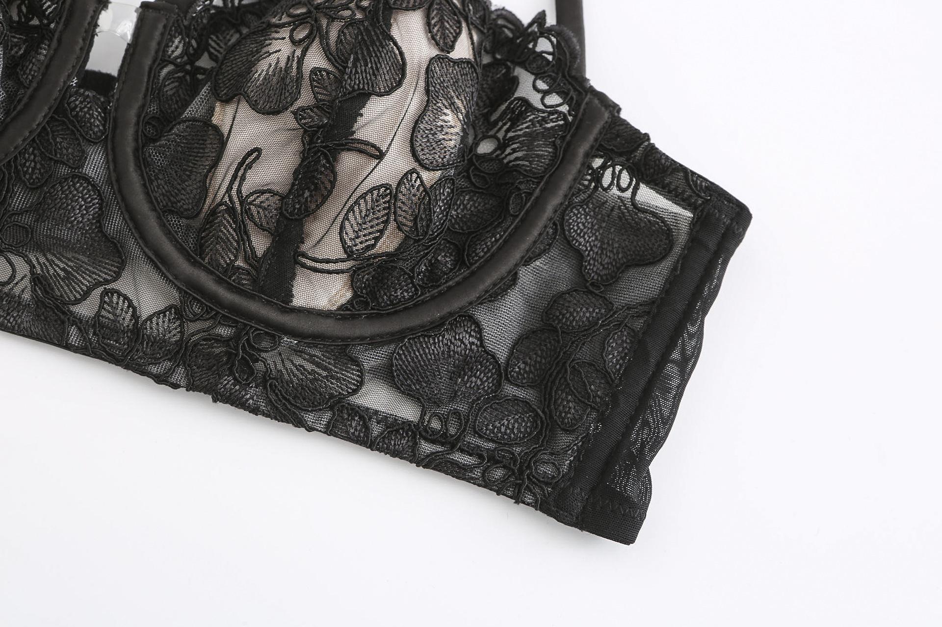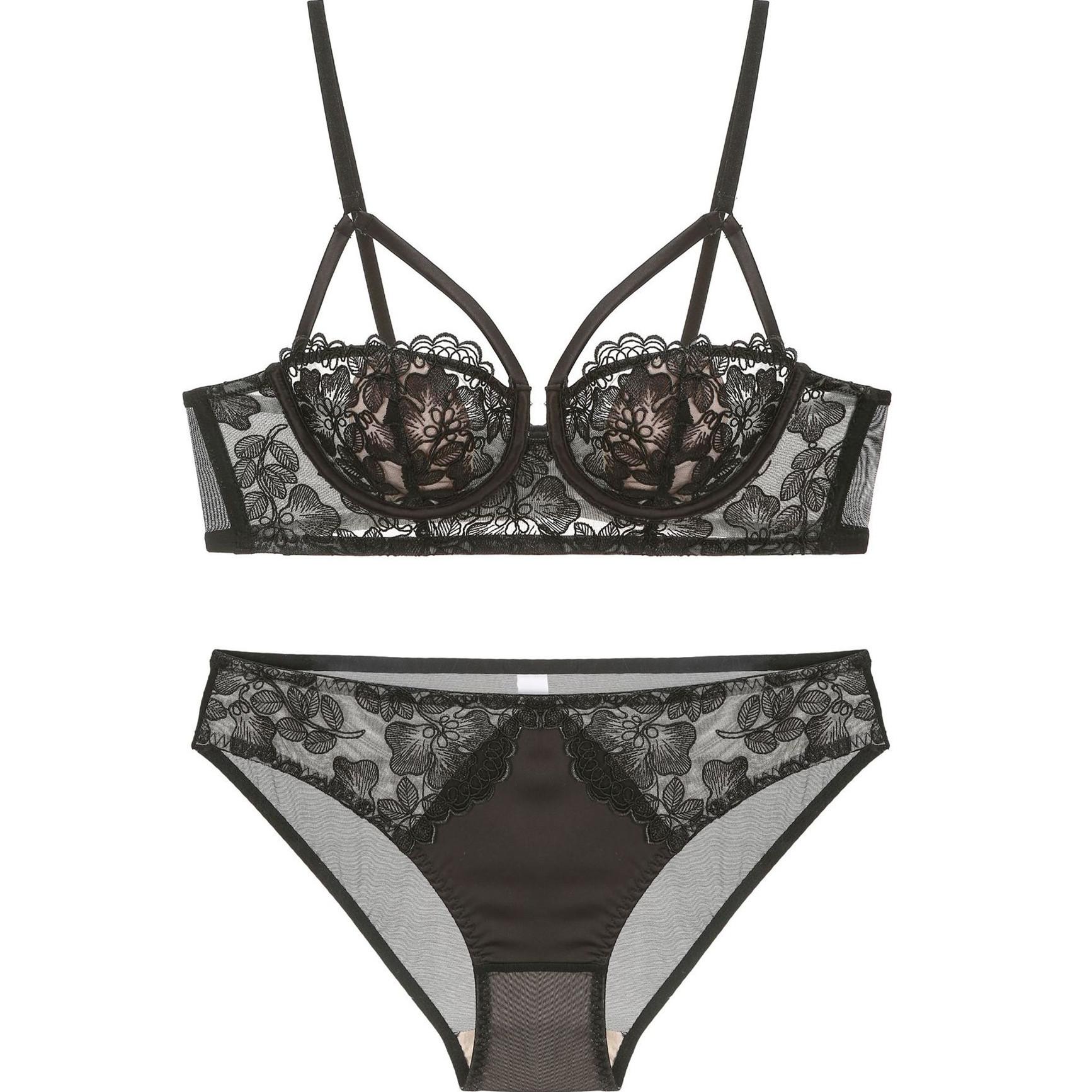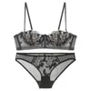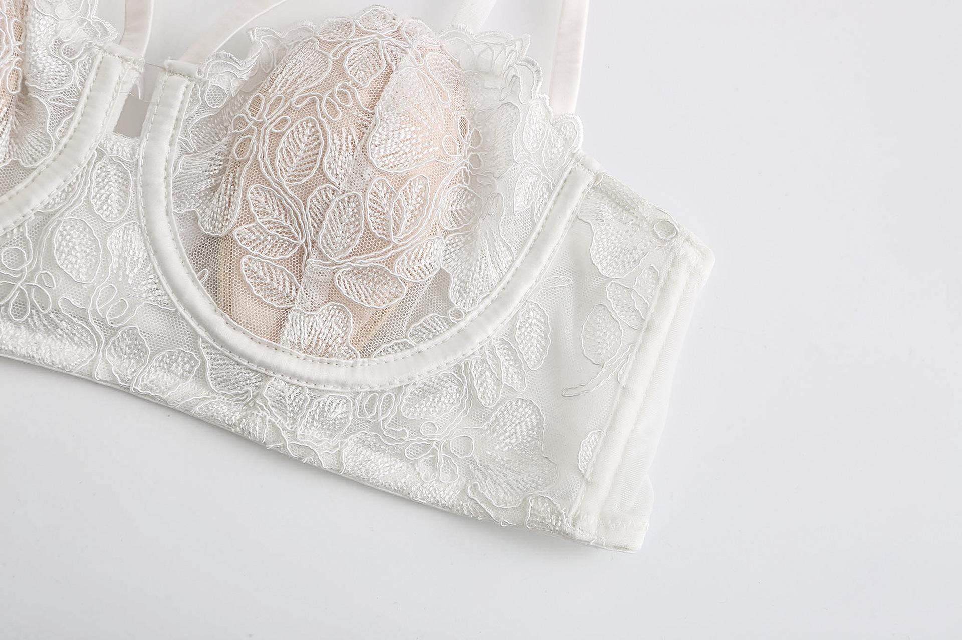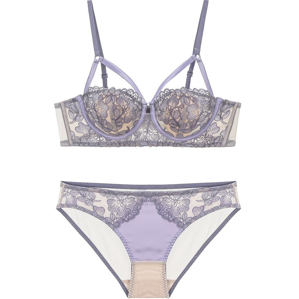 Conjunto de Brasier Estilo Francés Encaje Pesado Bordado Ropa Interior Sexy Copa Oreja de Conejo Encaje Mujer Push-up Suave Aro de Acero