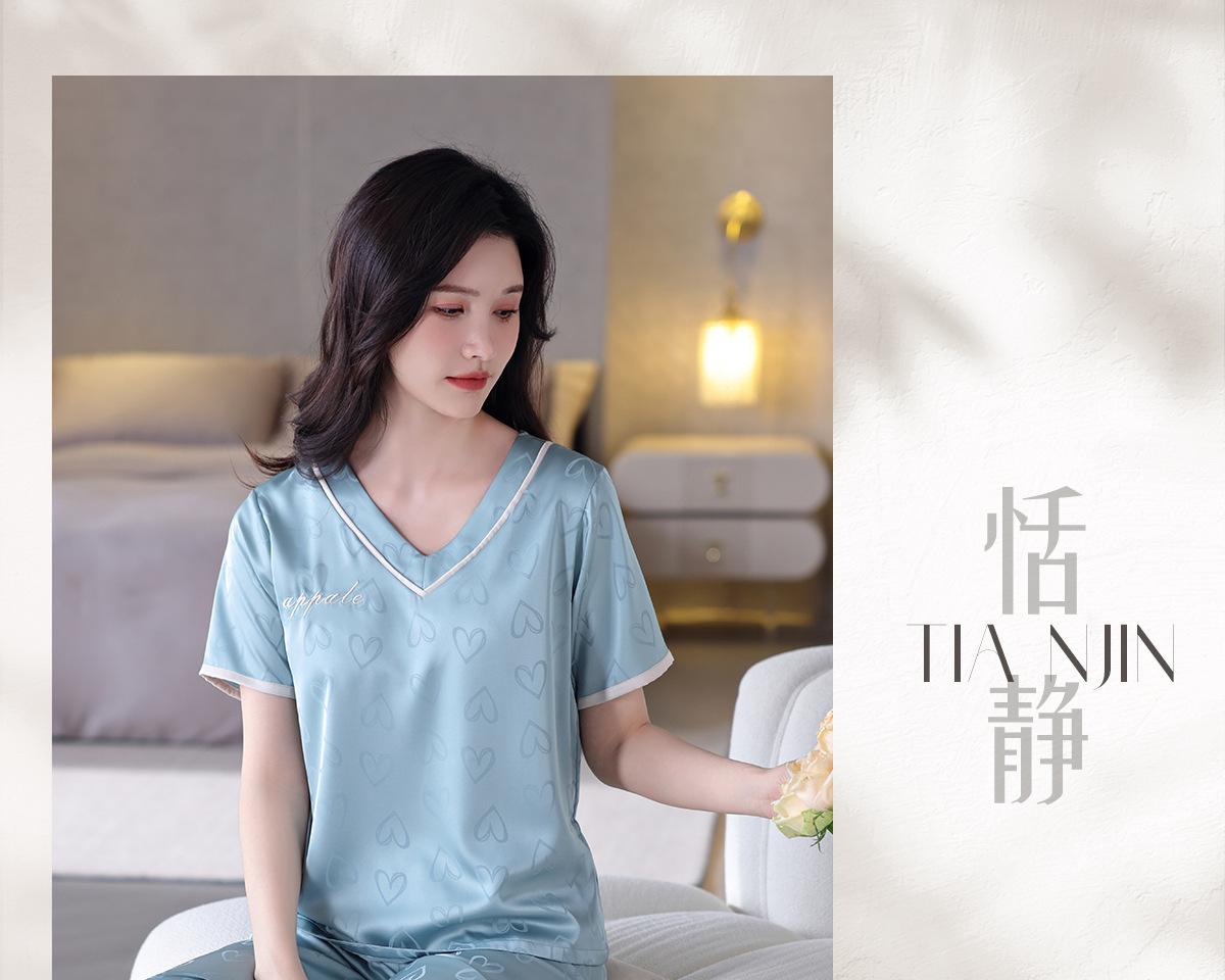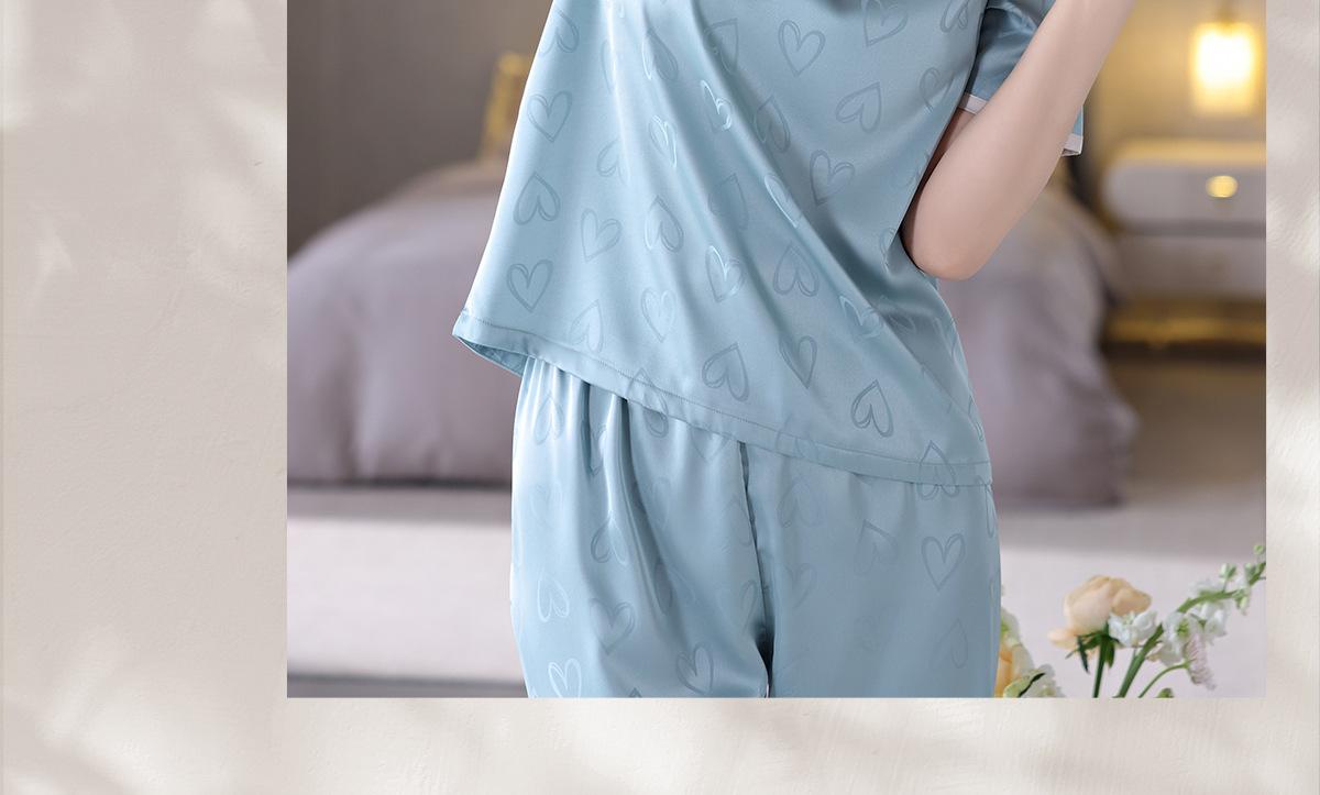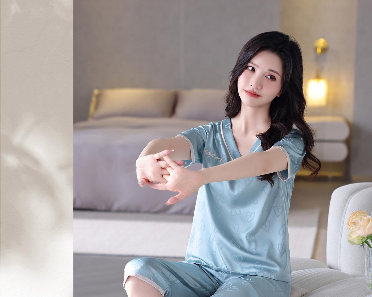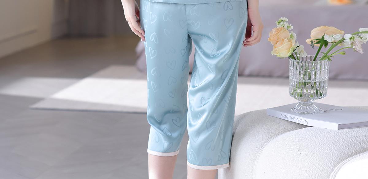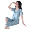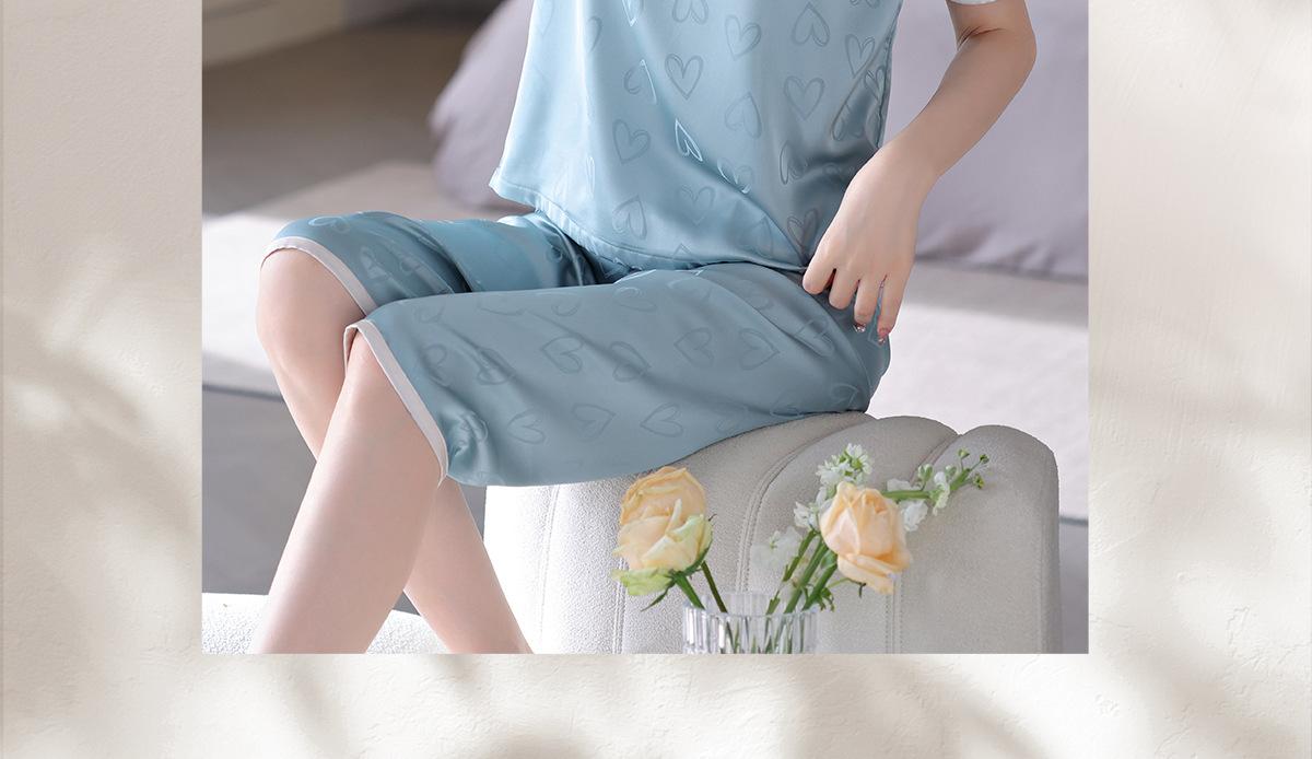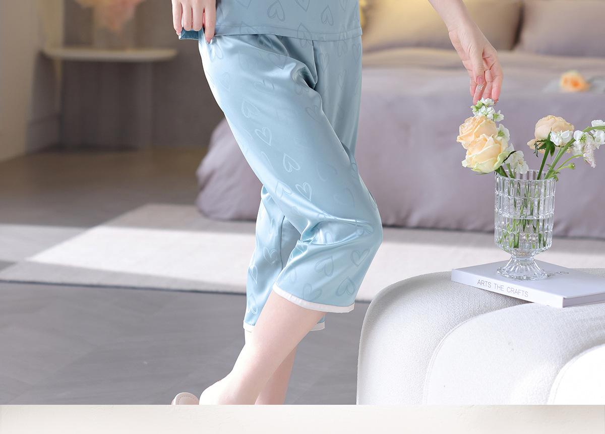 [Seda de Hielo y Nieve] Pijama de Seda de Hielo Fresco para Mujer Verano Manga Corta Pantalón Capri Jacquard Lujo Ligero Conjunto Ropa de Casa Talla Grande
