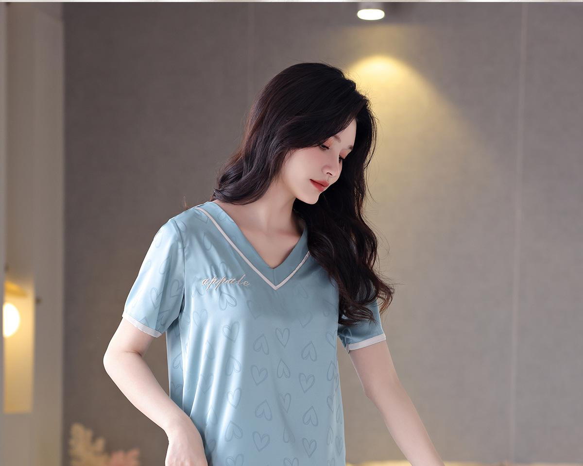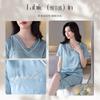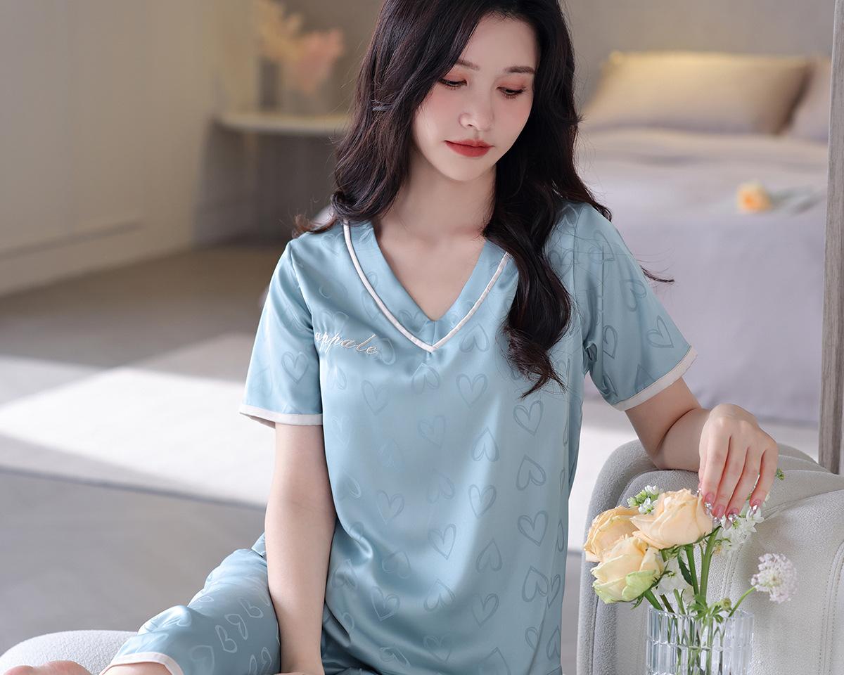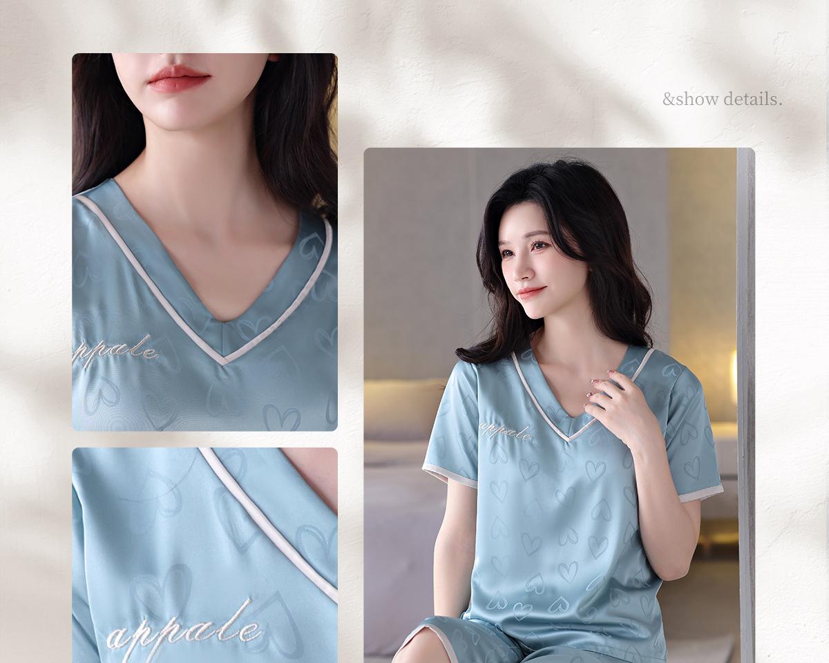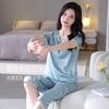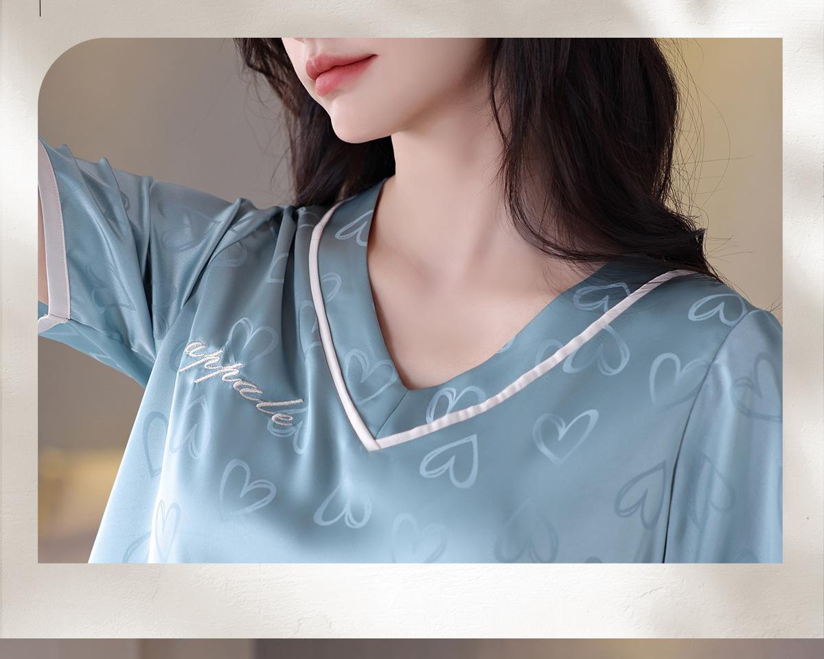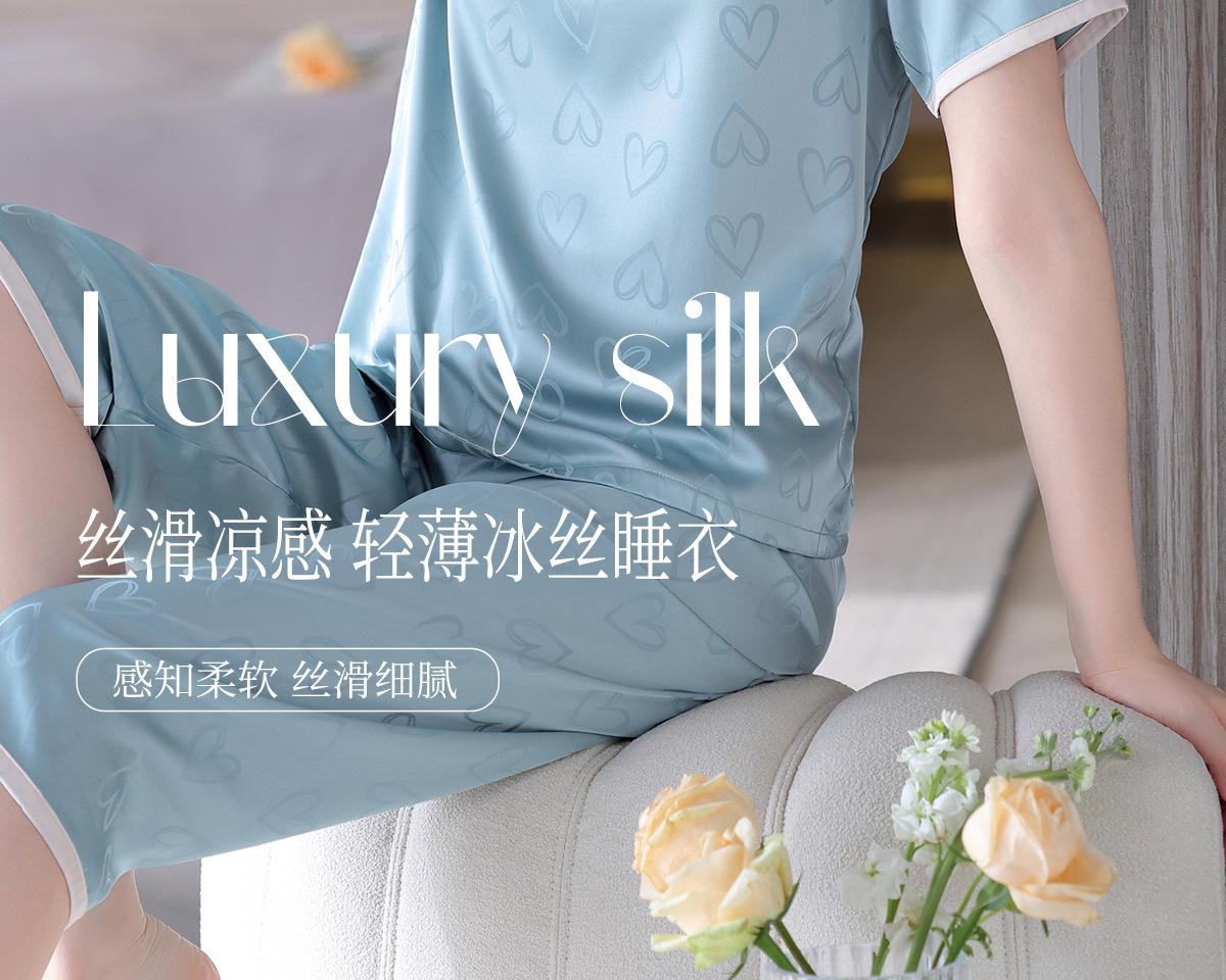 [Seda de Hielo y Nieve] Pijama de Seda de Hielo Fresco para Mujer Verano Manga Corta Pantalón Capri Jacquard Lujo Ligero Conjunto Ropa de Casa Talla Grande