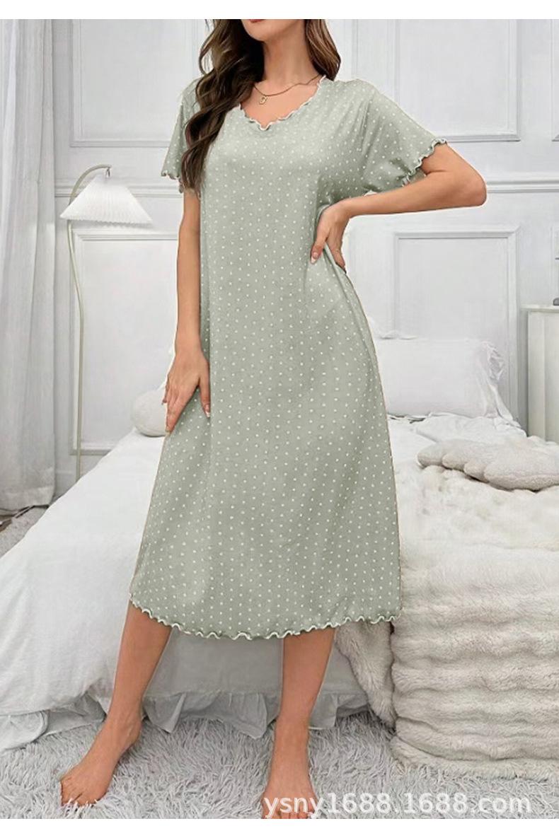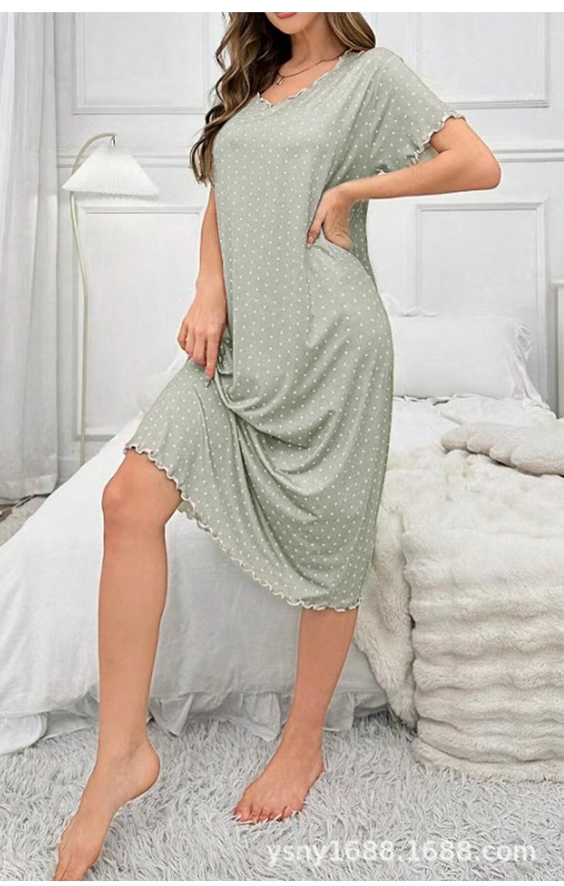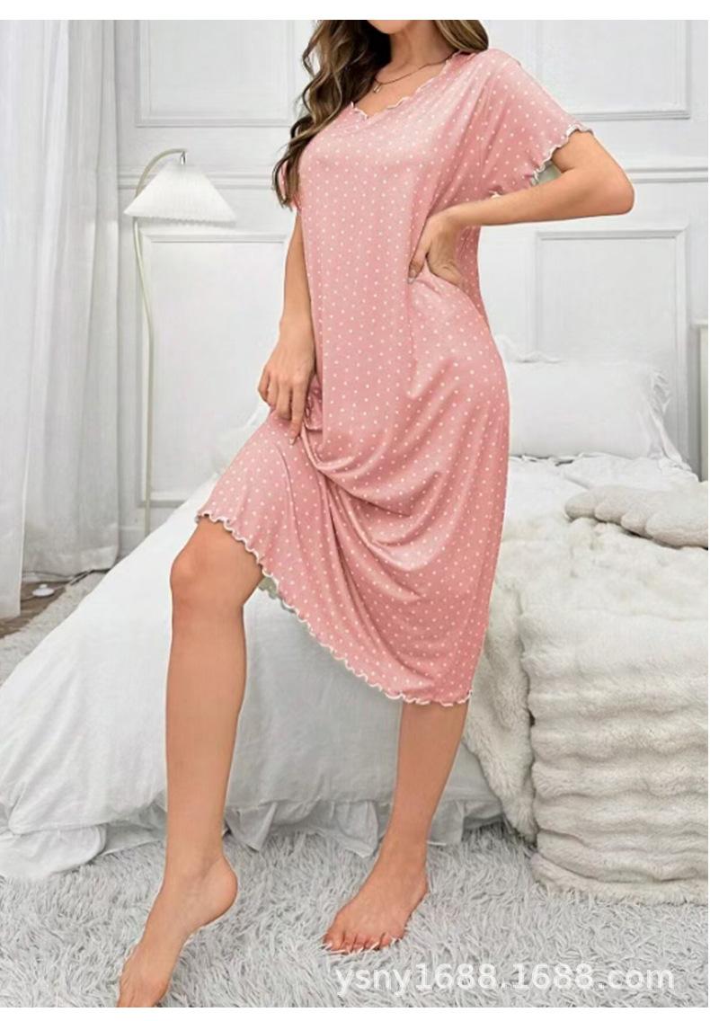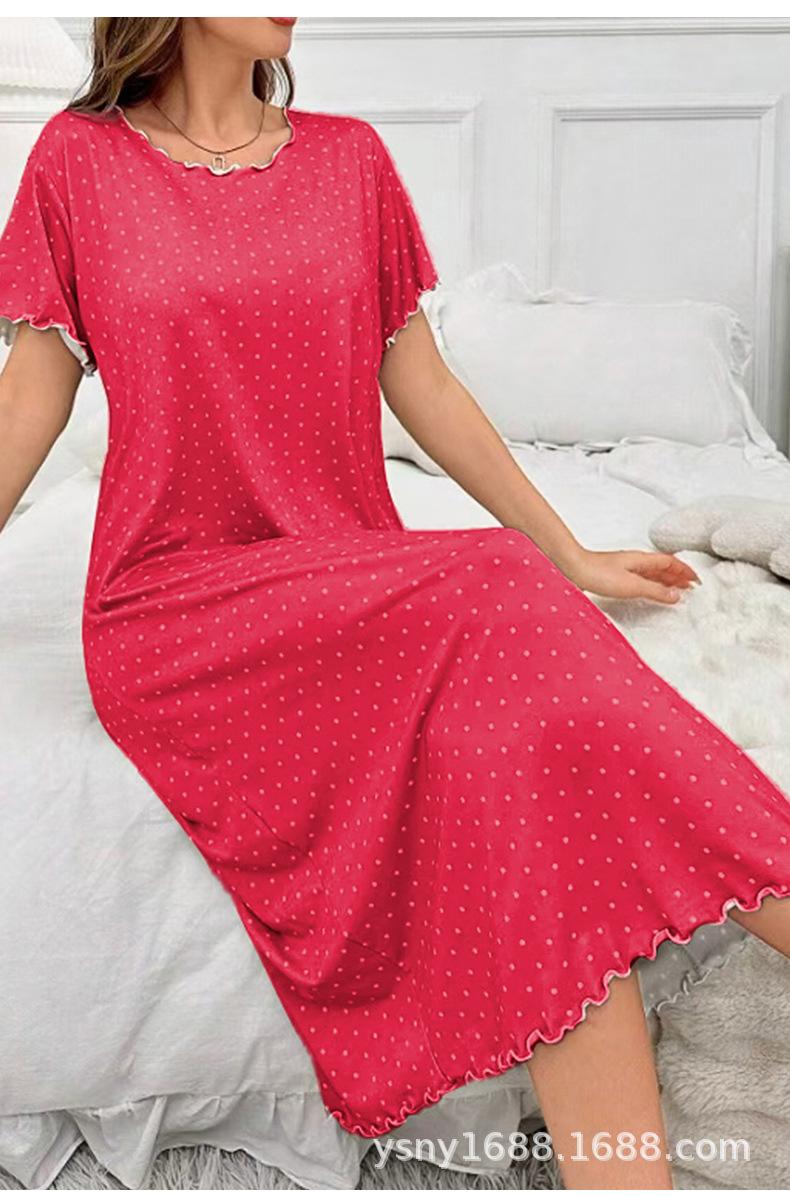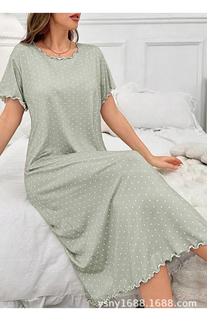 Europeo y Americano Transfronterizo Amazon Nuevo Lunares Manga Corta Camisón para Casa Vestido con Dobladillo de Oreja Cómodo y Elegante Venta al por Mayor