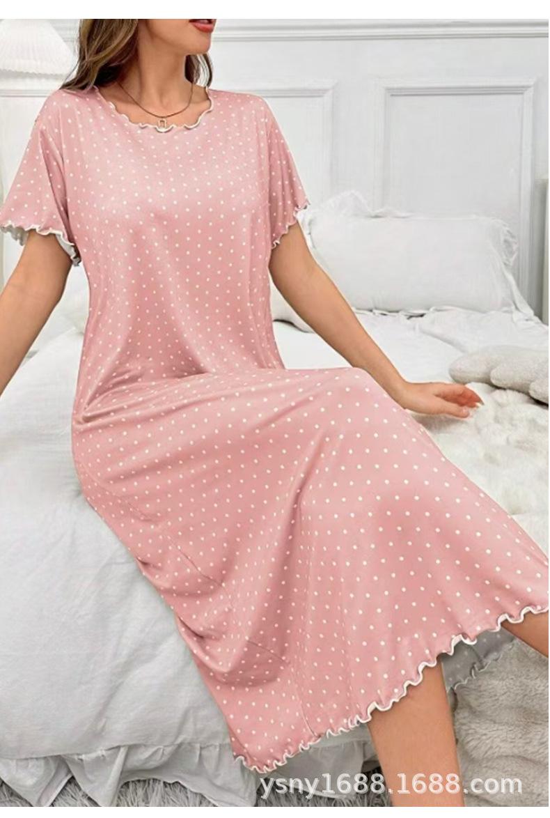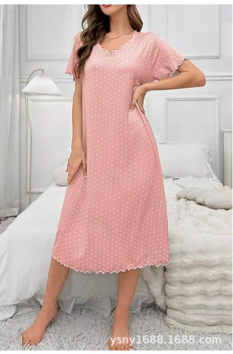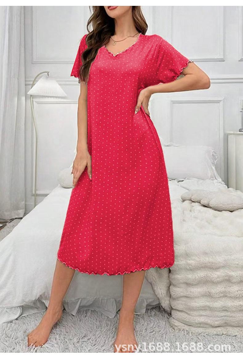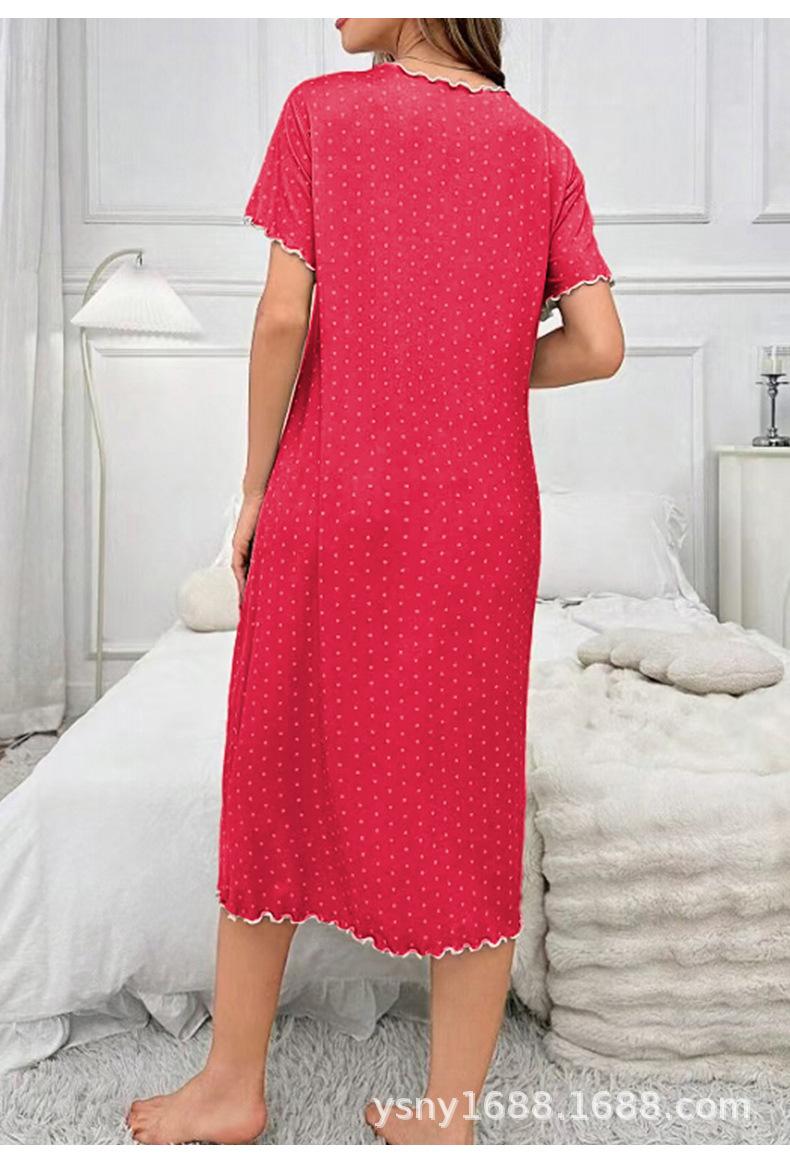 Europeo y Americano Transfronterizo Amazon Nuevo Lunares Manga Corta Camisón para Casa Vestido con Dobladillo de Oreja Cómodo y Elegante Venta al por Mayor
