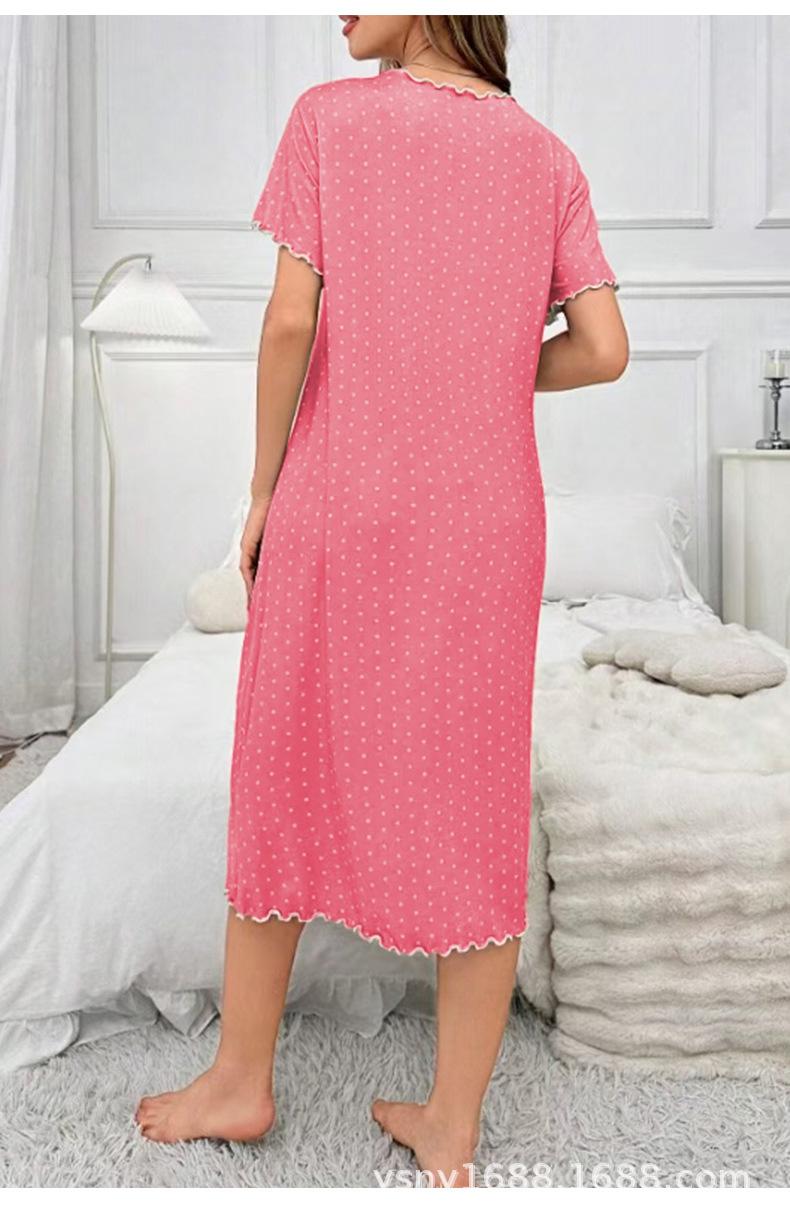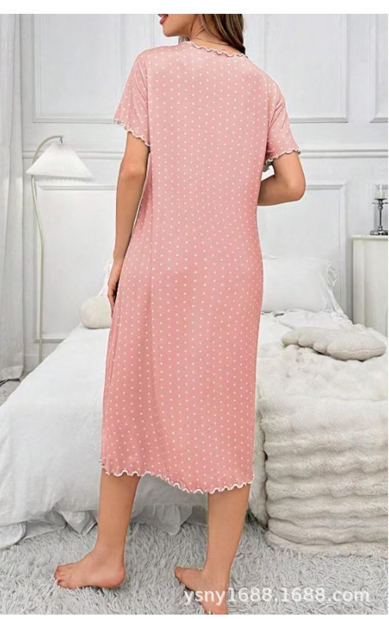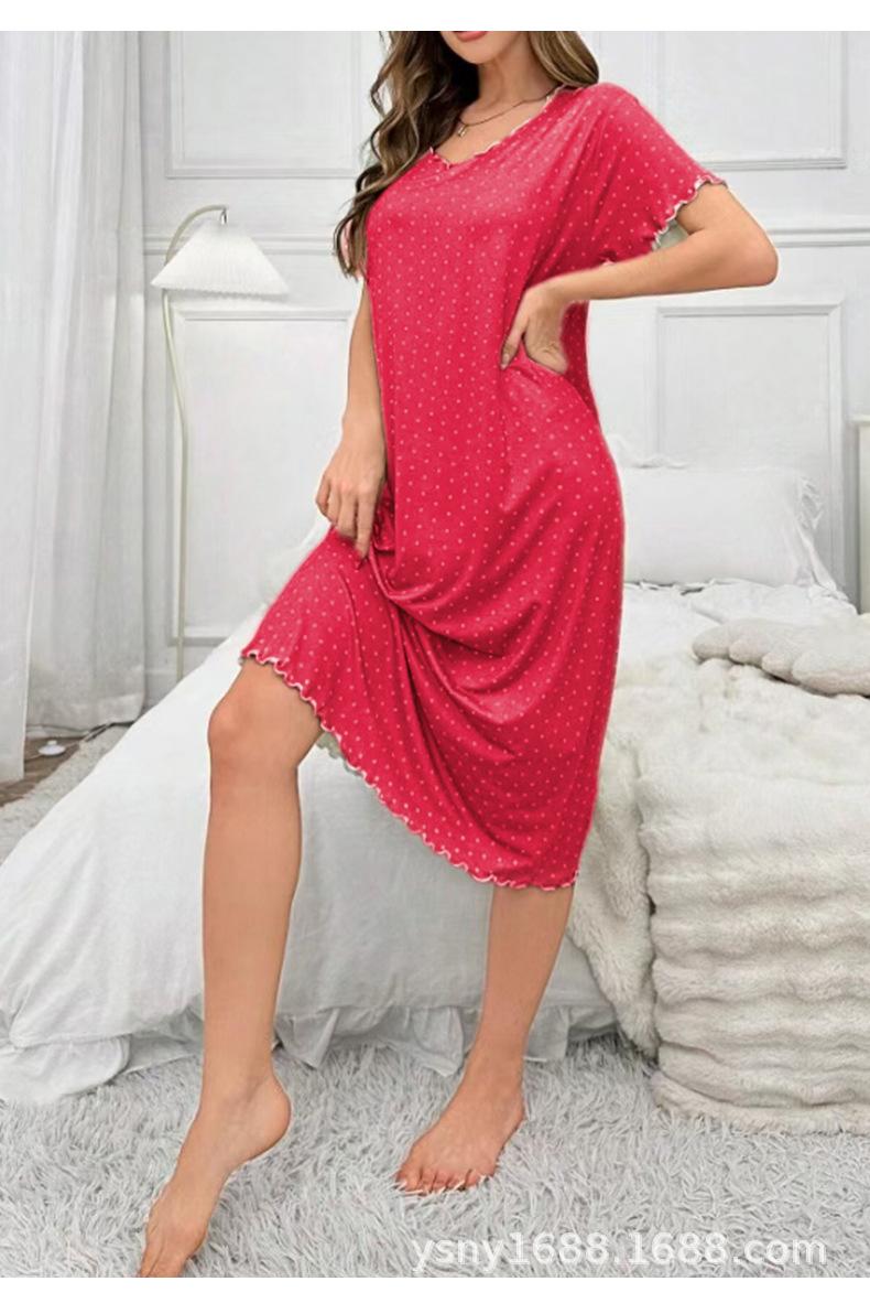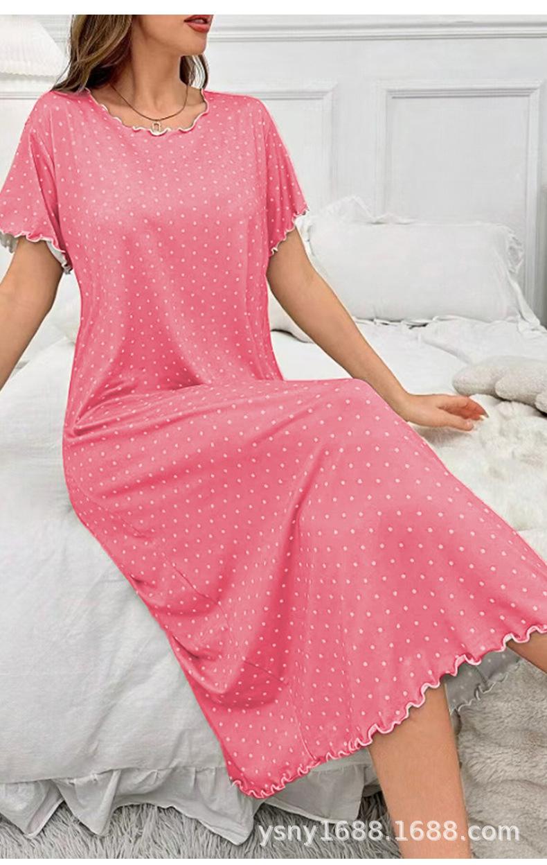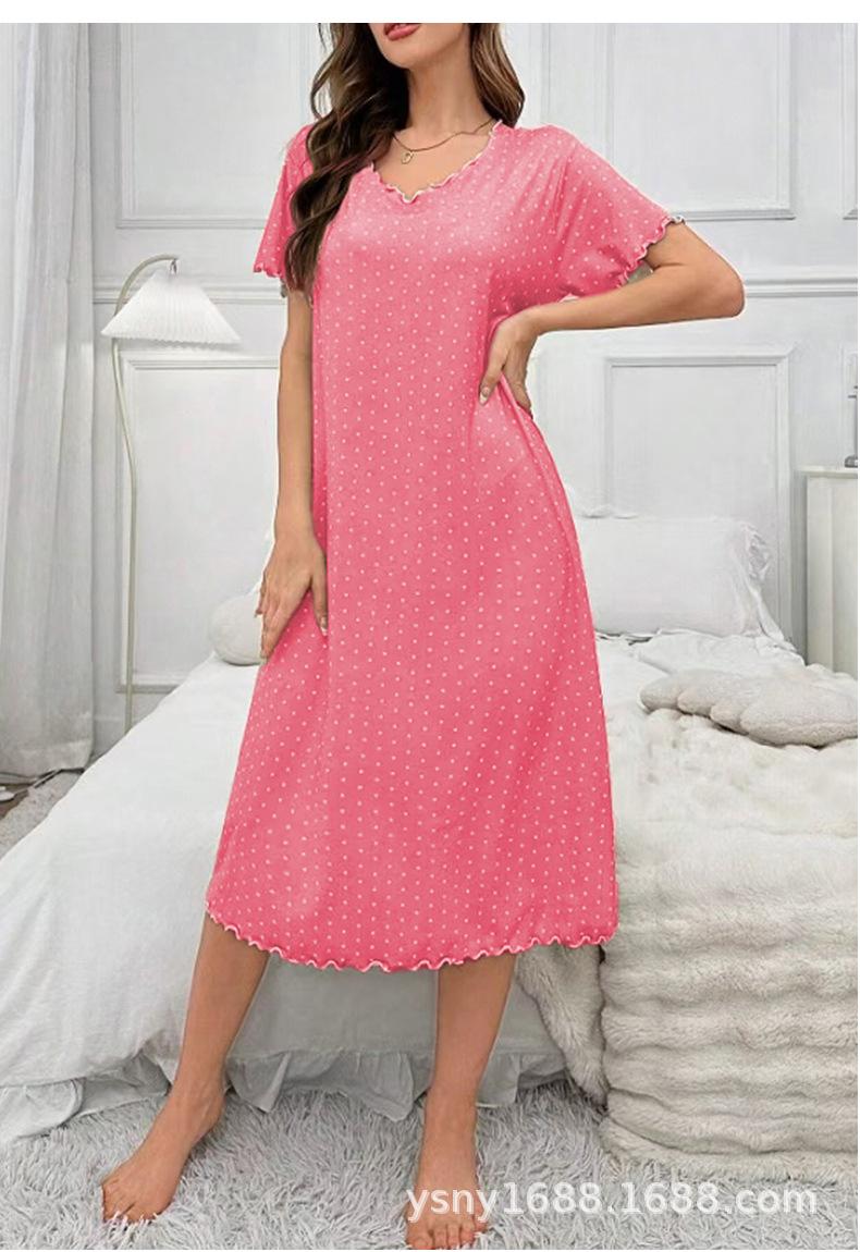 Europeo y Americano Transfronterizo Amazon Nuevo Lunares Manga Corta Camisón para Casa Vestido con Dobladillo de Oreja Cómodo y Elegante Venta al por Mayor