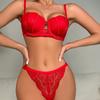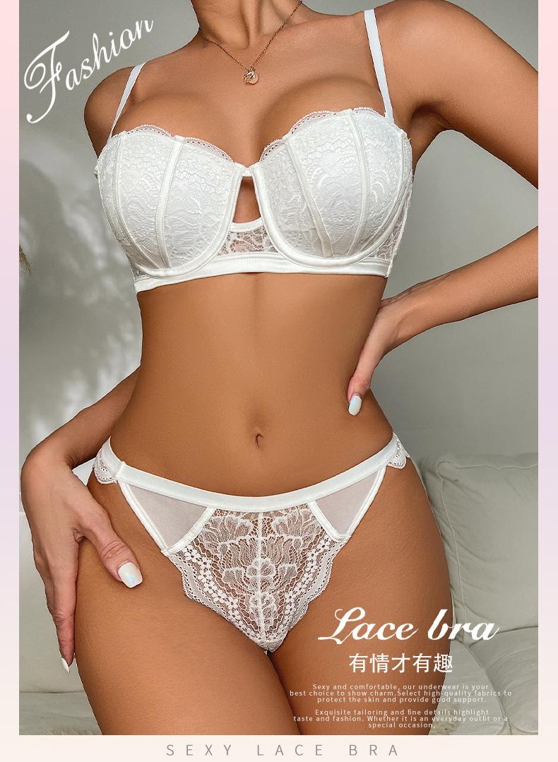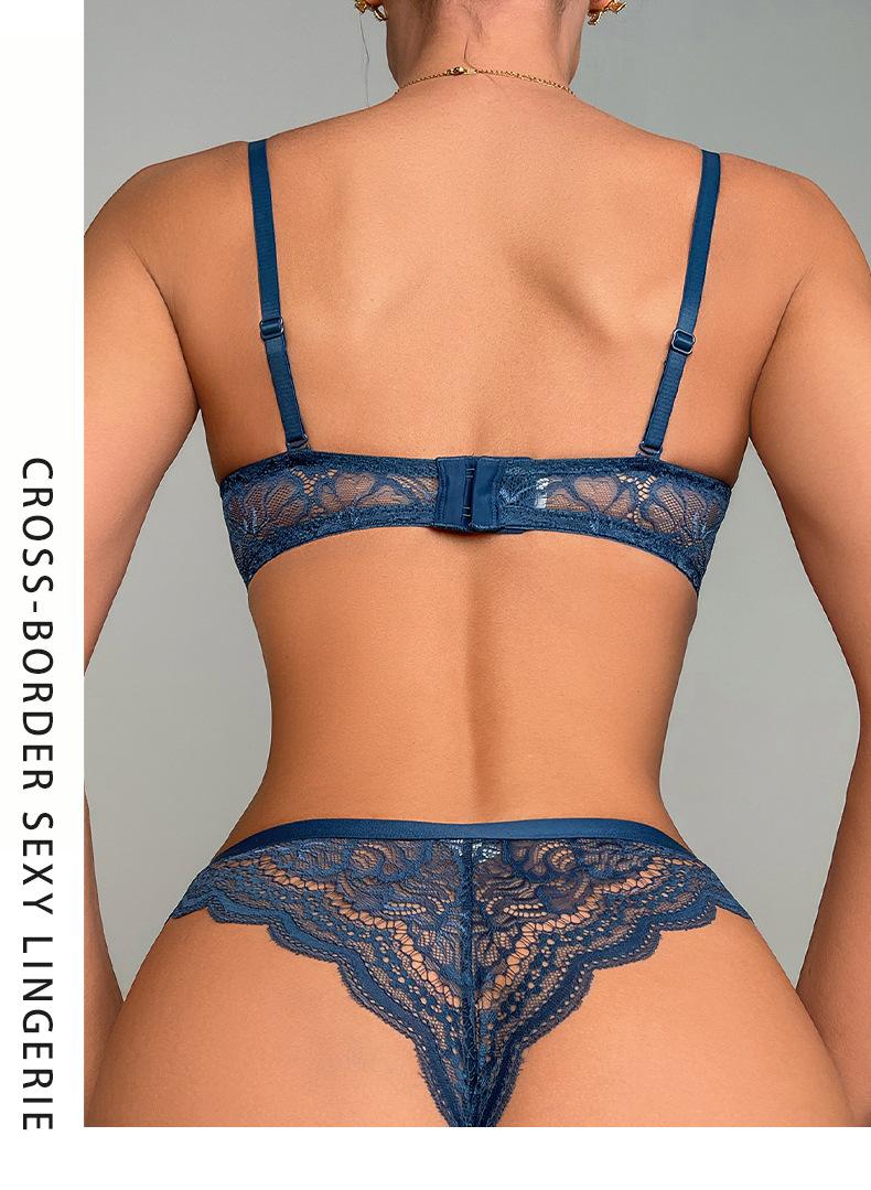 Ropa Interior Sexy Europea y Americana Transfronteriza Sujetador de Encaje Bordado Hueco de Media Copa Set de Ropa Interior Push-Up para Senos Pequeños