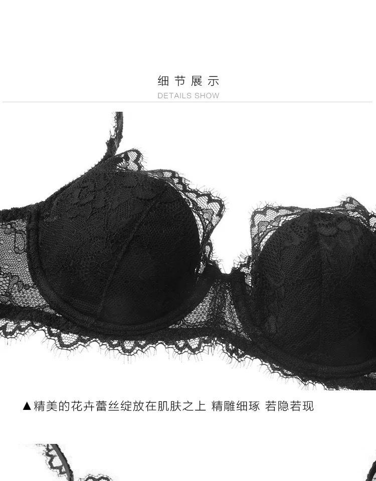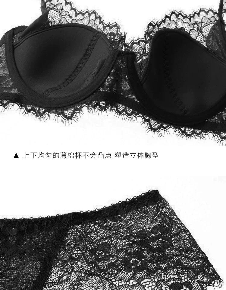 Lencería Francesa Personalizada, Lencería Femenina Delgada de Algodón y Encaje Transparente, Pechos Grandes, Antiflacidez, Conjunto de Brasier de Talla Grande
