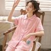 Pijama de rayas Sweet Dopamine para mujer de verano de algodón gasa de manga corta y pantalones Ropa para el hogar traje Algodón fino
