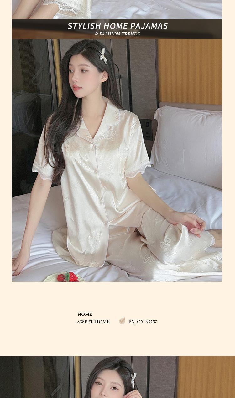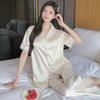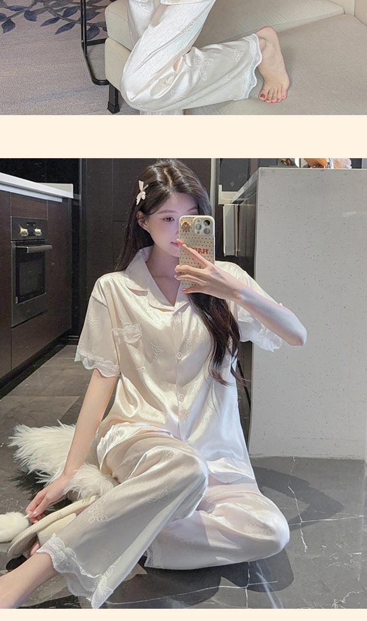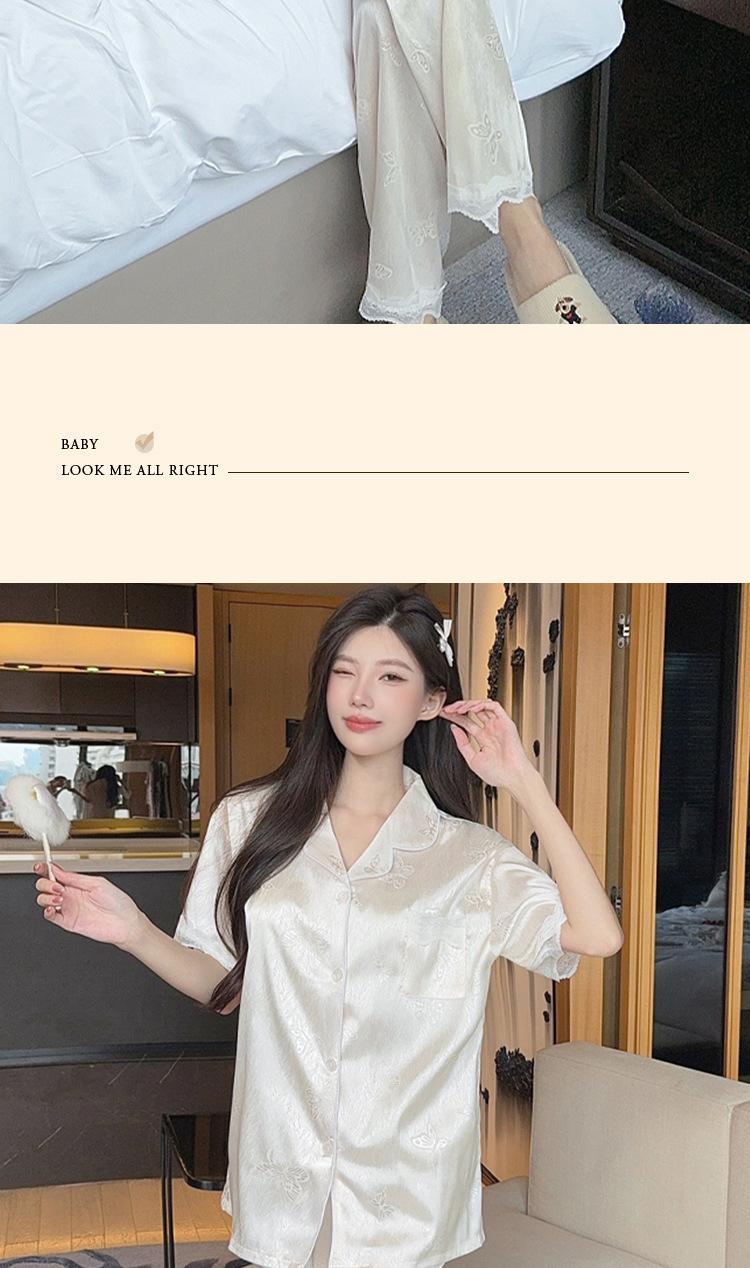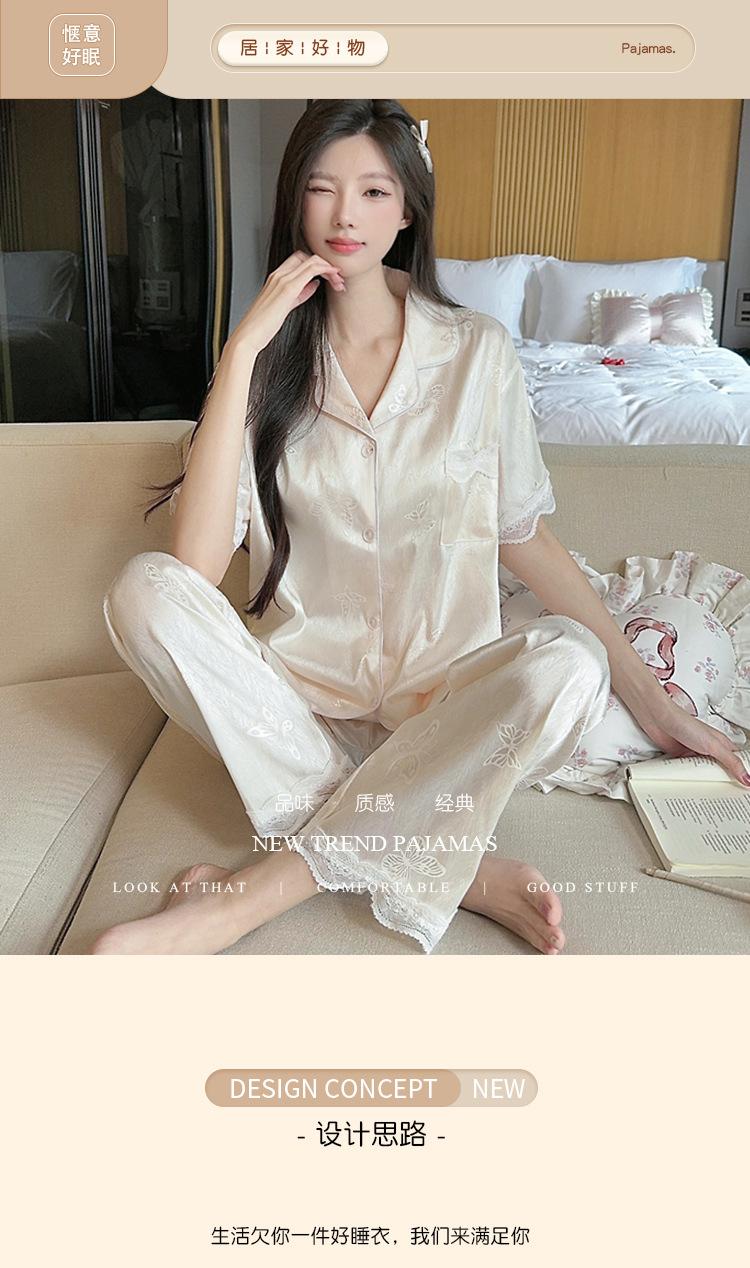 Pijama Fino de Seda de Hielo de Verano para Mujer, Traje de Manga Corta, Lindo Estilo Chanel de Mariposas, Ropa para el Hogar de Seda, Venta al por Mayor