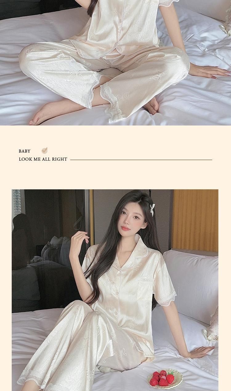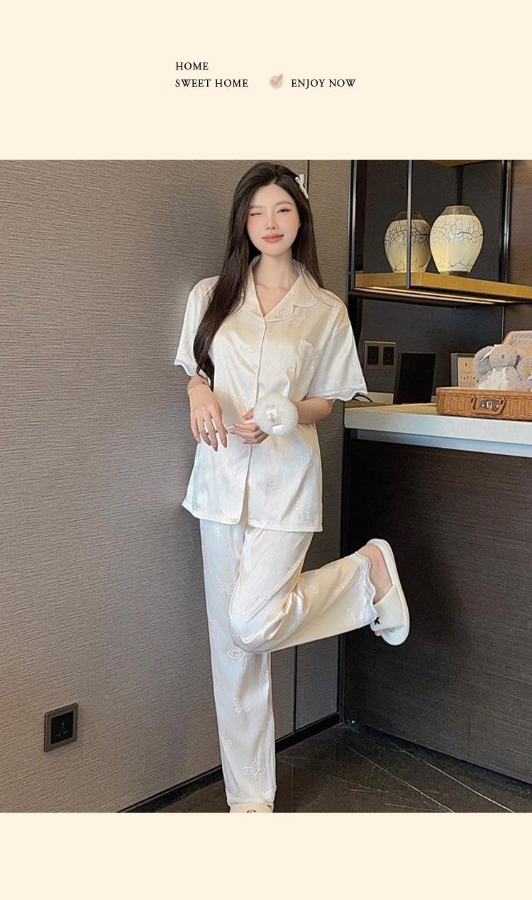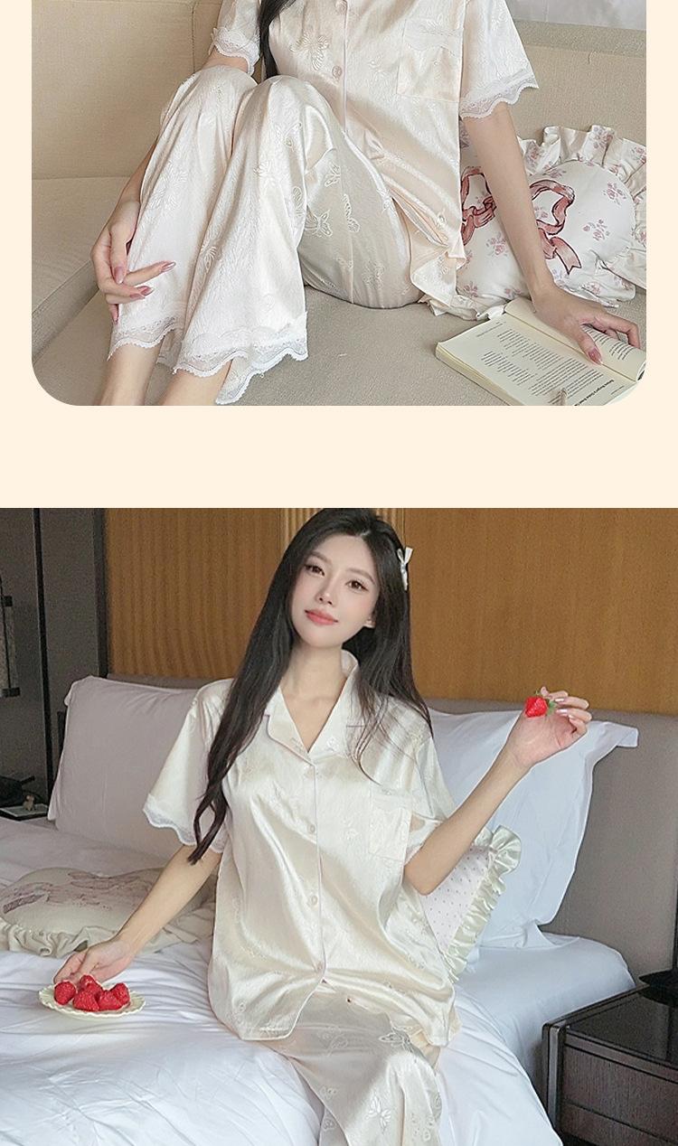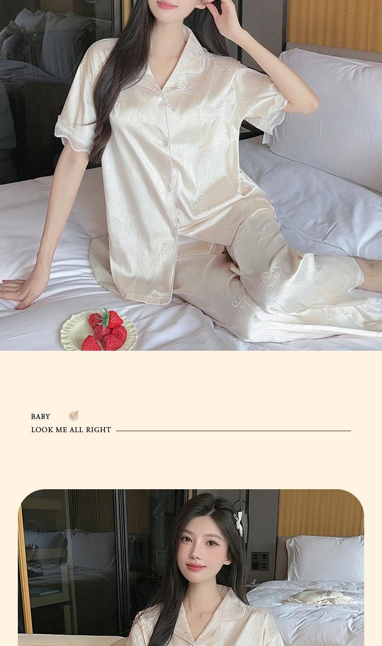 Pijama Fino de Seda de Hielo de Verano para Mujer, Traje de Manga Corta, Lindo Estilo Chanel de Mariposas, Ropa para el Hogar de Seda, Venta al por Mayor
