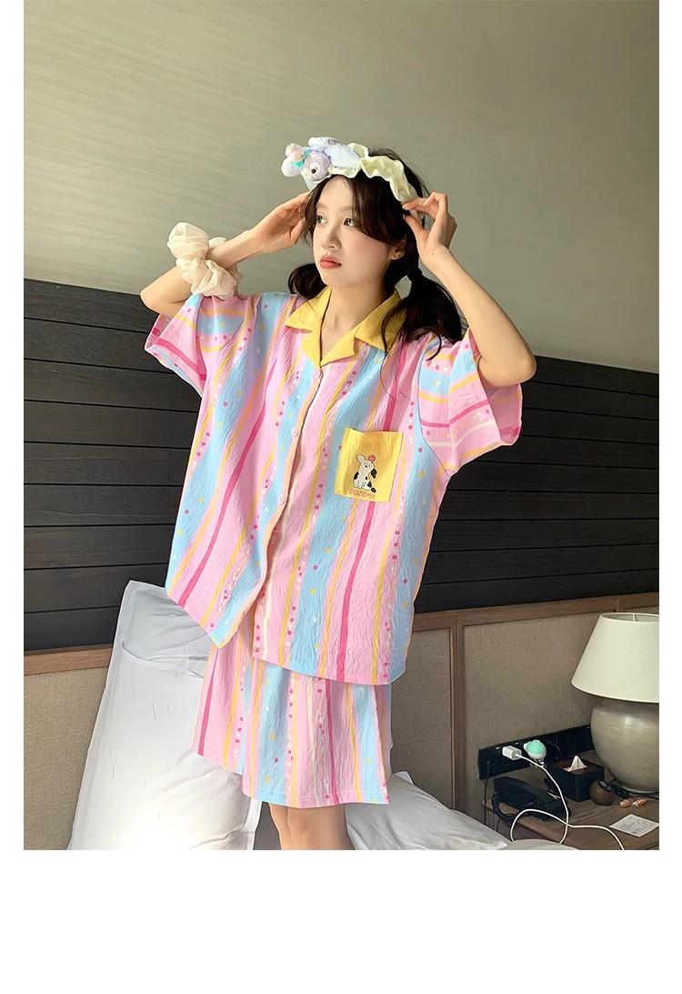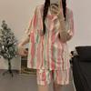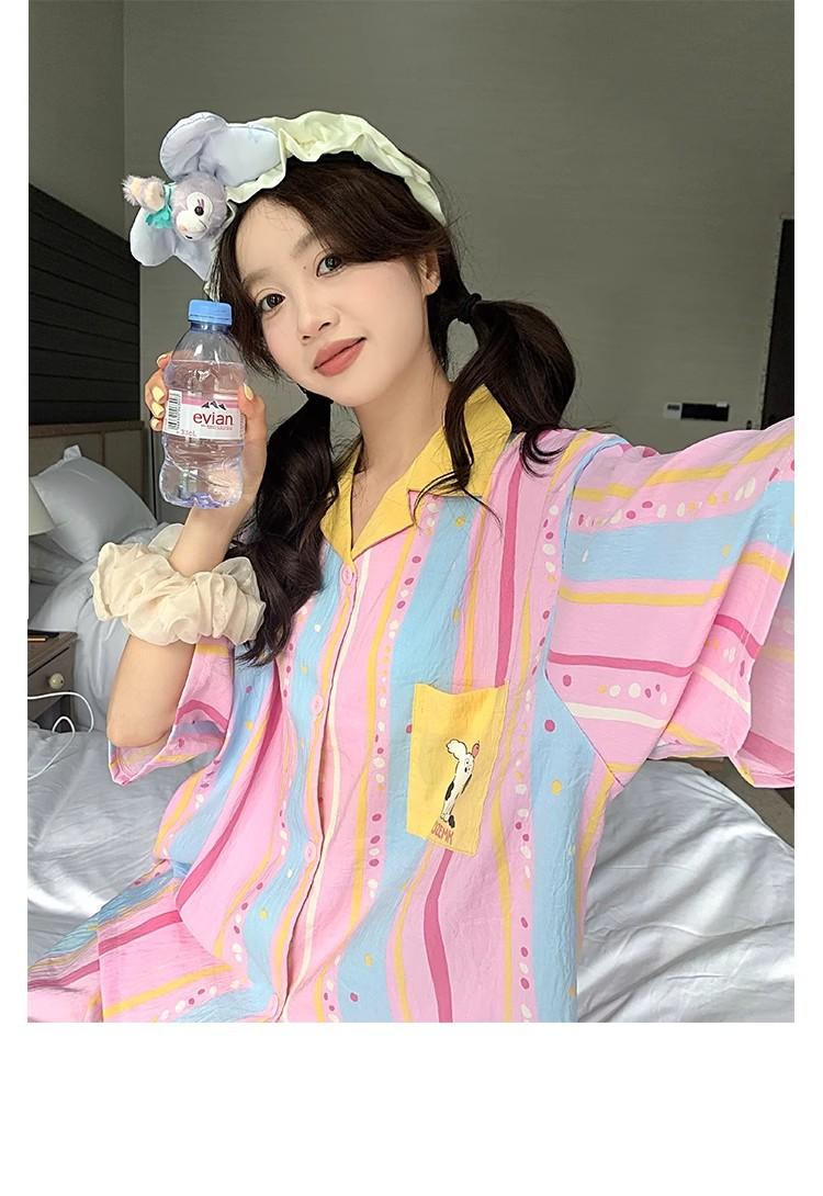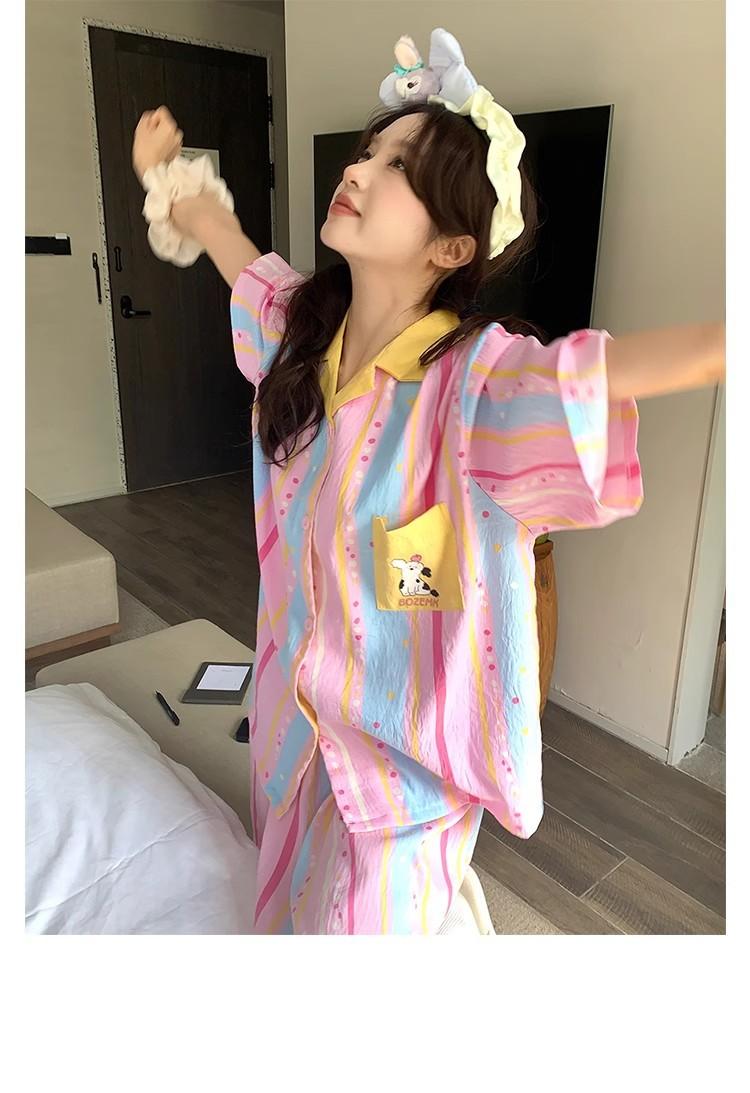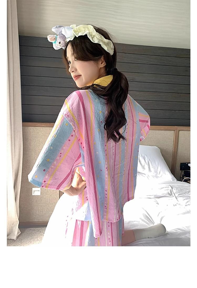 Pijama de rayas de color contrastante de dopamina para mujer, verano, delgada, de manga corta, algodón nube, ropa para el hogar, linda ropa exterior, venta al por mayor transfronteriza