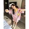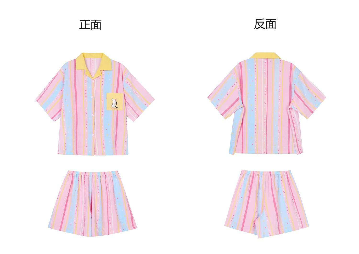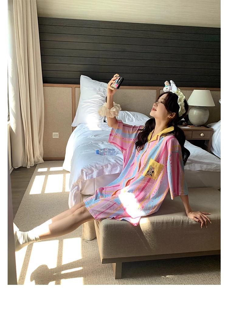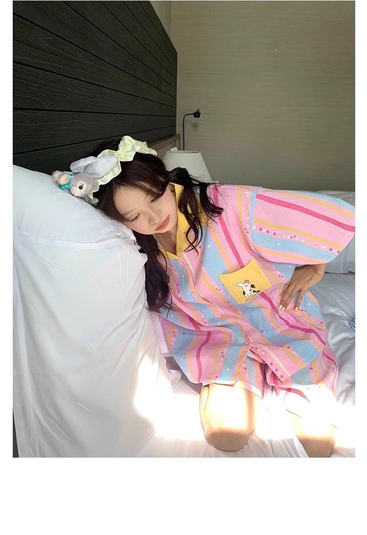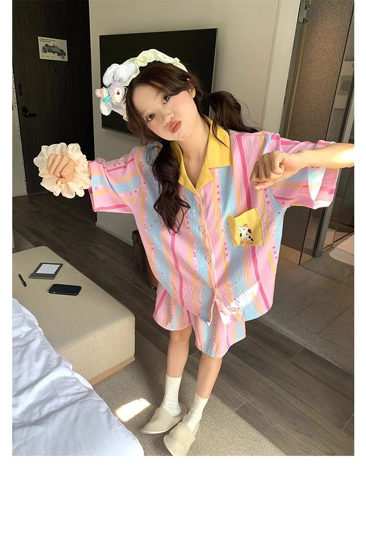 Pijama de rayas de color contrastante de dopamina para mujer, verano, delgada, de manga corta, algodón nube, ropa para el hogar, linda ropa exterior, venta al por mayor transfronteriza
