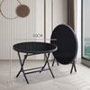 Black low round table 80x80x60cm tempered glass surface