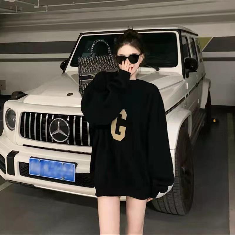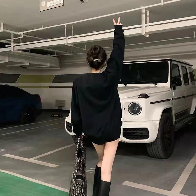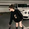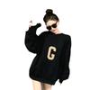 Sudadera negra holgada y versátil estilo coreano con letras de manga larga para mujer 2025 Primavera y Otoño Nuevo estilo Estilo perezoso Top jersey ajustado
