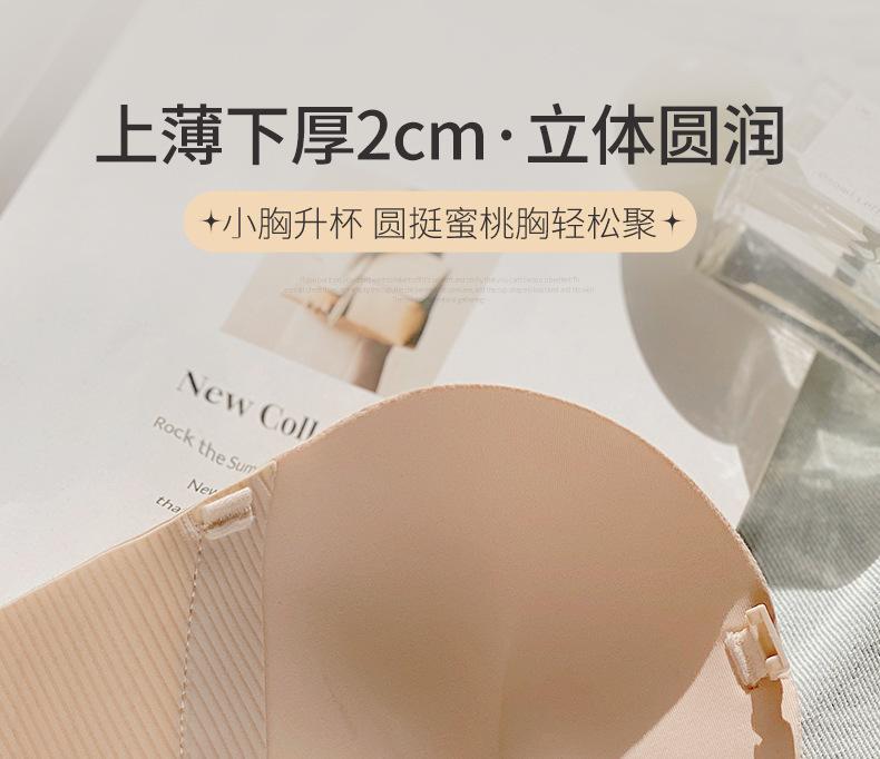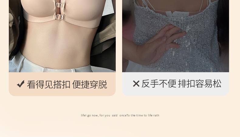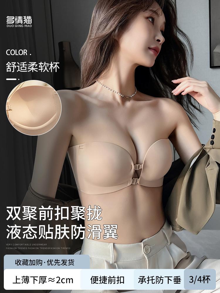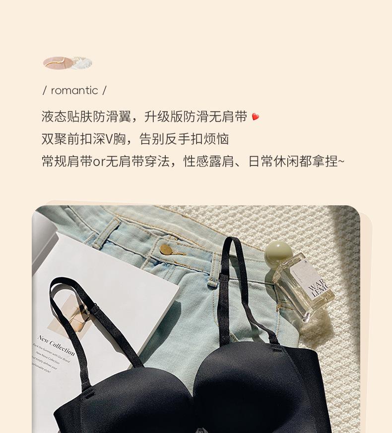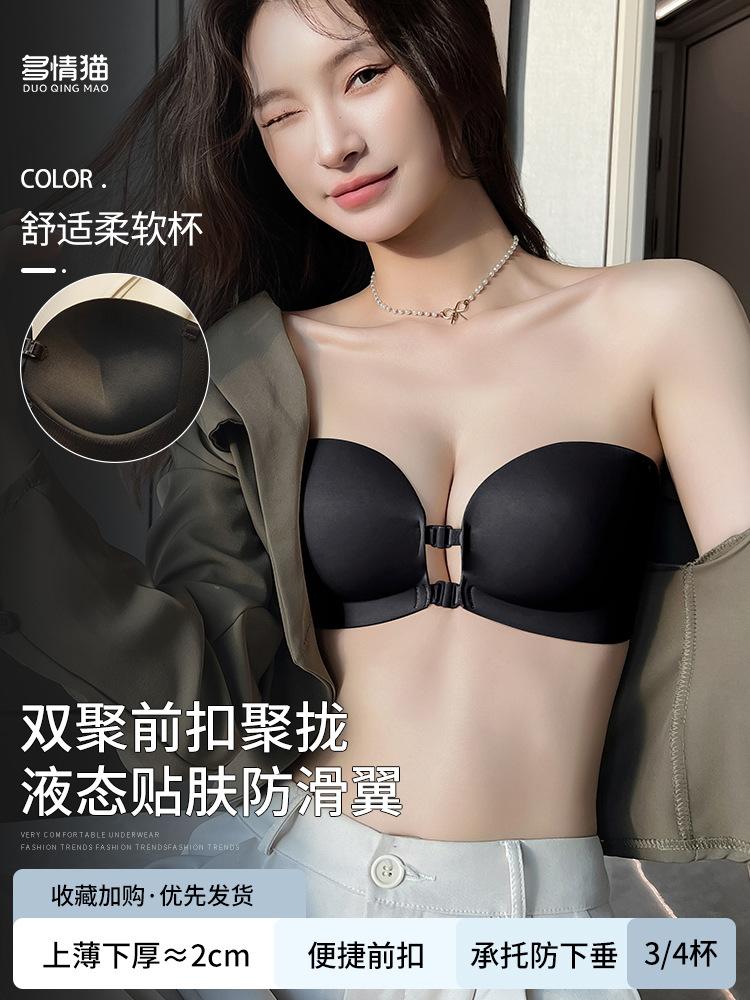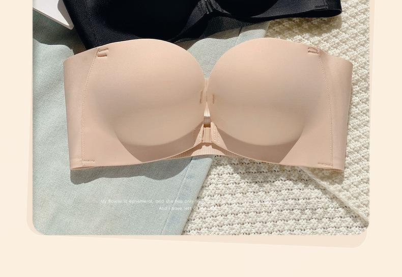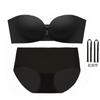 Ropa interior sin marcas con doble hebilla delantera para mujer, sexy, para busto pequeño, push-up, sin aros de acero, sujetador sin tirantes, conjunto