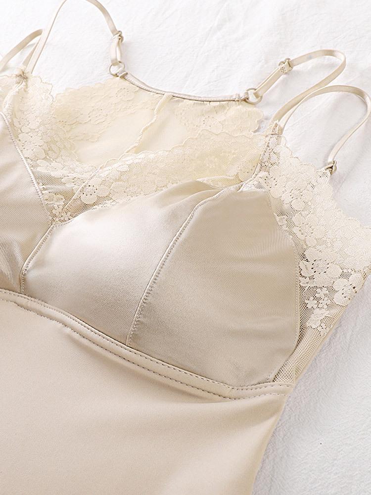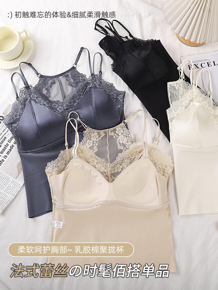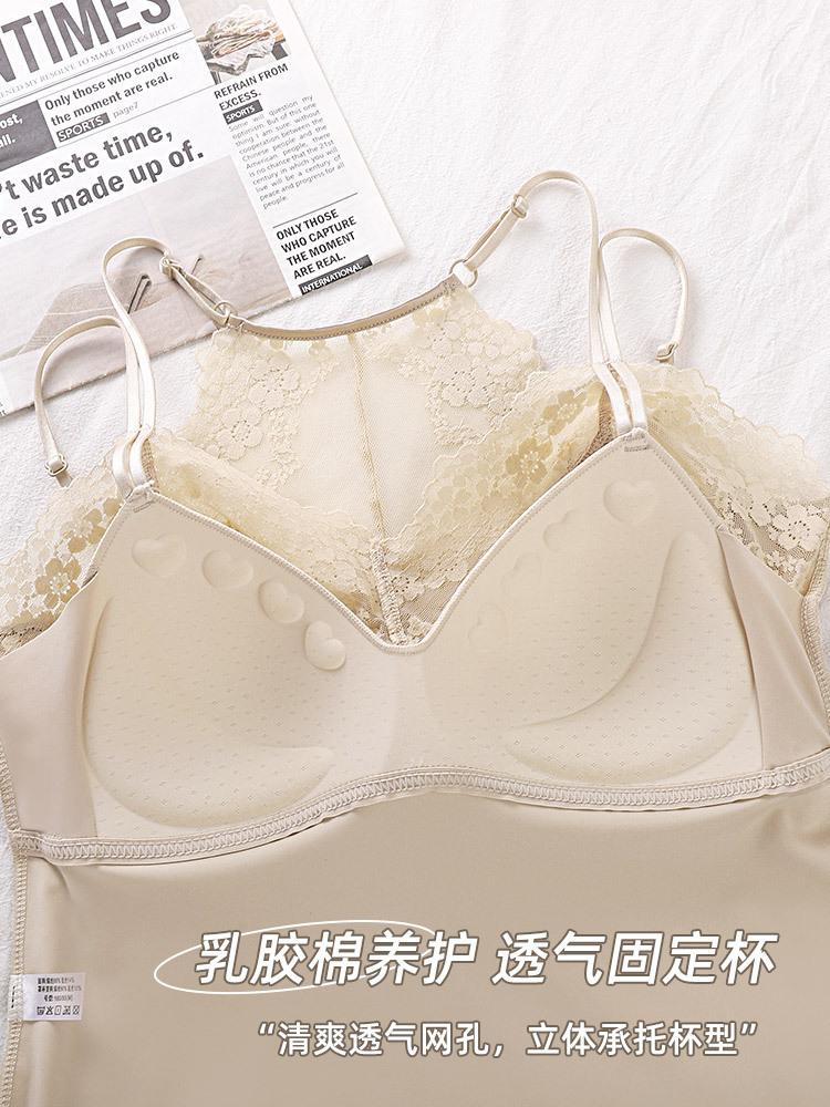 Ropa interior para mujer Encaje Ultradelgada Verano Nuevo Transpirable Sin marcas Espalda hermosa Ropa interior Ropa exterior Camisola Chaleco anti-luz para mujer