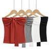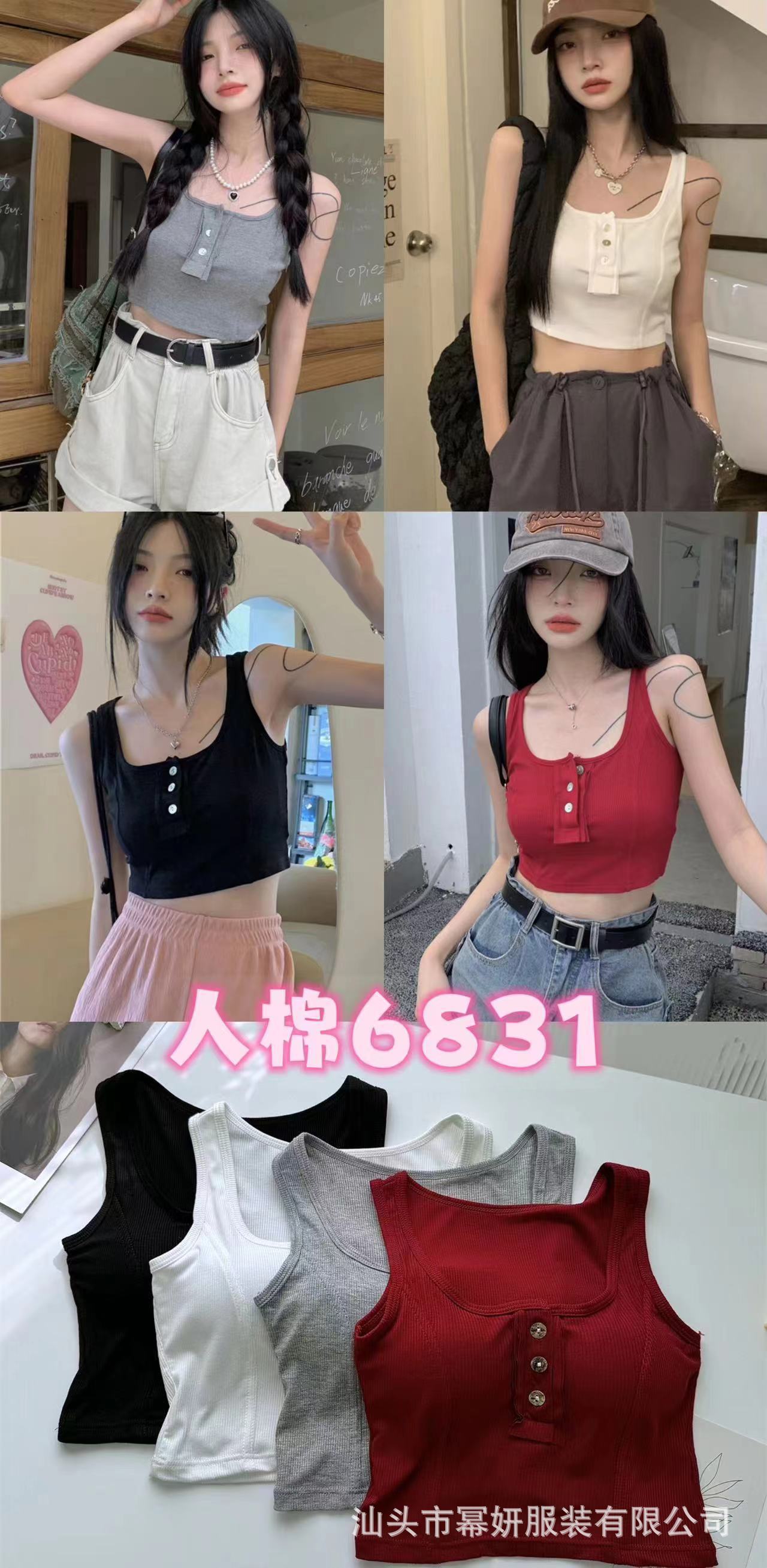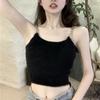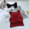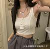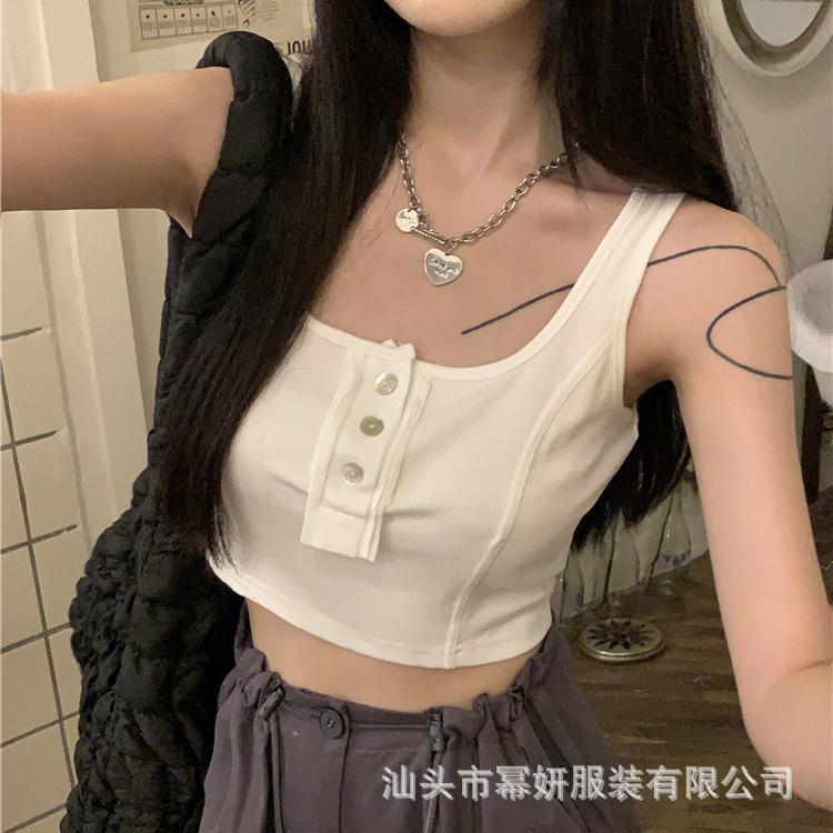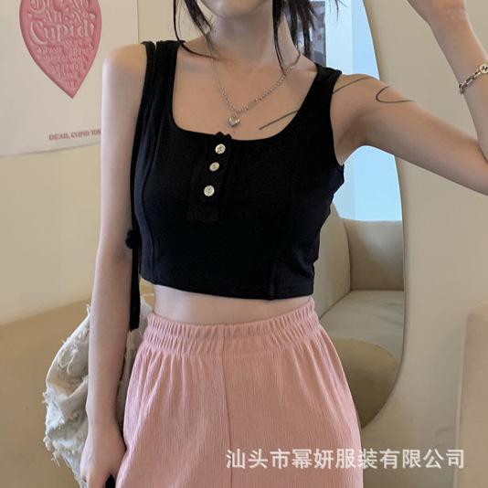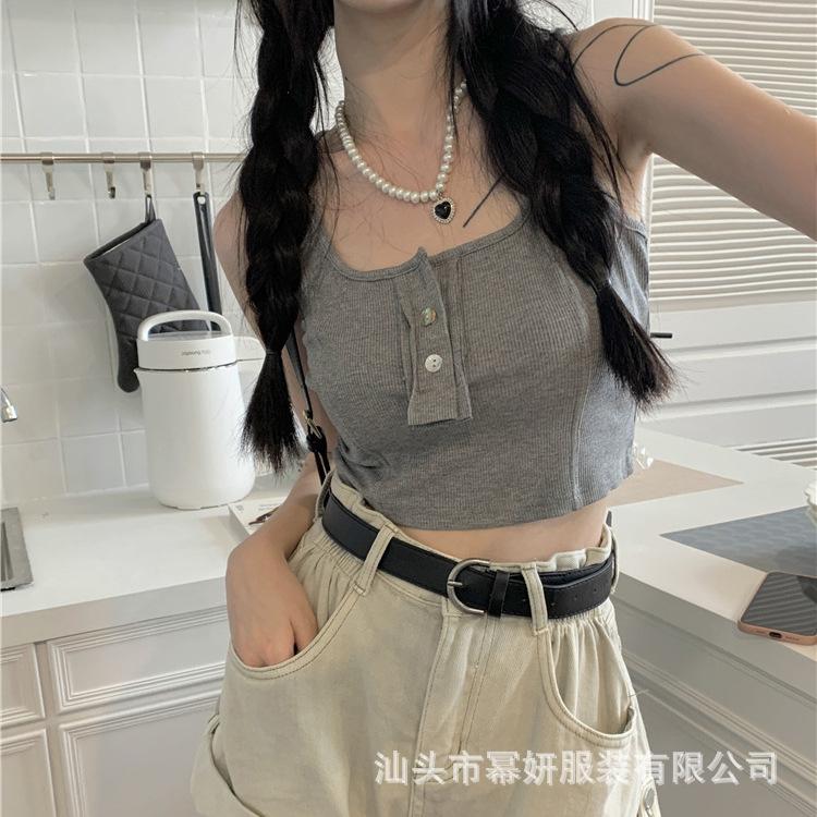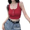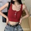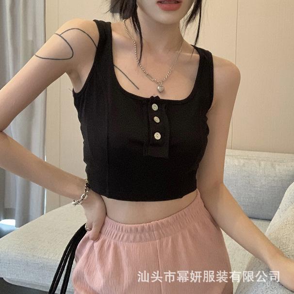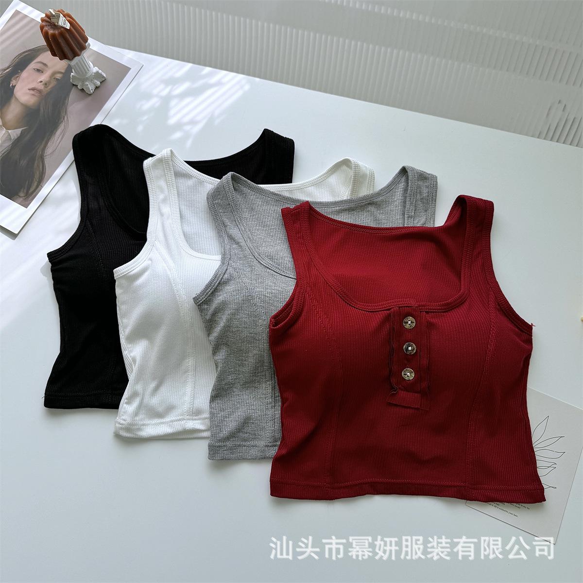 Algodón Puro Sexy Botón Camisola Chaleco de Hombro Ancho con Almohadilla en el Pecho Cuello U Grande Top Ombliguera Antiluz