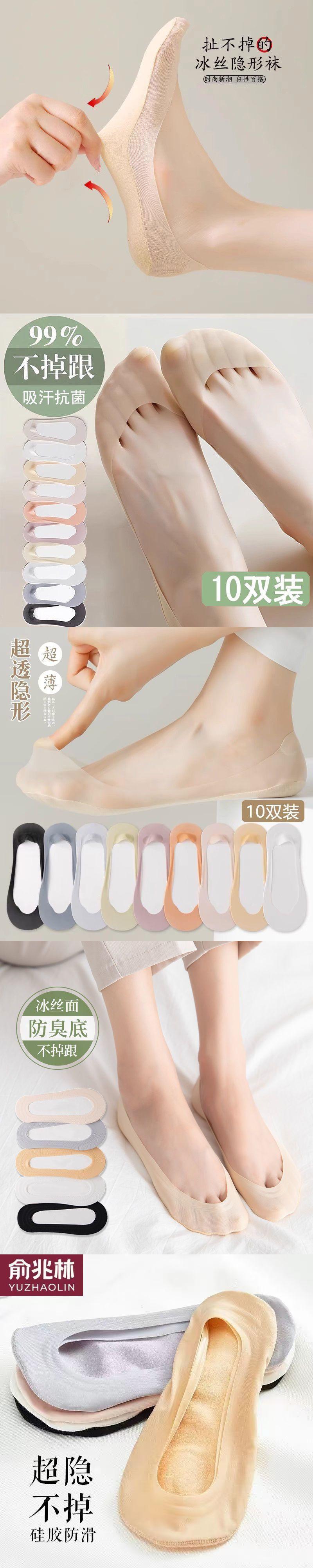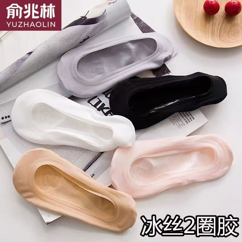 Calcetines de Barco de Seda de Hielo para Mujer, Verano Delgados de Corte Bajo Invisibles de Silicona Antideslizantes Calcetines Invisibles, Calcetines Cortos de Moda para Mujer