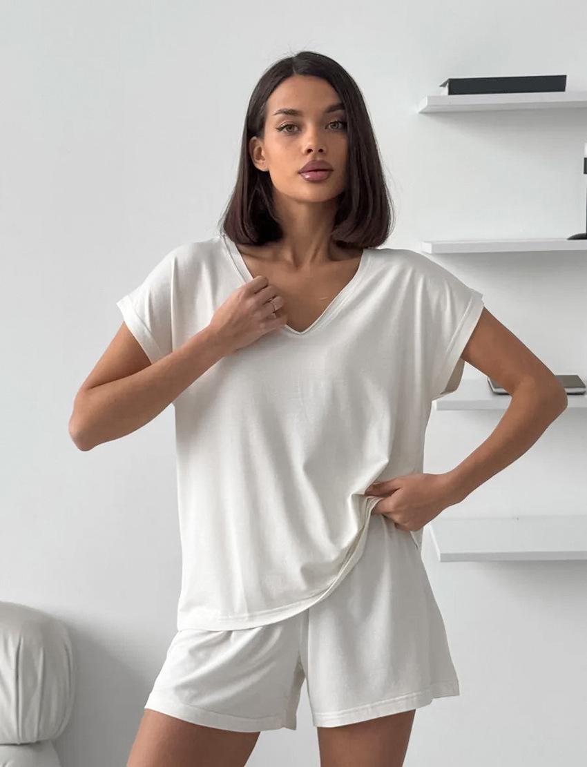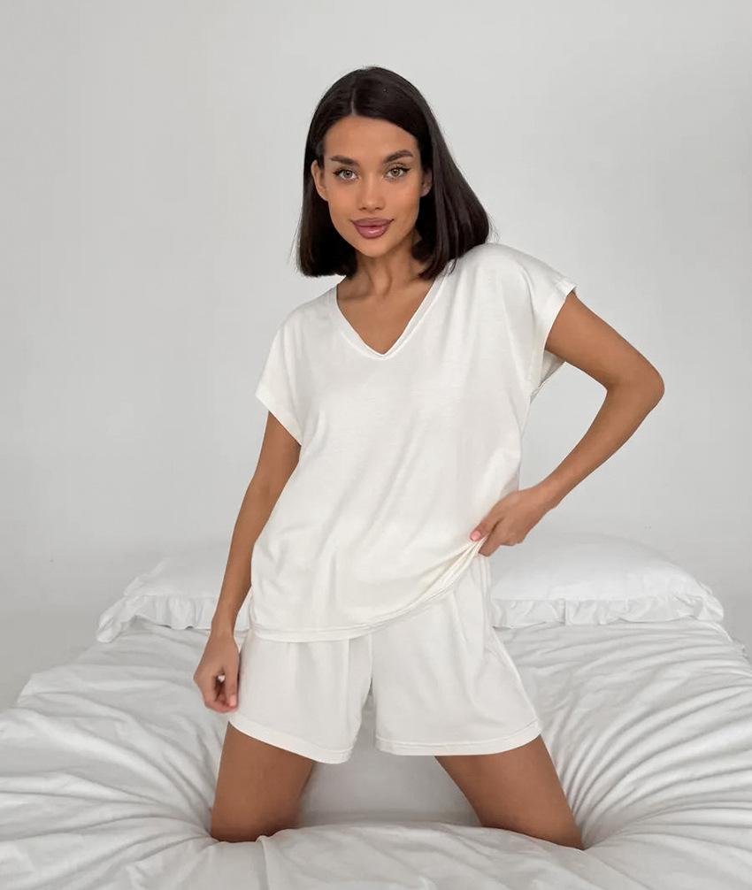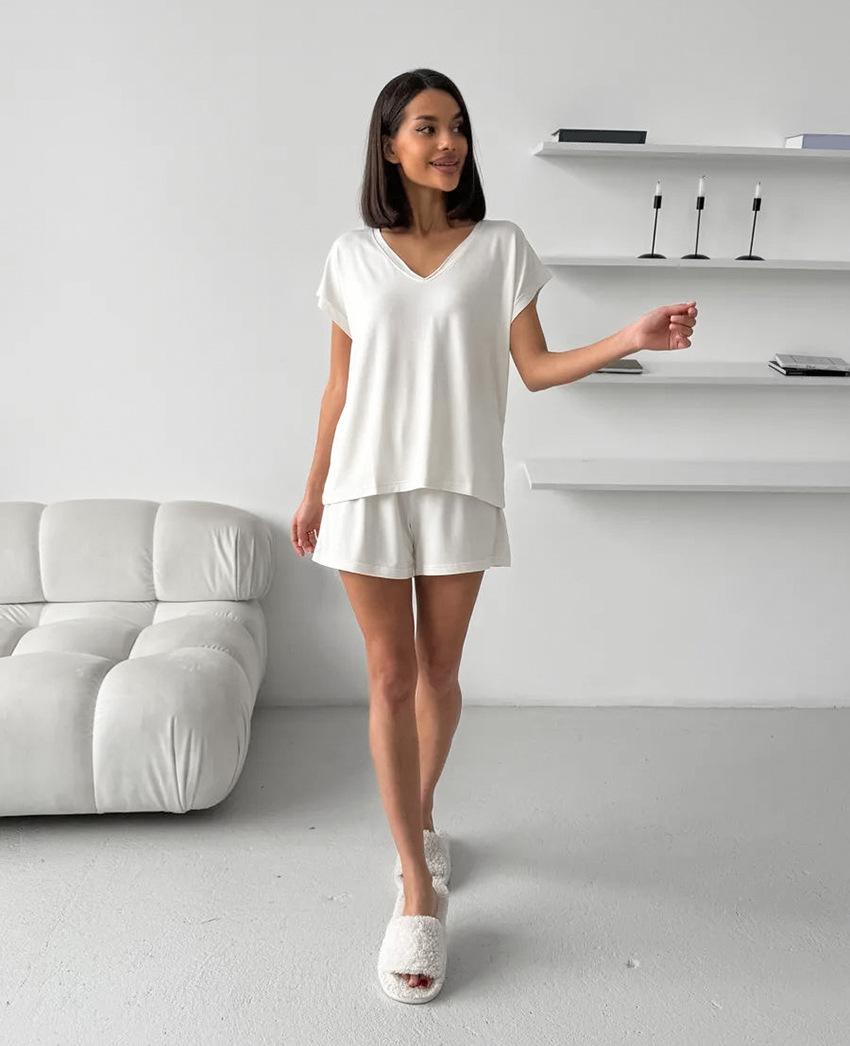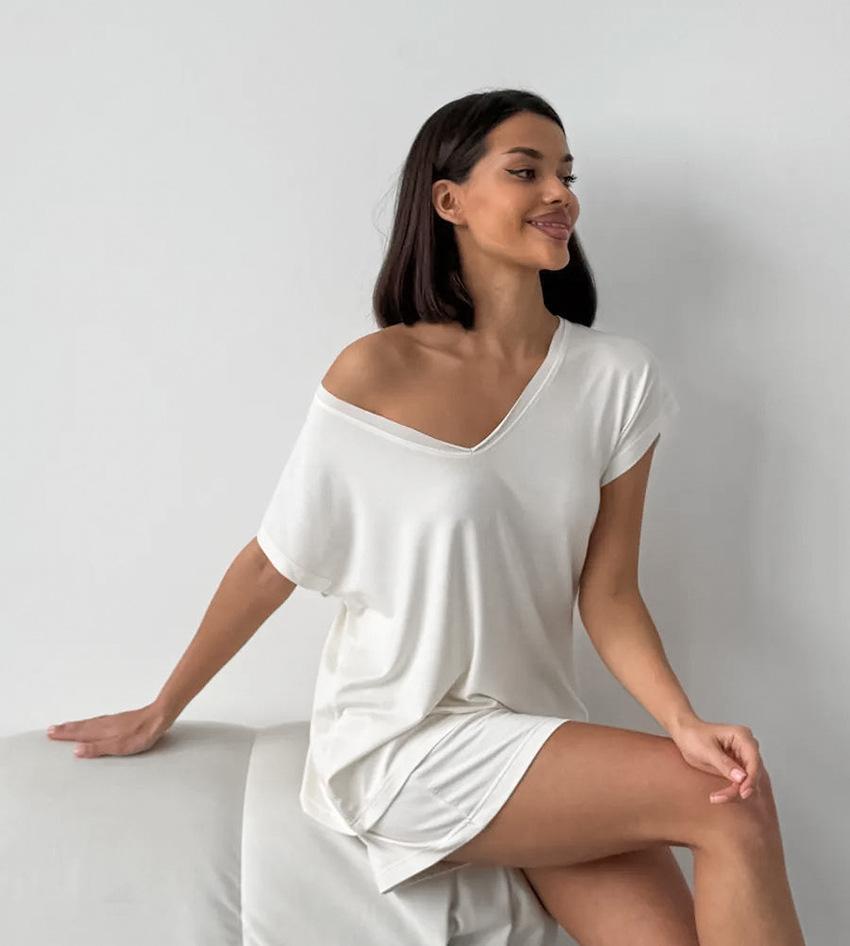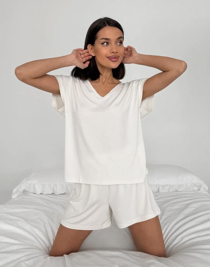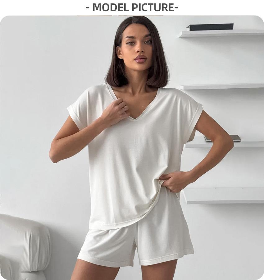 Pijamas de Mujer Europeos y Americanos Verano Nuevo Suelto y Cómodo Tejido Fino de Manga Corta Shorts Dos Piezas Ropa para el Hogar Productos Nuevos
