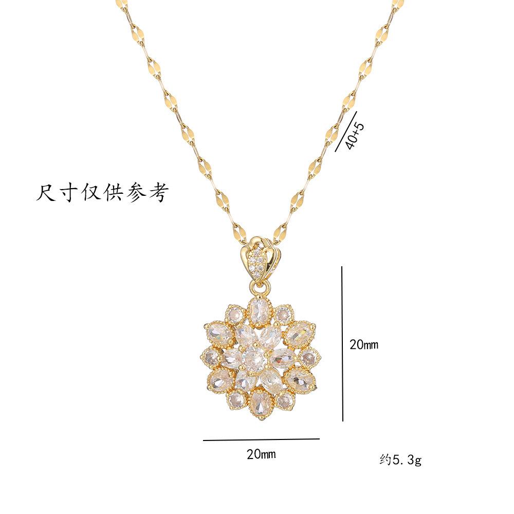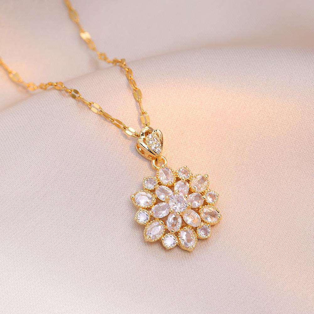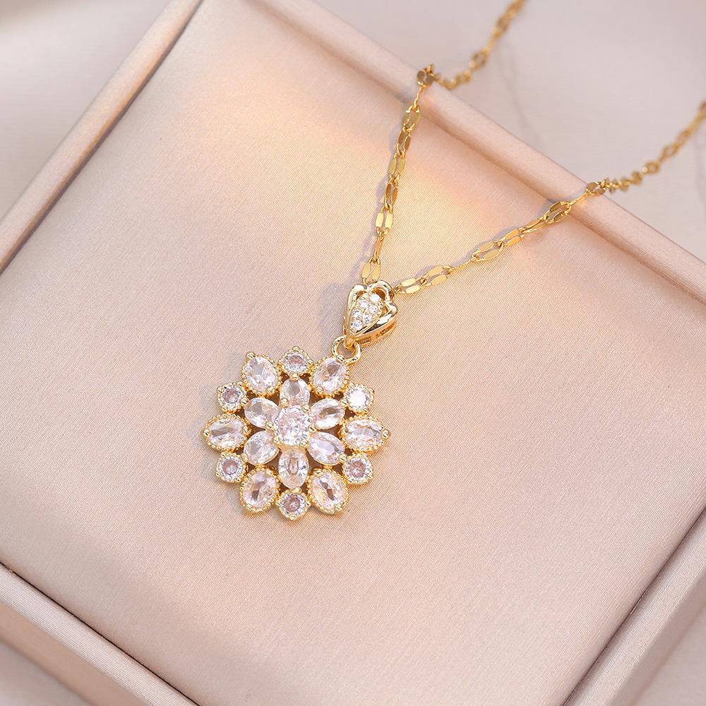 Collar Femenino Celebridad de Internet Transfronterizo Sol Zircón Flor Nicho Nuevo Diseño Colgante Temperamento Collar de Acero Titanio