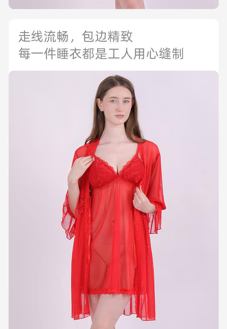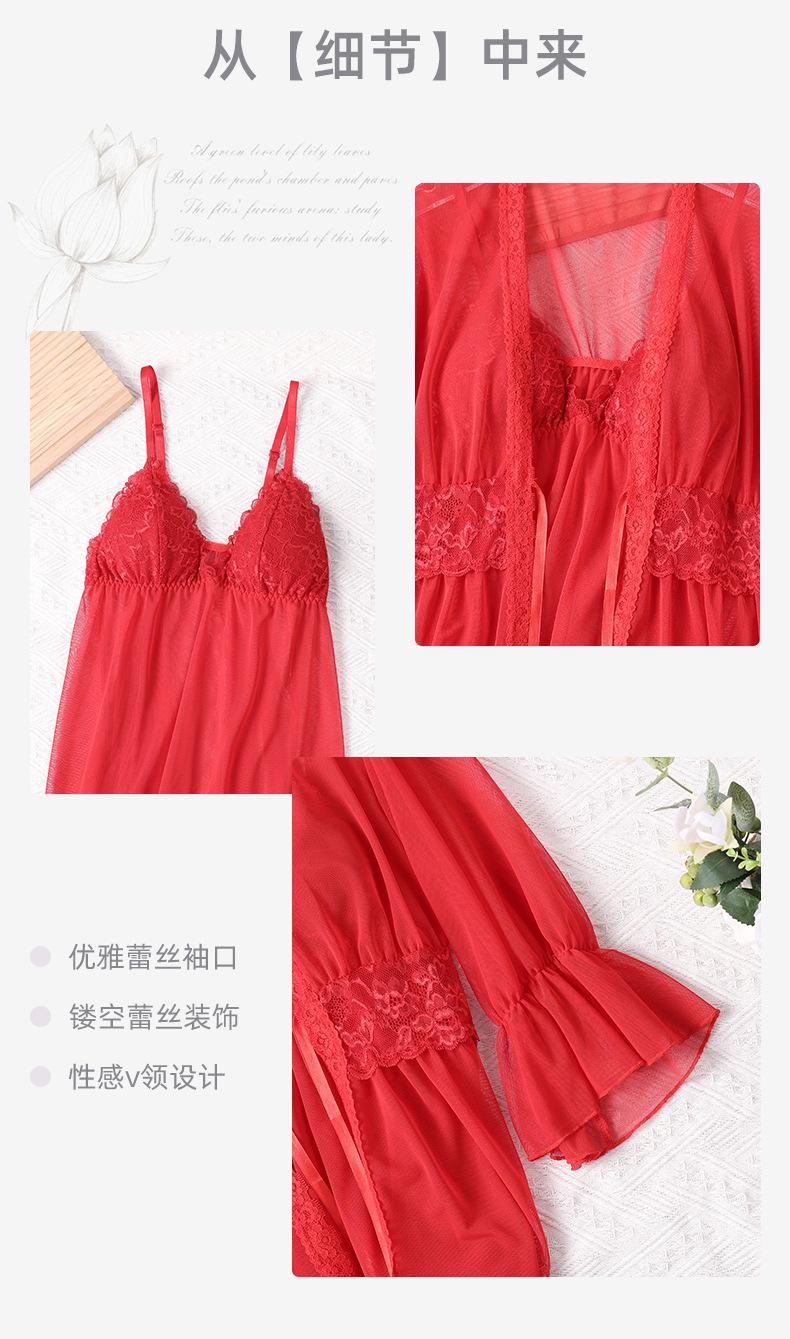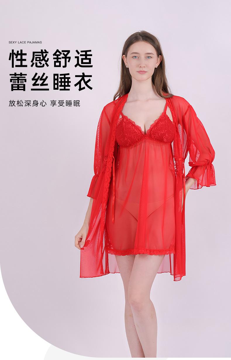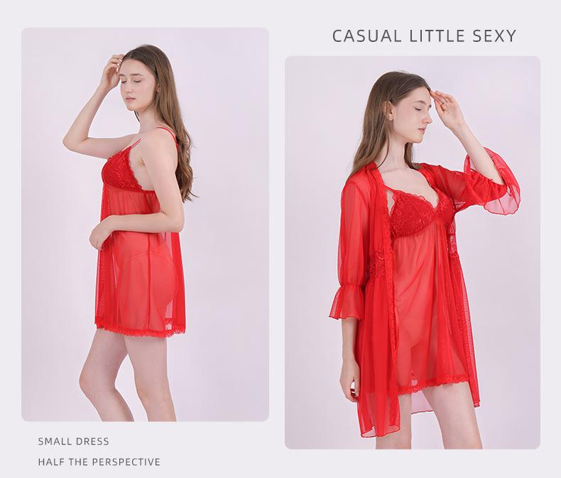 Camisón de Tirantes de Dos Piezas, Ropa de Casa para Mujer de Encaje, Camisón Vestido Delgado de Verano Transparente de Alta Gama